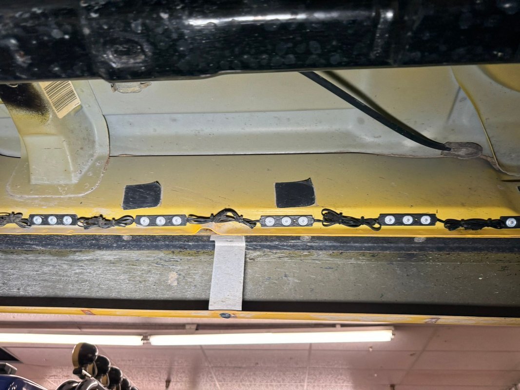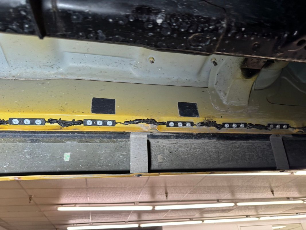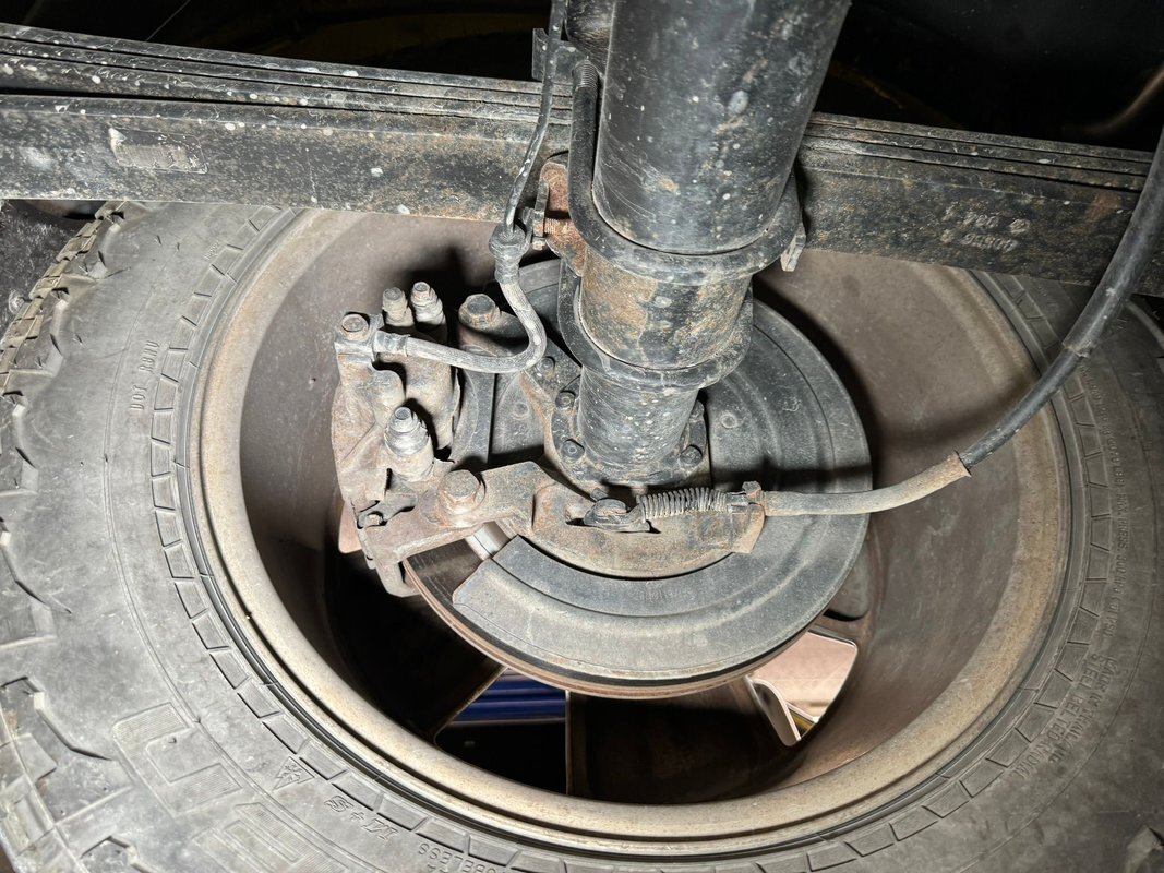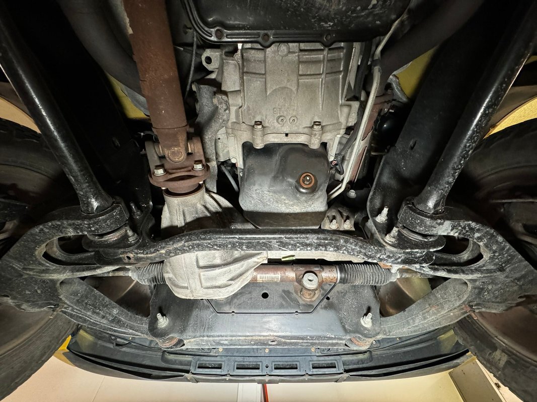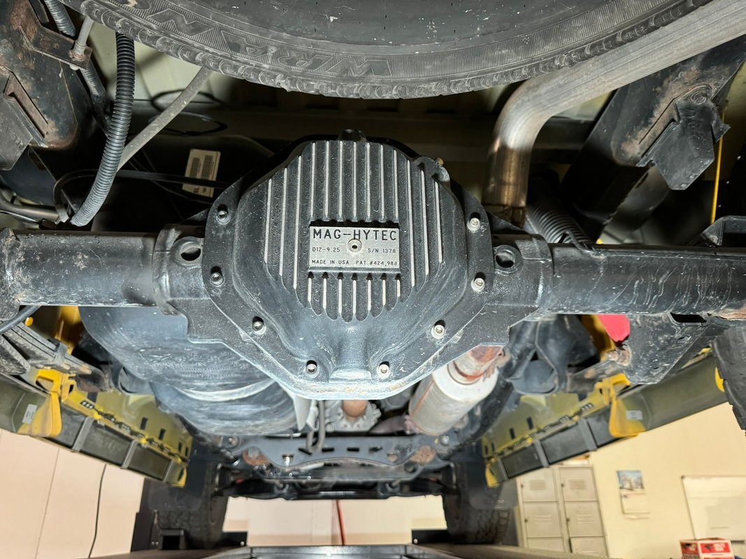 Black rust free structural steel abounds underneath with some light factory overspray of yellow on the inner fenders and floor pans. A little road dirt can be thrown in on that too! Front suspension has independent torsion bars and rear is leaf springs. Power disc brakes are on all 4 corners.