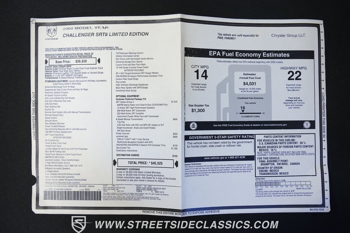 4524-TPA 2009 DODGE CHALLENGER SRT-8 LIMITED EDITION