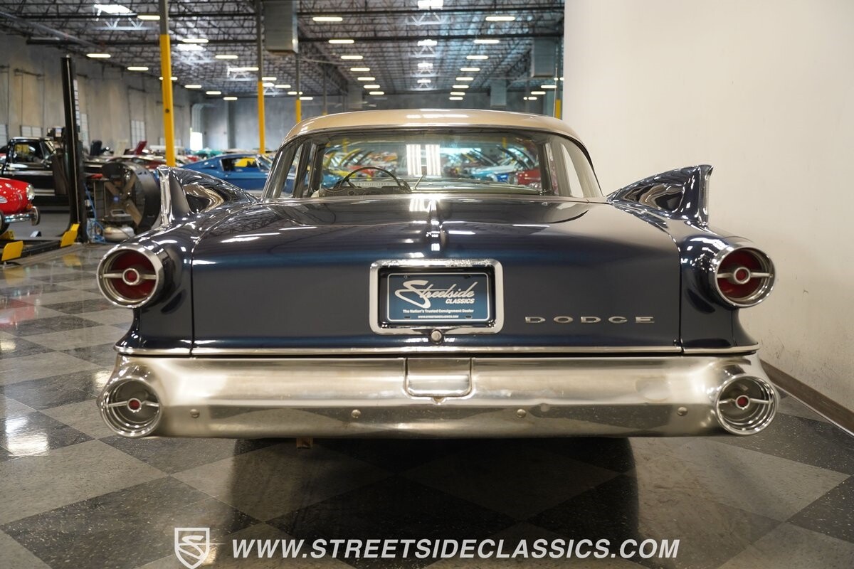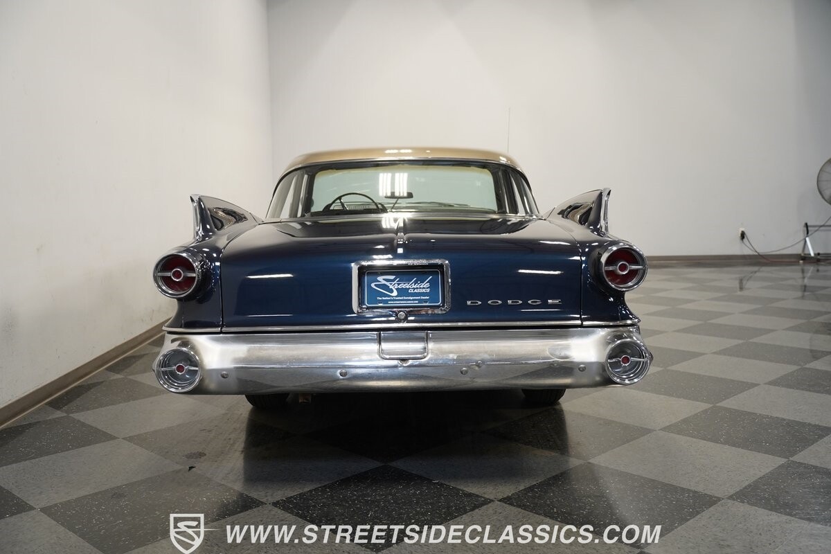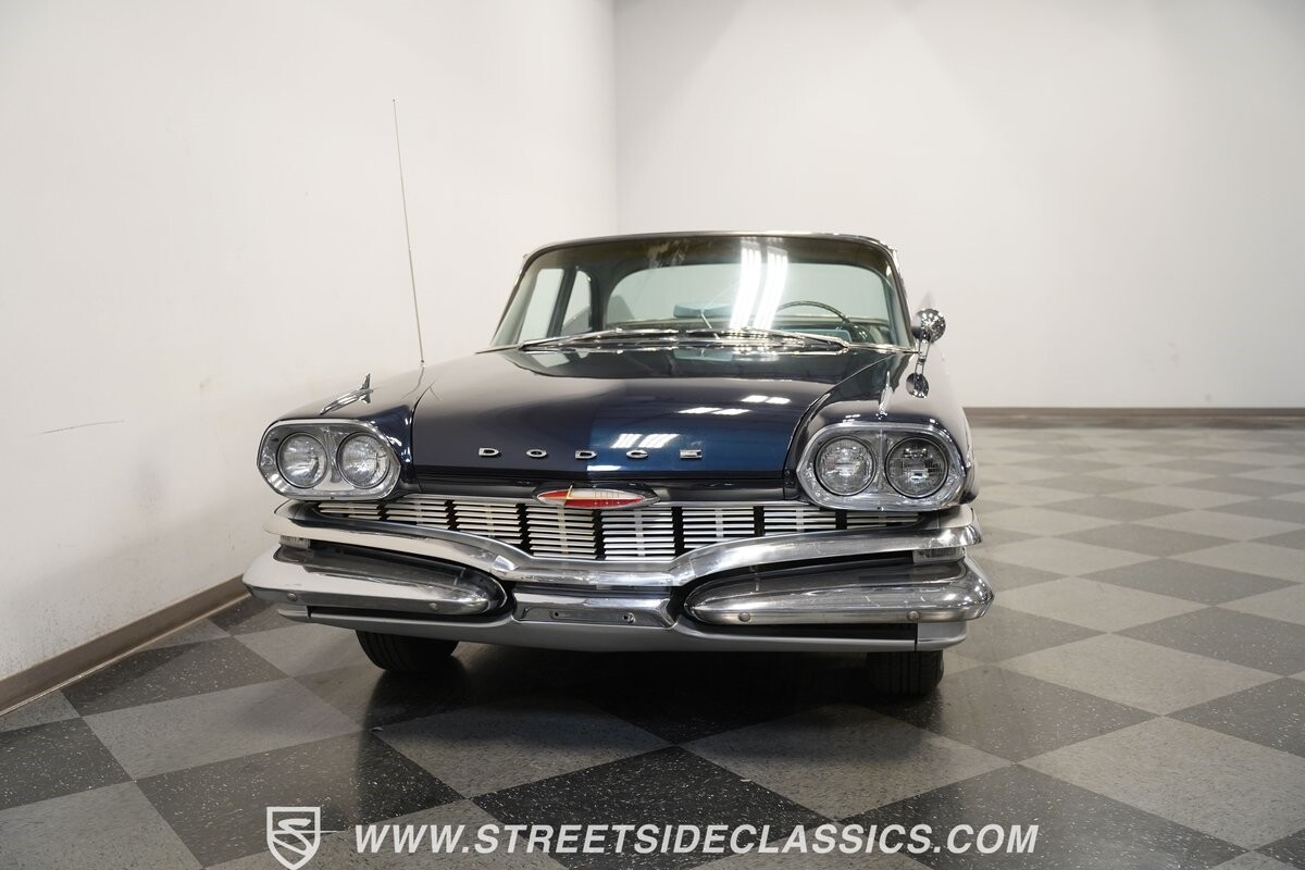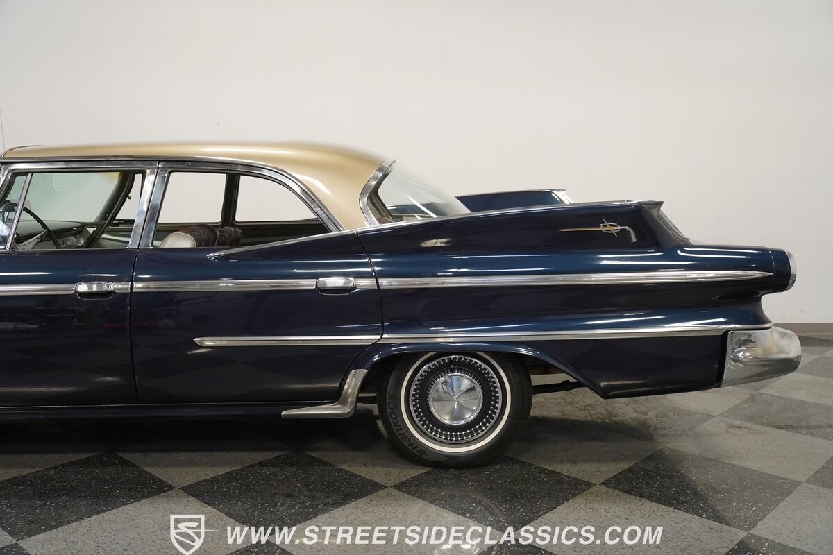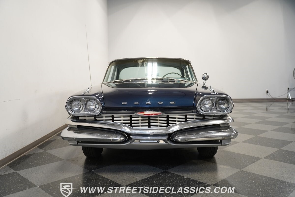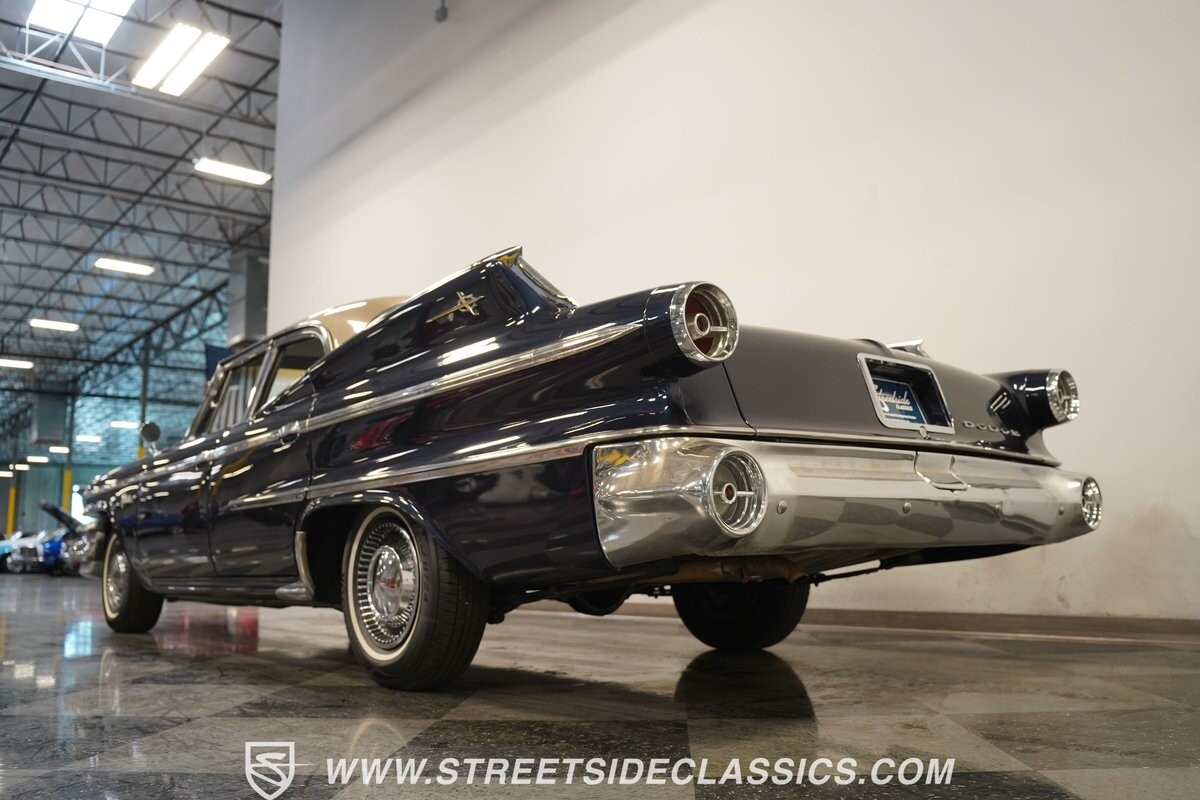 The 1960 Dodge Matador, a rare single-year model, is a classic boulevard cruiser that encapsulates the essence of vintage Americana. Draped in a captivating navy blue metallic paint, this particular Matador showcases a striking gold roof that adds a touch of elegance to its already impressive presence. Matador logos adorn the body, serving as a subtle reminder of this car's unique identity. Rolling on a set of 14" wheels wrapped in 215/75R14 tires, the Matador effortlessly glides down the road, its chrome bumpers and trim gleaming in the sun.