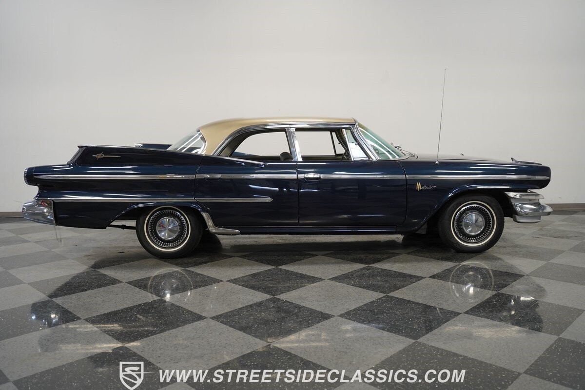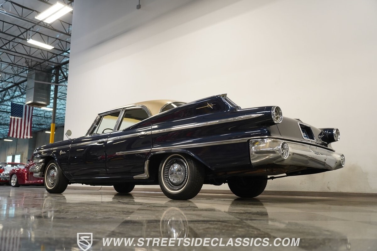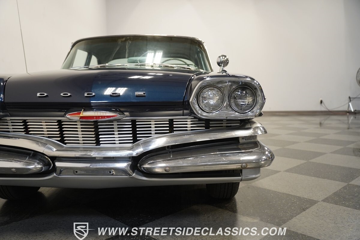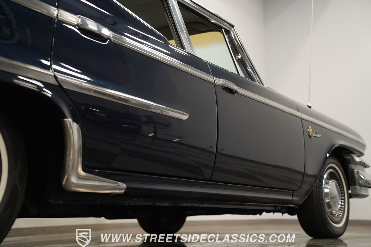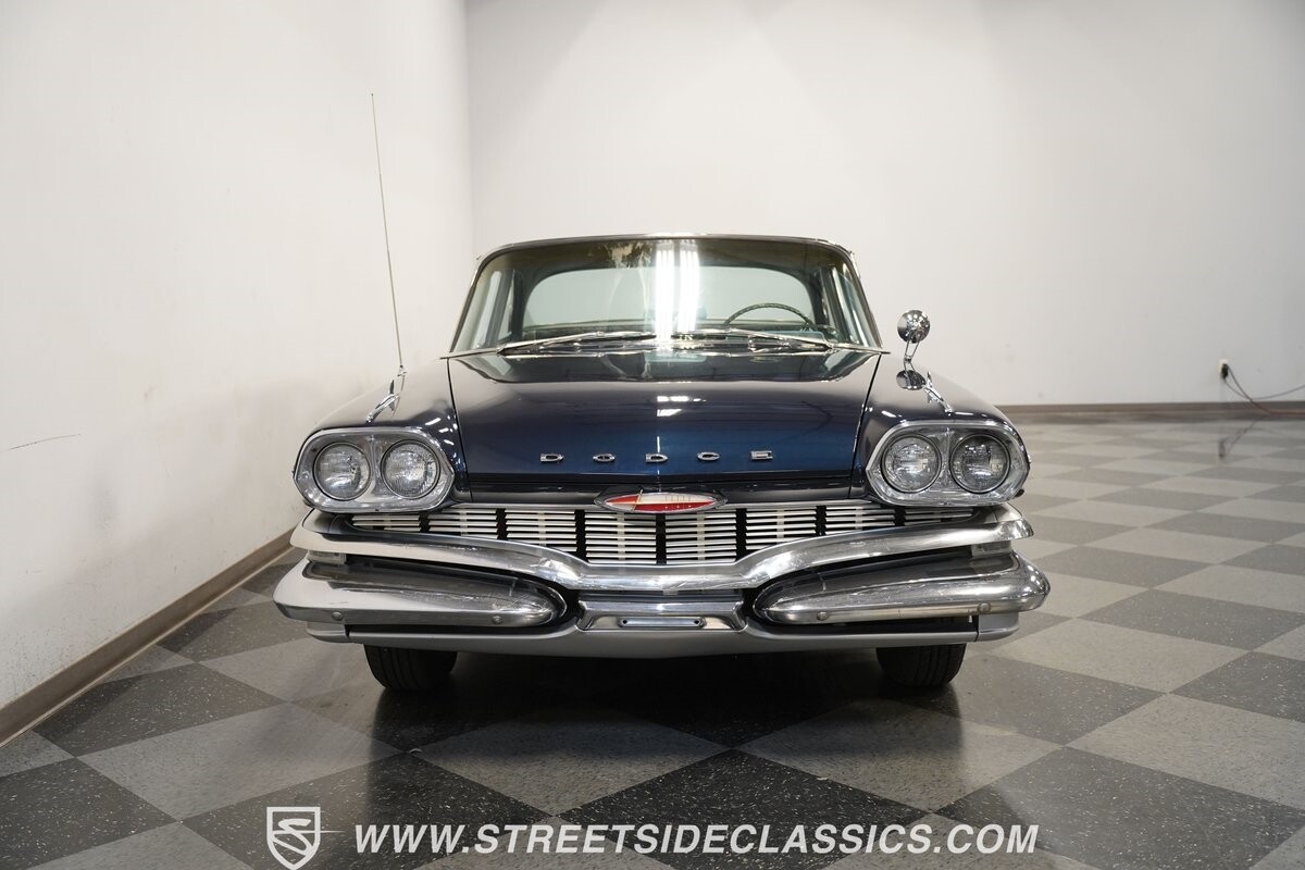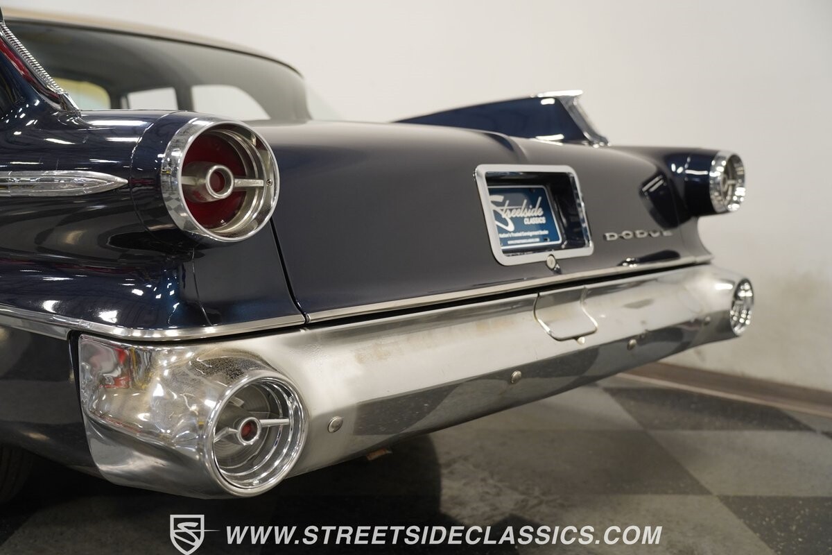 The 1960 Dodge Matador, a rare single-year model, is a classic boulevard cruiser that encapsulates the essence of vintage Americana. Draped in a captivating navy blue metallic paint, this particular Matador showcases a striking gold roof that adds a touch of elegance to its already impressive presence. Matador logos adorn the body, serving as a subtle reminder of this car's unique identity. Rolling on a set of 14" wheels wrapped in 215/75R14 tires, the Matador effortlessly glides down the road, its chrome bumpers and trim gleaming in the sun.