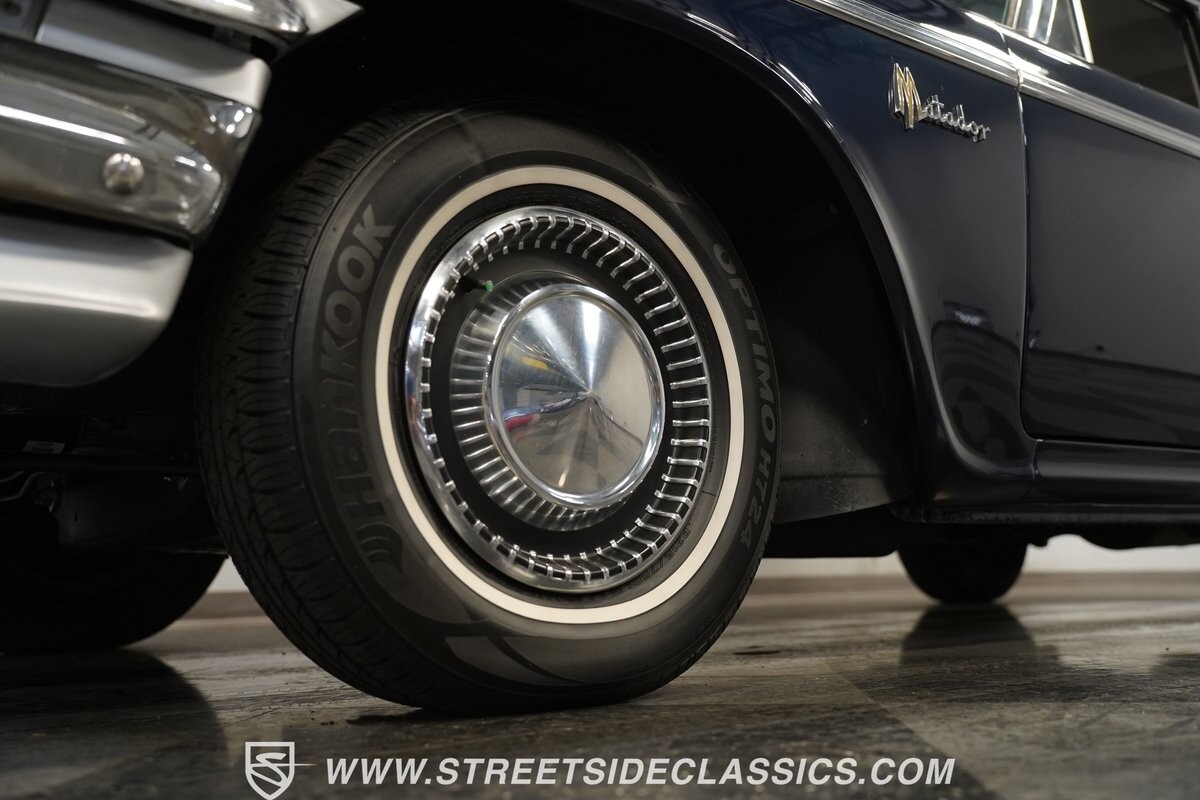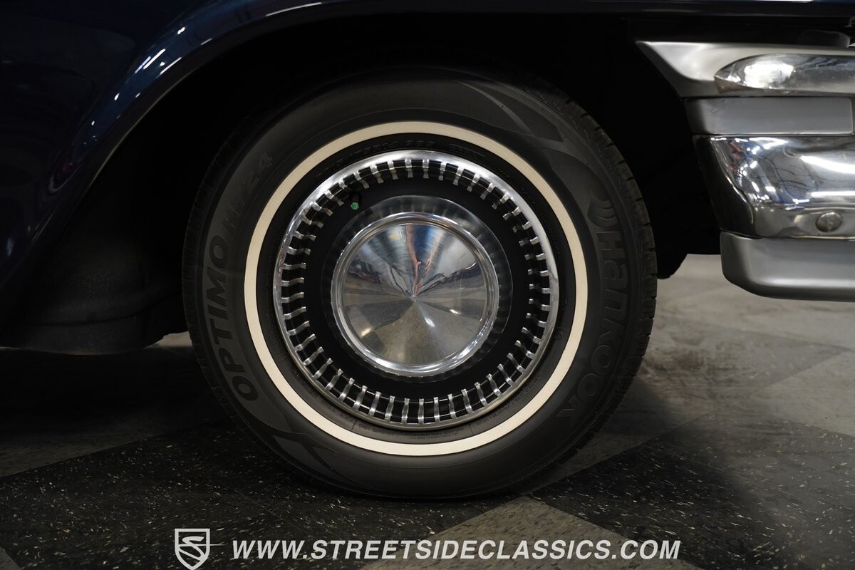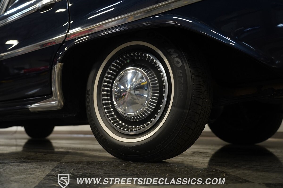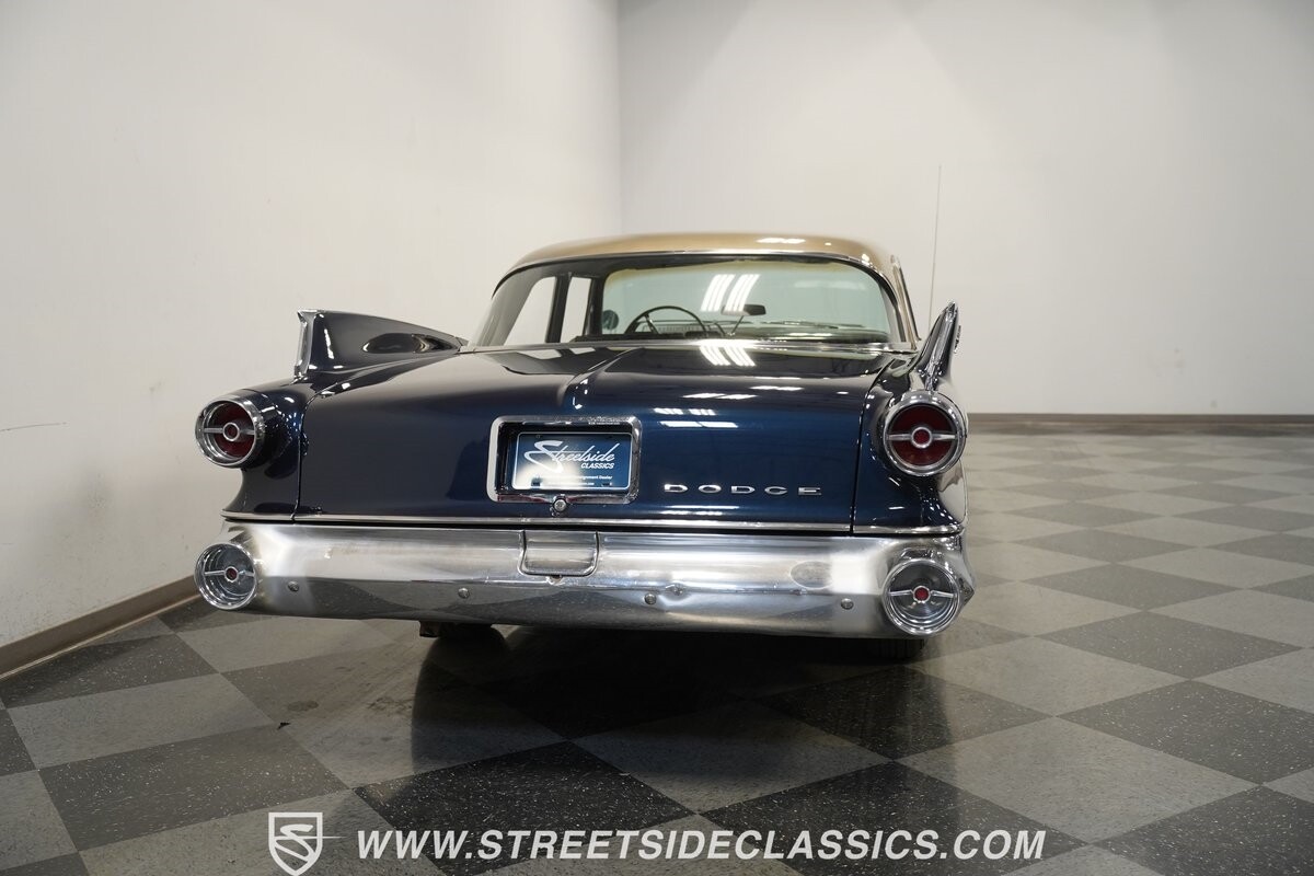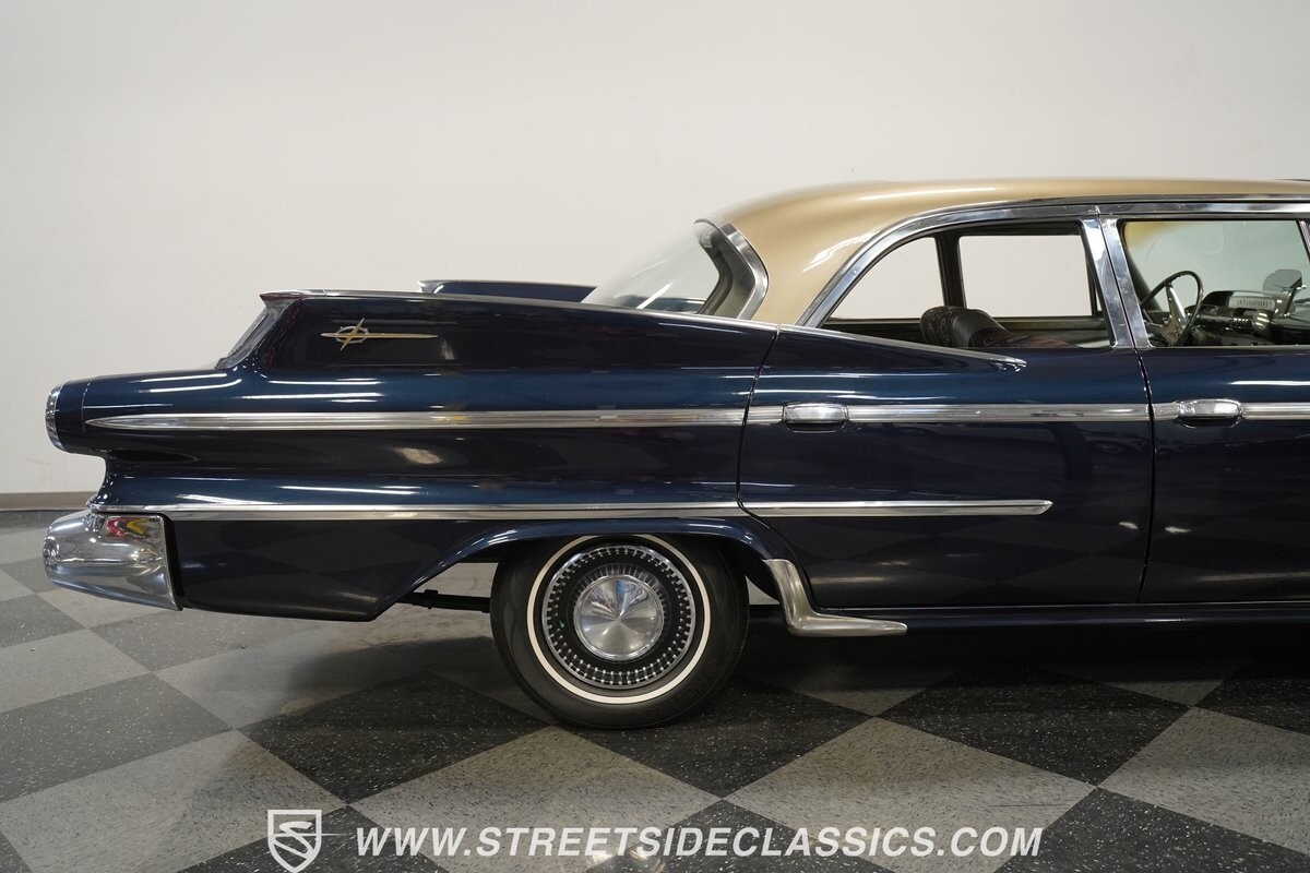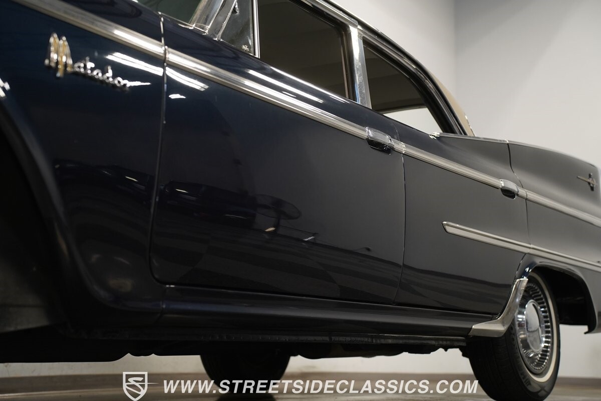 The 1960 Dodge Matador, a rare single-year model, is a classic boulevard cruiser that encapsulates the essence of vintage Americana. Draped in a captivating navy blue metallic paint, this particular Matador showcases a striking gold roof that adds a touch of elegance to its already impressive presence. Matador logos adorn the body, serving as a subtle reminder of this car's unique identity. Rolling on a set of 14" wheels wrapped in 215/75R14 tires, the Matador effortlessly glides down the road, its chrome bumpers and trim gleaming in the sun.
