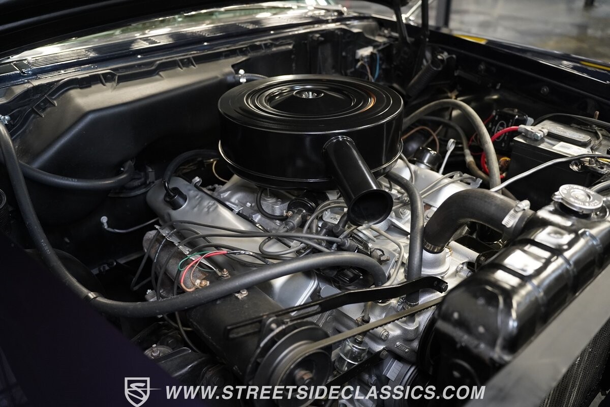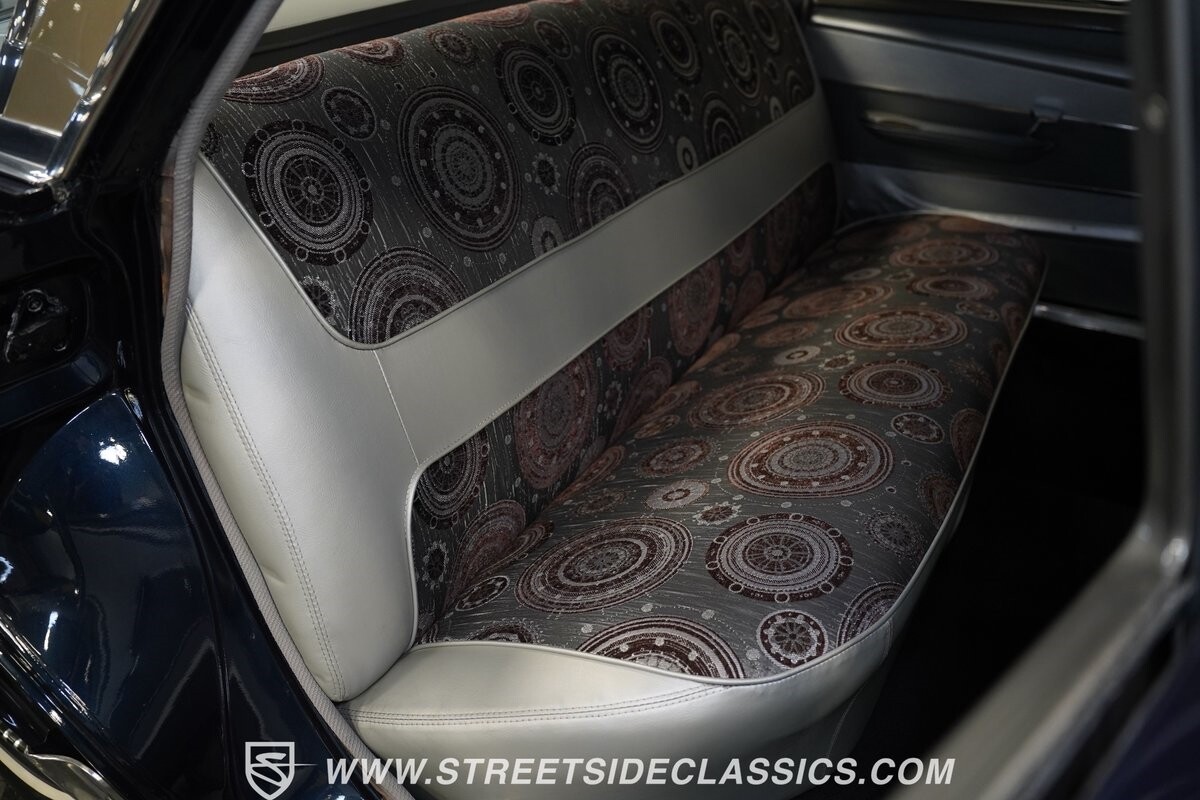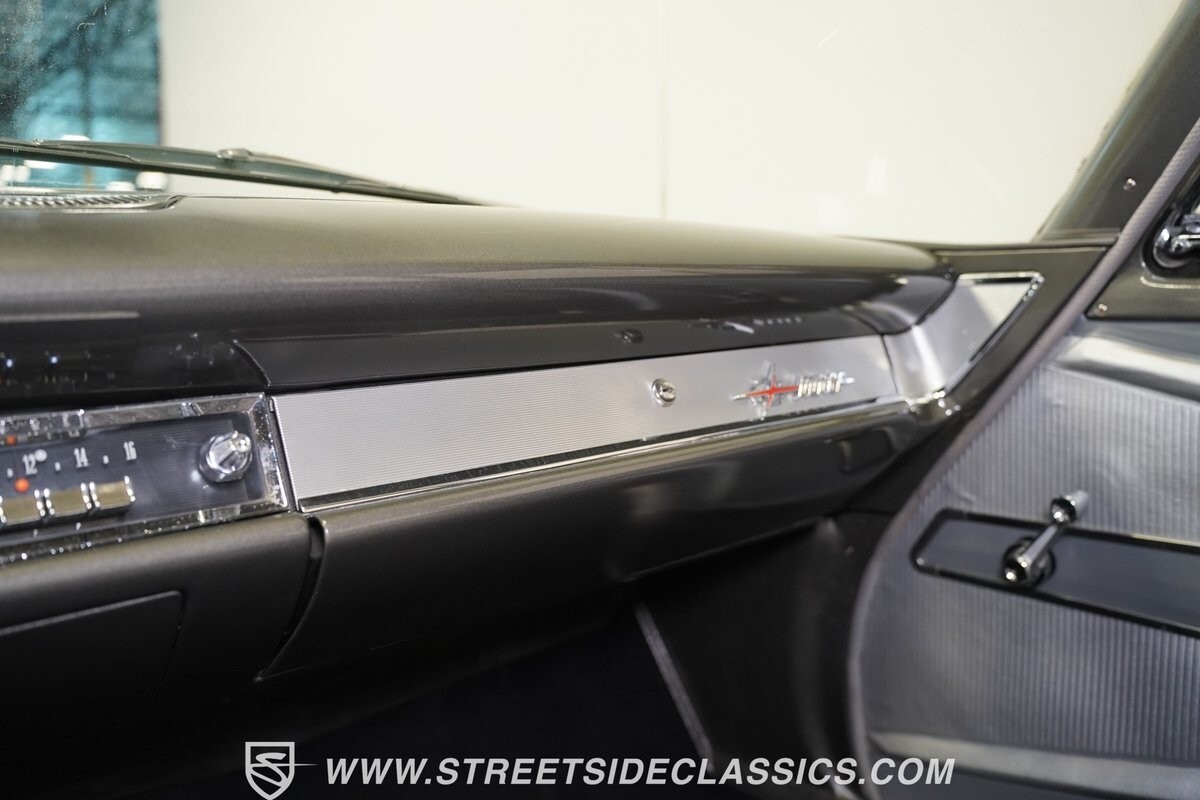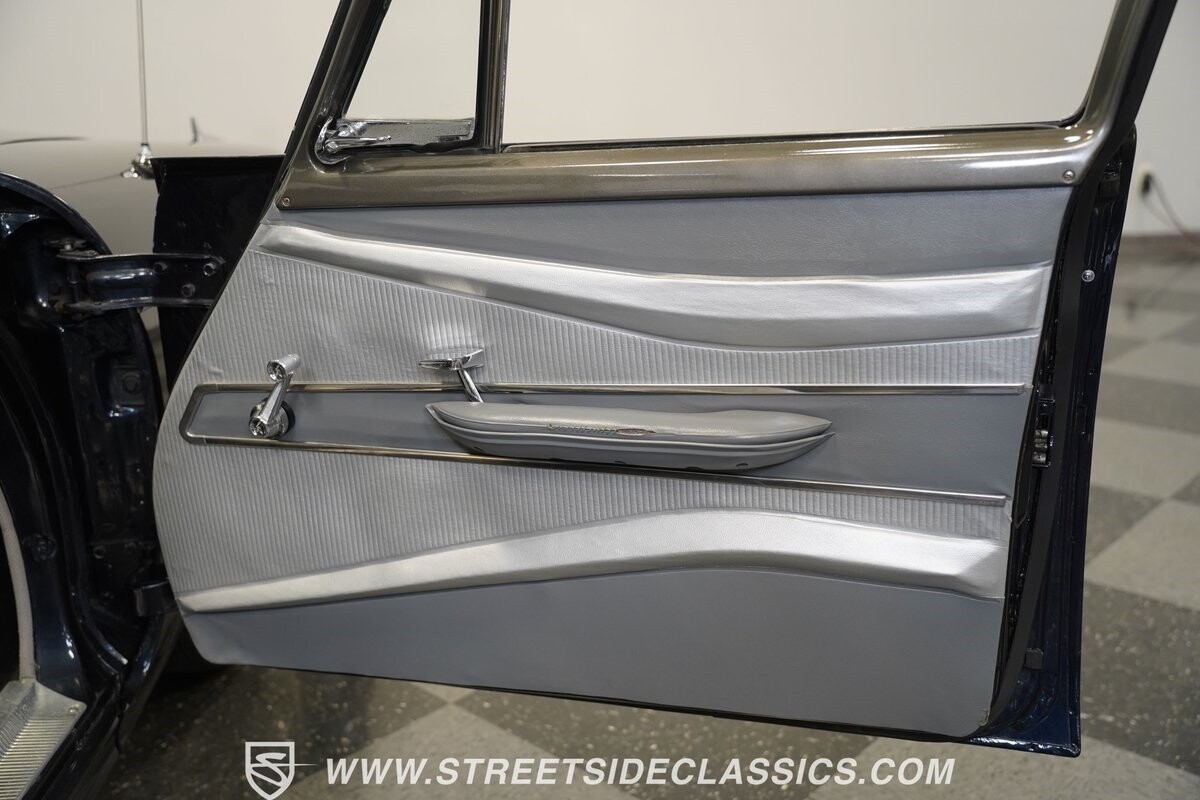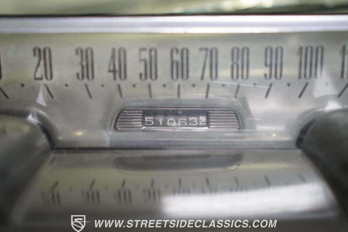 Slide into the silver vinyl and cloth bench seats, and you'll find yourself transported to a world of vintage cool. The two-tone interior, with its higher back for the driver, is a delightful mix of comfort and style. The carpet, door cards, and headliner are all in very good condition speaks to the car's well-loved history. The painted metal sections and original gauges add to the authentic feel, while the push-button transmission and climate controls are just plain fun to use. And let's not forget the original steering wheel, it's like shaking hands with a piece of automotive history.