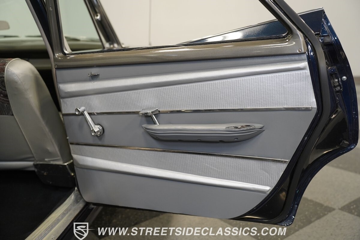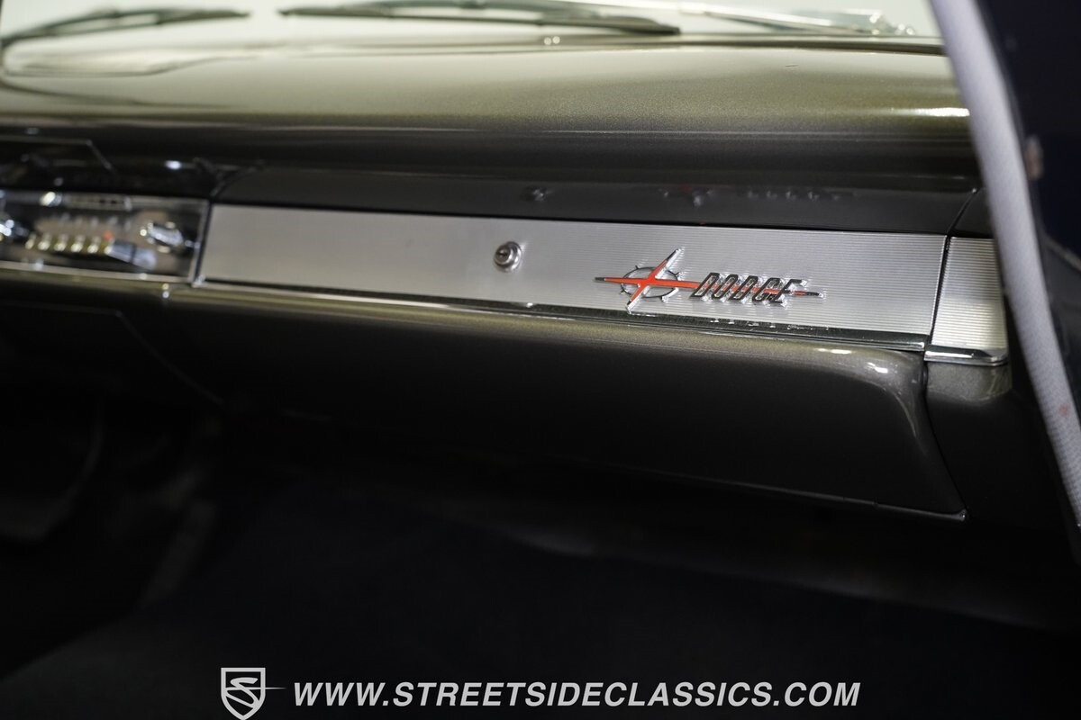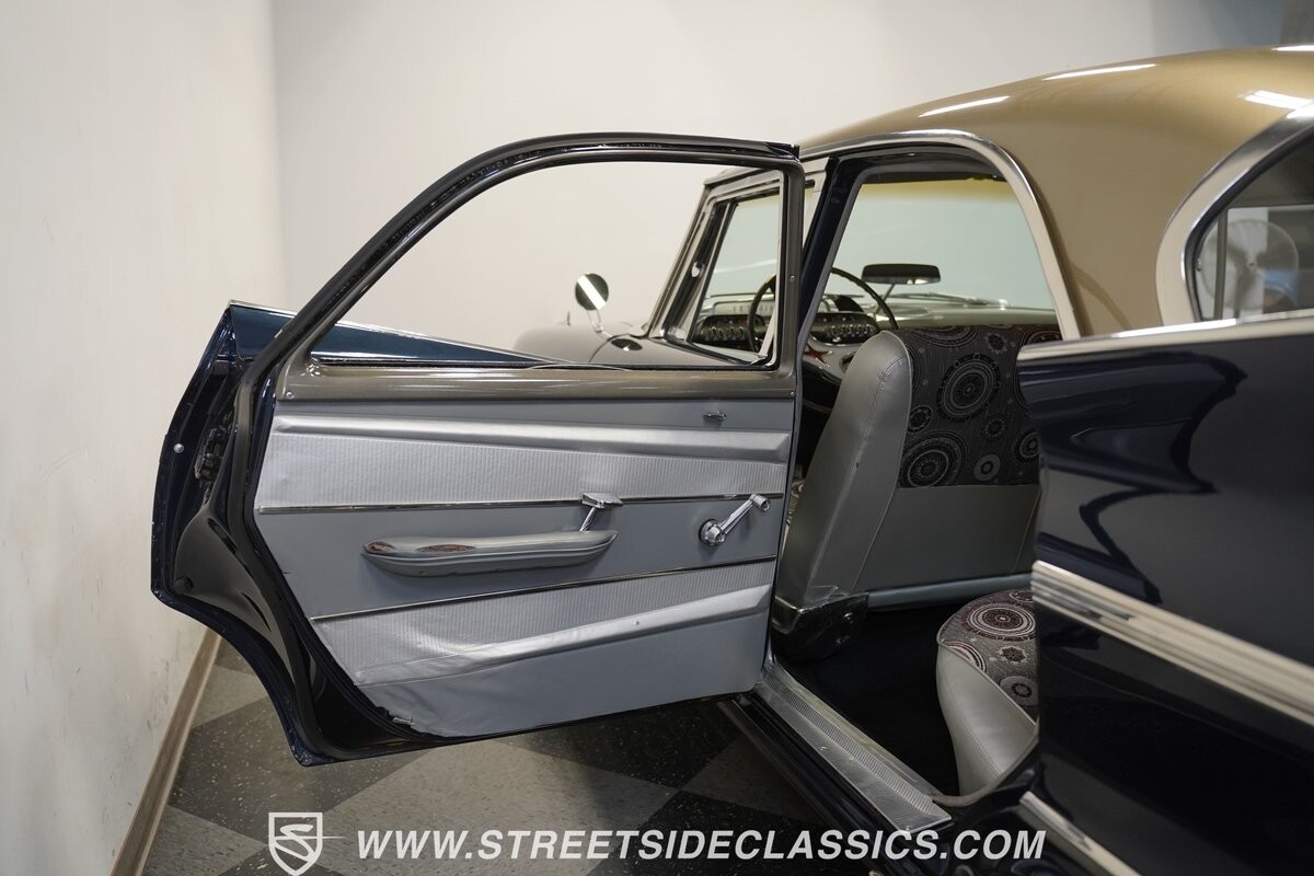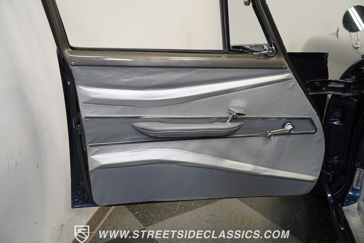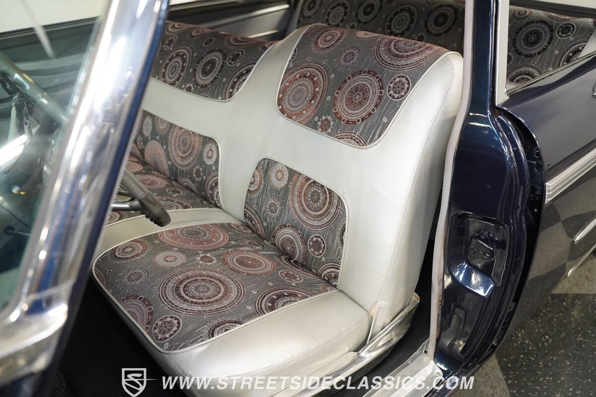 Slide into the silver vinyl and cloth bench seats, and you'll find yourself transported to a world of vintage cool. The two-tone interior, with its higher back for the driver, is a delightful mix of comfort and style. The carpet, door cards, and headliner are all in very good condition speaks to the car's well-loved history. The painted metal sections and original gauges add to the authentic feel, while the push-button transmission and climate controls are just plain fun to use. And let's not forget the original steering wheel, it's like shaking hands with a piece of automotive history.