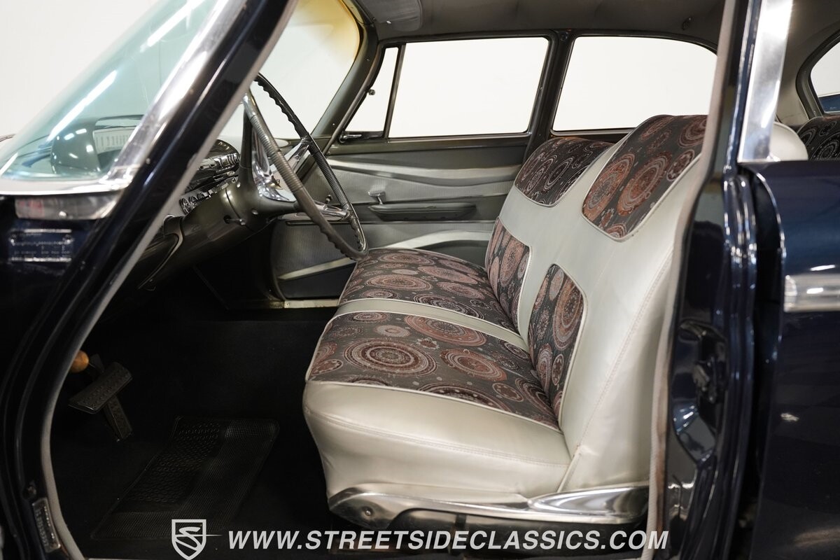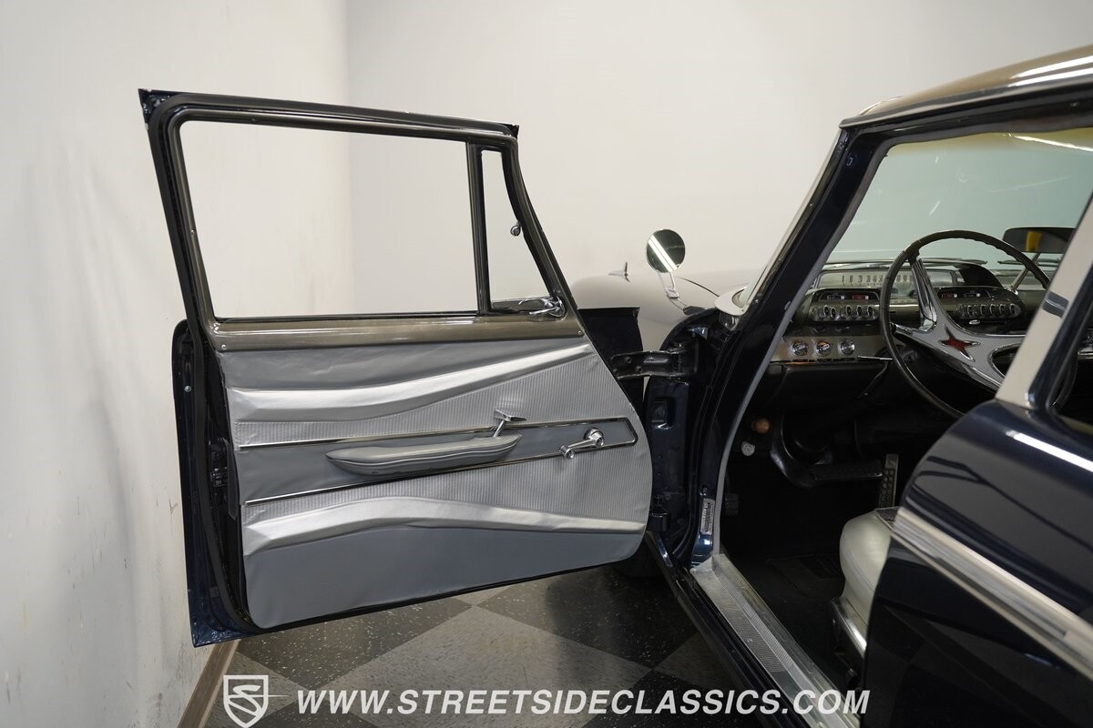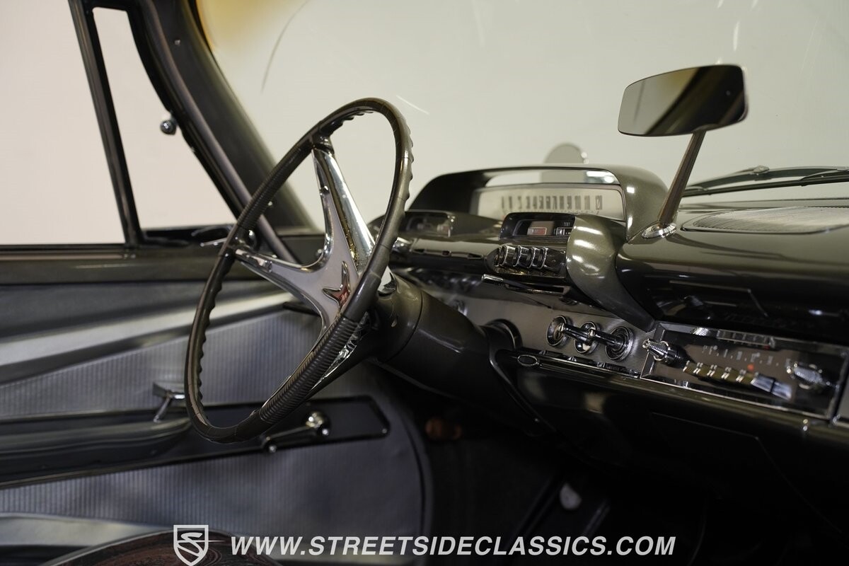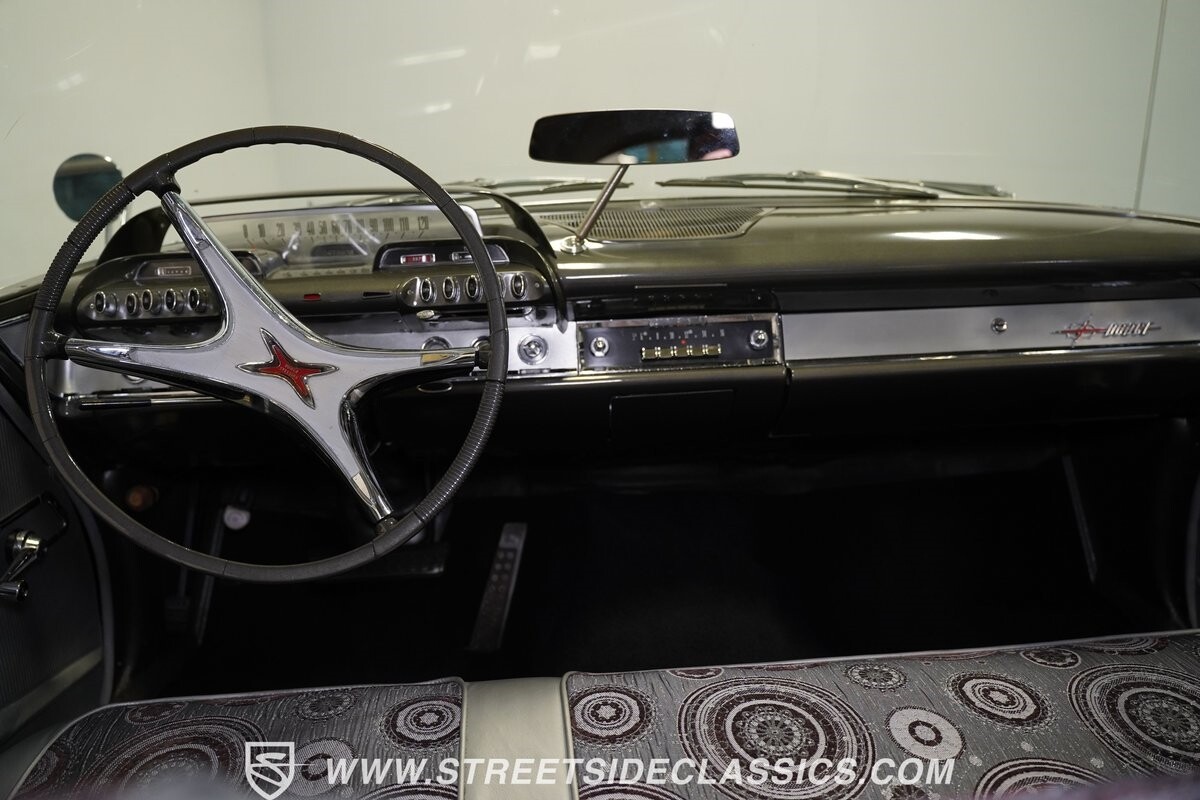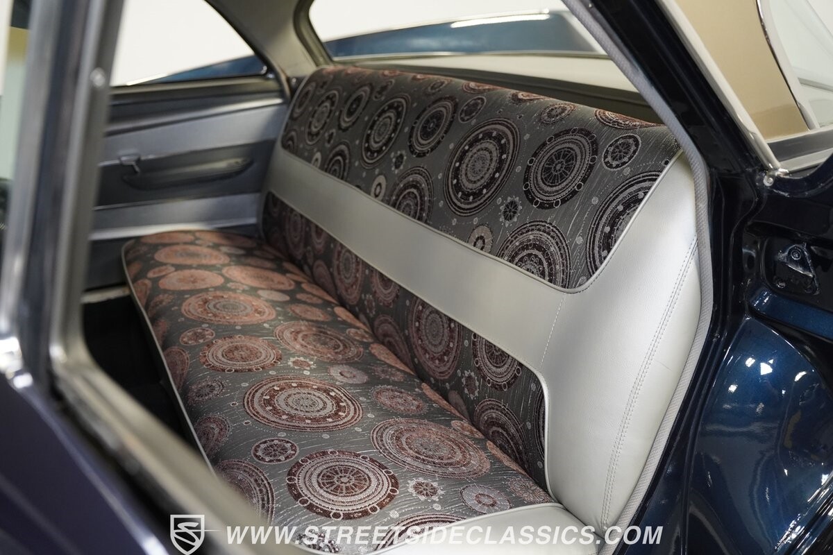 Slide into the silver vinyl and cloth bench seats, and you'll find yourself transported to a world of vintage cool. The two-tone interior, with its higher back for the driver, is a delightful mix of comfort and style. The carpet, door cards, and headliner are all in very good condition speaks to the car's well-loved history. The painted metal sections and original gauges add to the authentic feel, while the push-button transmission and climate controls are just plain fun to use. And let's not forget the original steering wheel, it's like shaking hands with a piece of automotive history.