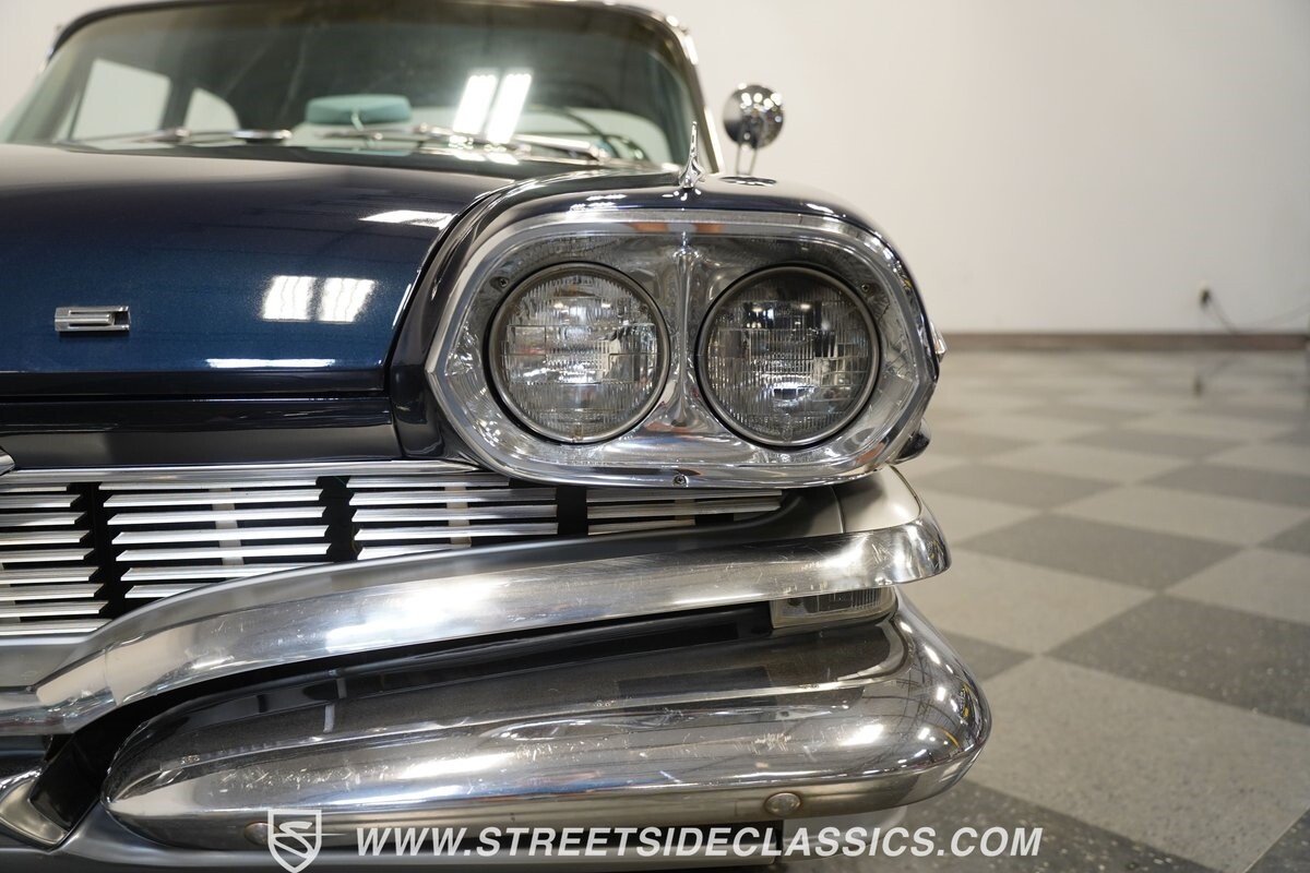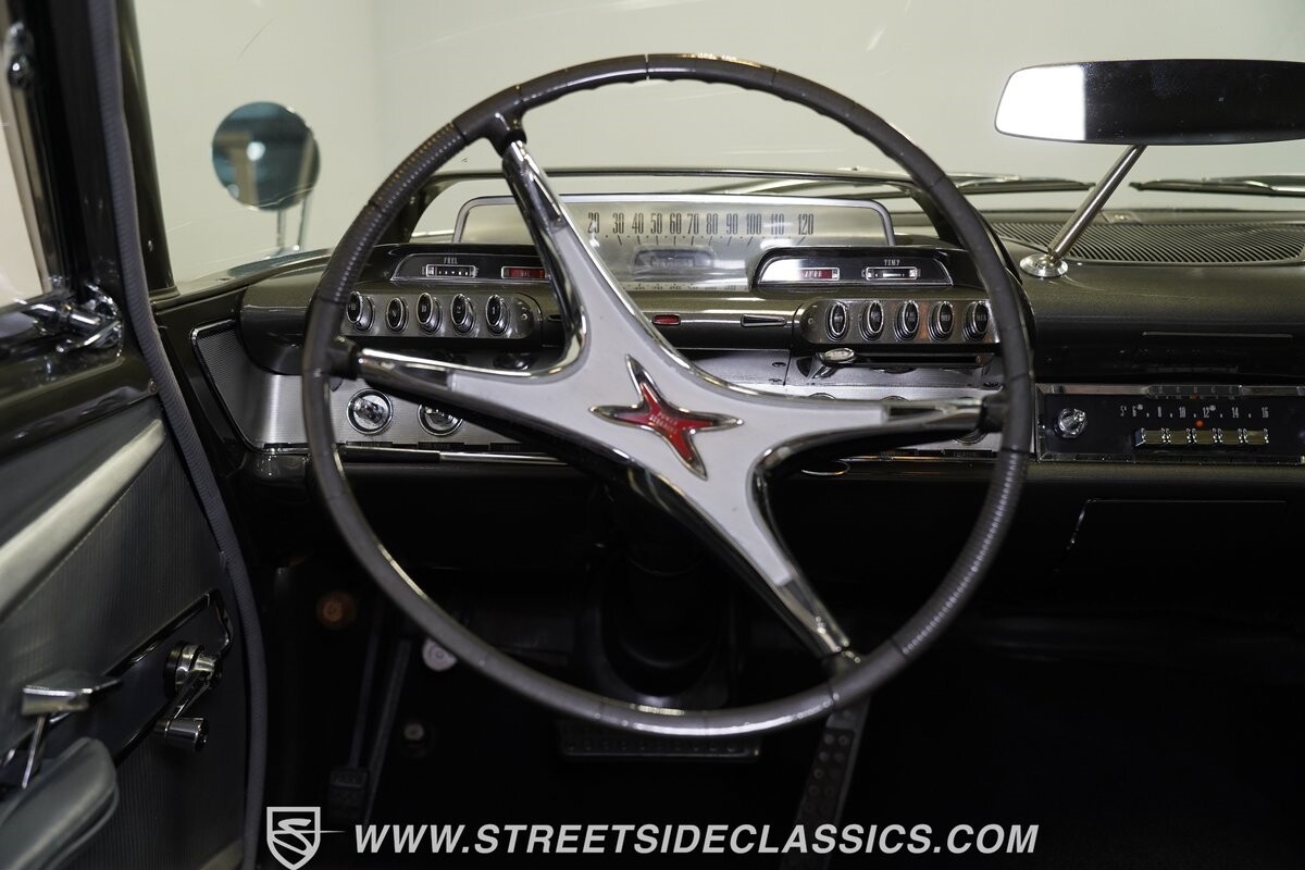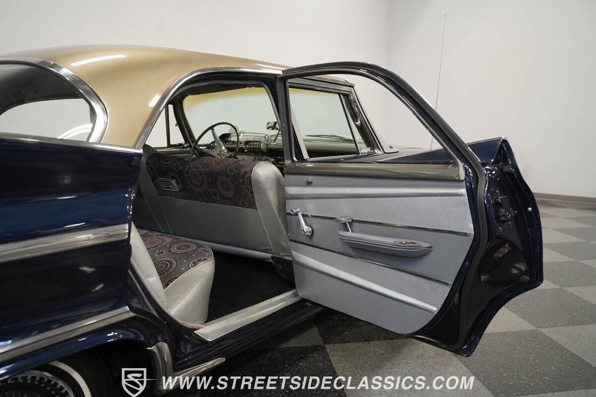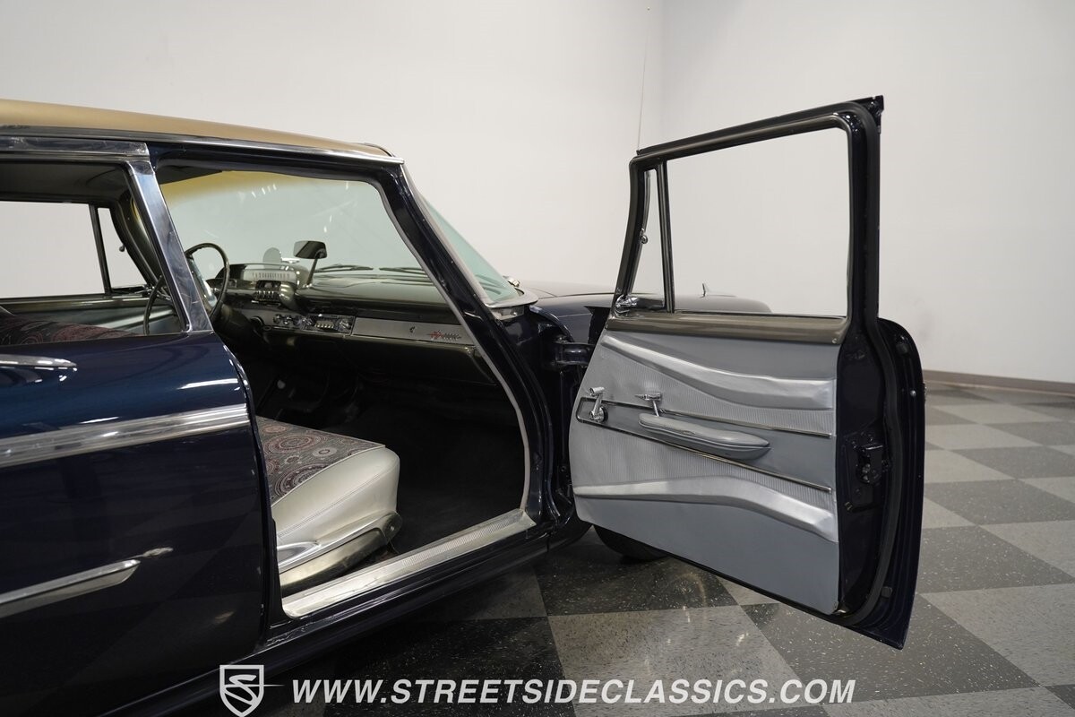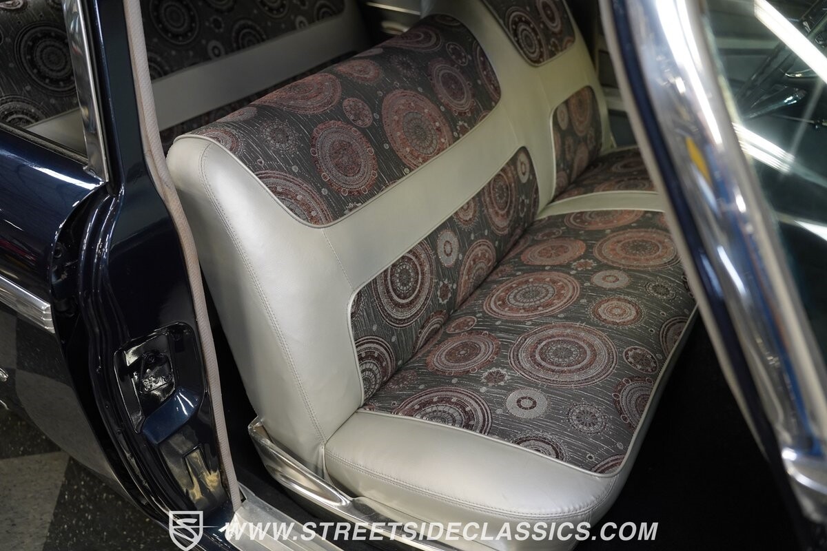 Slide into the silver vinyl and cloth bench seats, and you'll find yourself transported to a world of vintage cool. The two-tone interior, with its higher back for the driver, is a delightful mix of comfort and style. The carpet, door cards, and headliner are all in very good condition speaks to the car's well-loved history. The painted metal sections and original gauges add to the authentic feel, while the push-button transmission and climate controls are just plain fun to use. And let's not forget the original steering wheel, it's like shaking hands with a piece of automotive history.