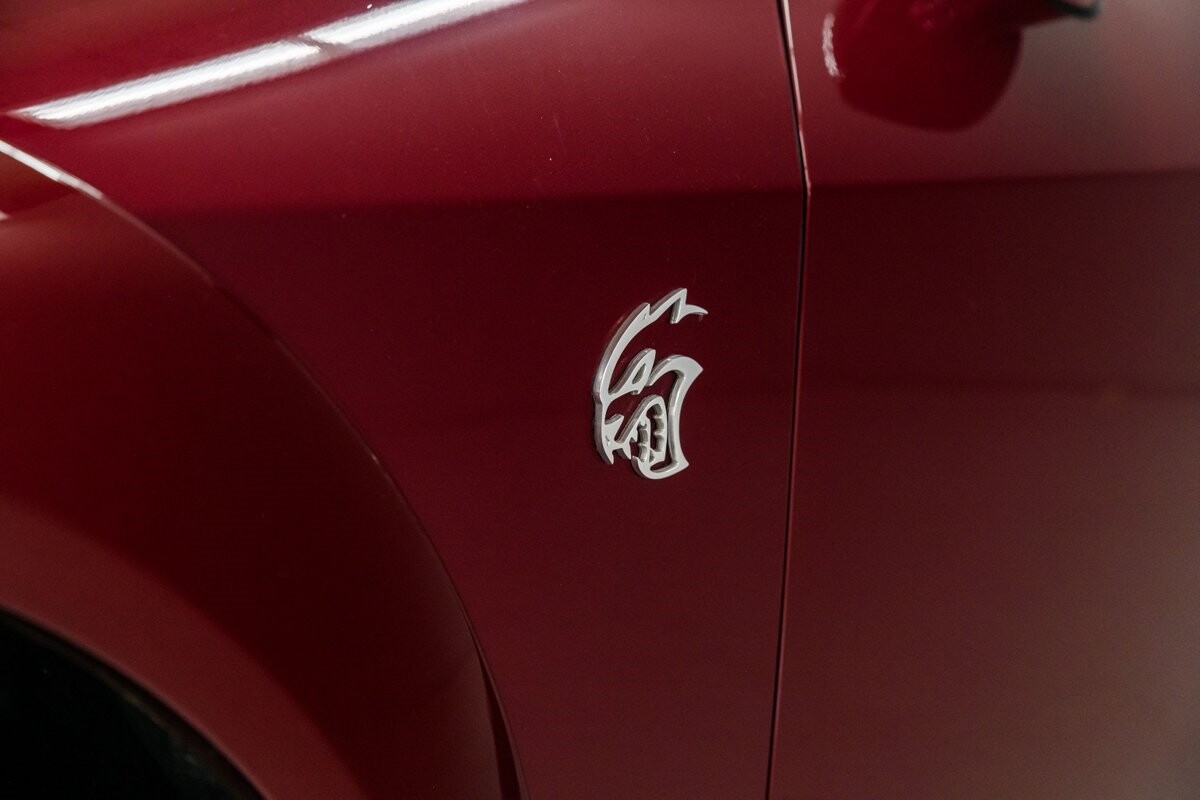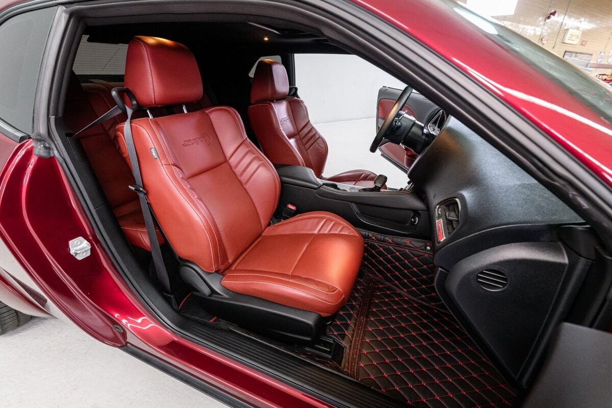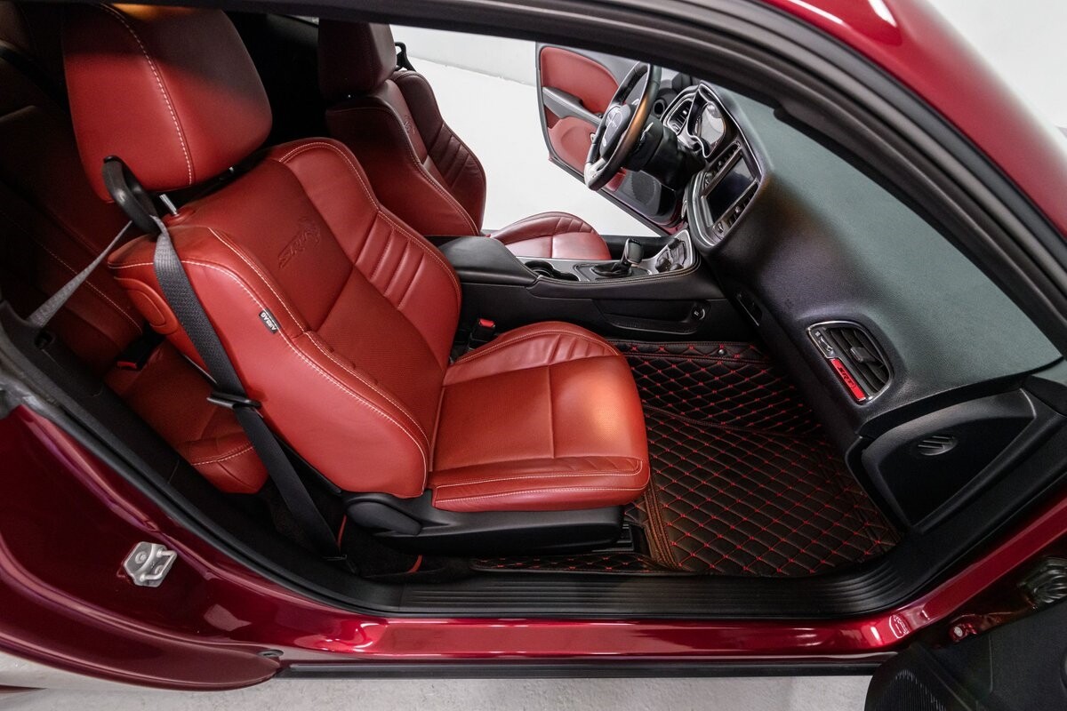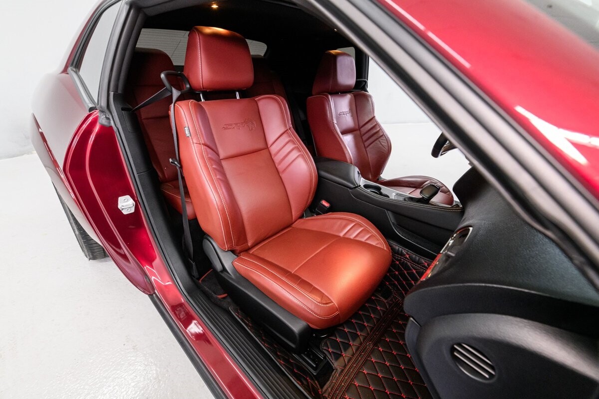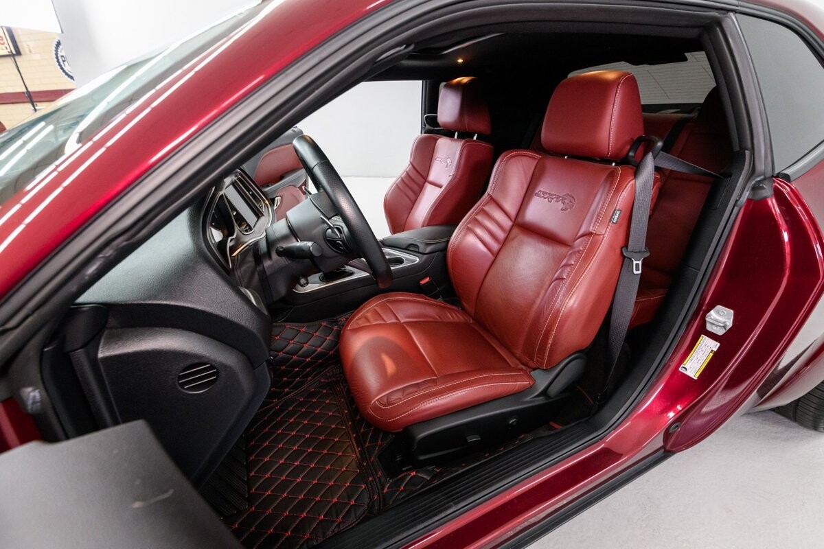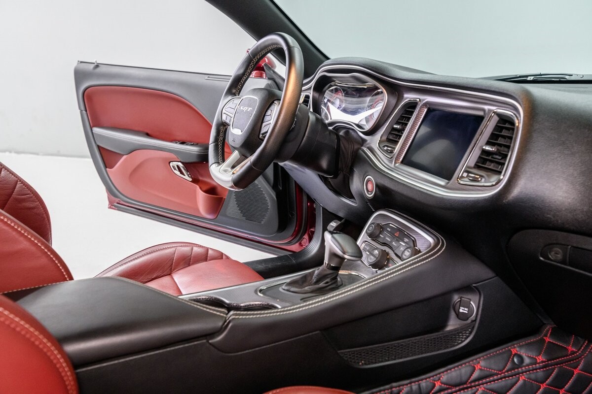 Following decades in retirement, the Challenger made a triumphant return to the Dodge lineup in 2008, followed in 2015 by the Challenger Hellcat SRT, a total performance package developed by Chrysler's Street and Racing Technology Group. This beautifully maintained, totally-original 1-owner 2018 Widebody Hellcat SRT is a rare, modern MOPAR classic with 13,100 miles on the odometer. (According to 'MOPAR Config Tree', this Challenger is said to be only 1 of 6 built with these options.) The Hellcat coupe is finished in Octane Red w/matte black accents - a very unique color combination that is factory-fresh and stunning. Dodge SRT Widebody 'Devil's' 20x11 forged wheels mount Pirelli P-Zero Z-rated radials. (Widebody option allowed for wider radials.) The beautiful exterior is paired with a Demonic Red Napa leather interior, also in virtually new condition. Comfort features include dual-zone climate control, handsome embossed heated/ventilated performance seats, power tinted windows, power sunroof, tilt wheel, power seats/locks, cruise and keyless entry. MOPAR's Uconnect infotainment system provides AM/FM/XM/HD sound along with Apple CarPlay, Android Auto and NAV. The system utilizes a Harman Kardon amp and an SRT instrument cluster includes a 8.4" driver information display.