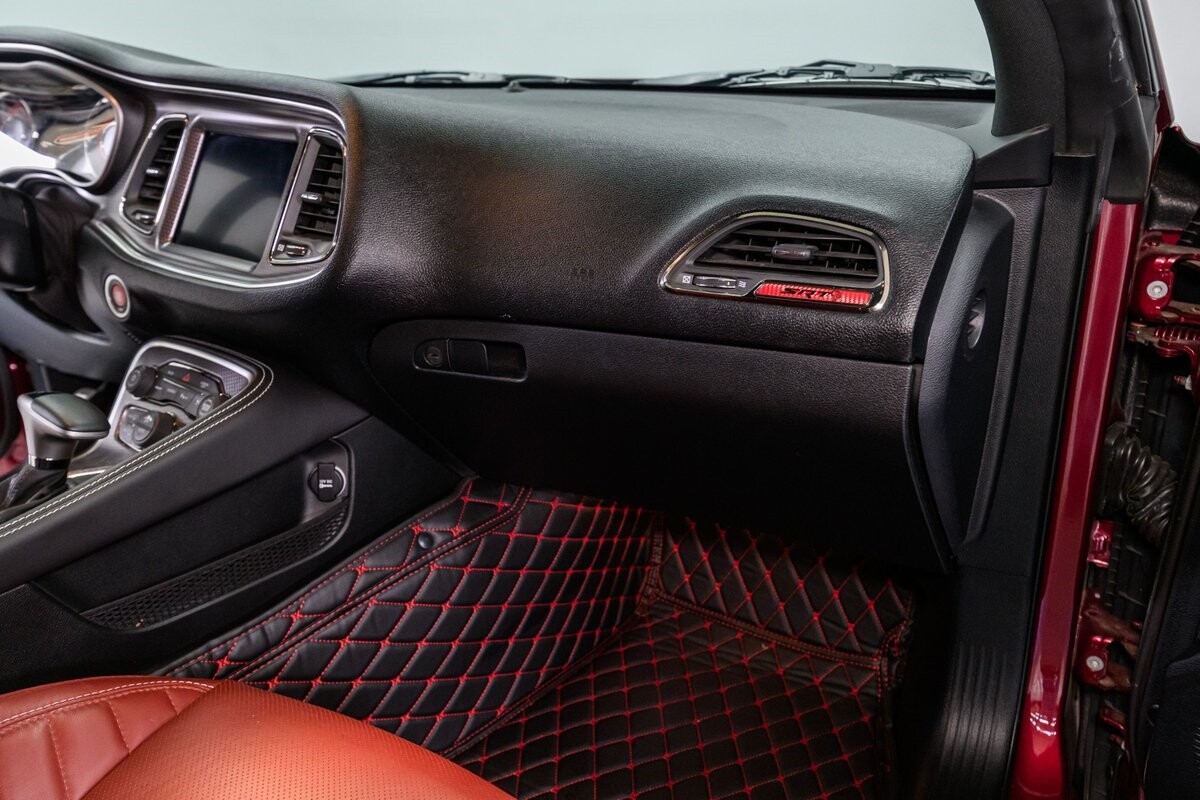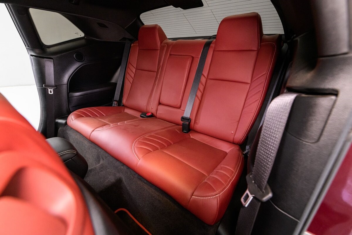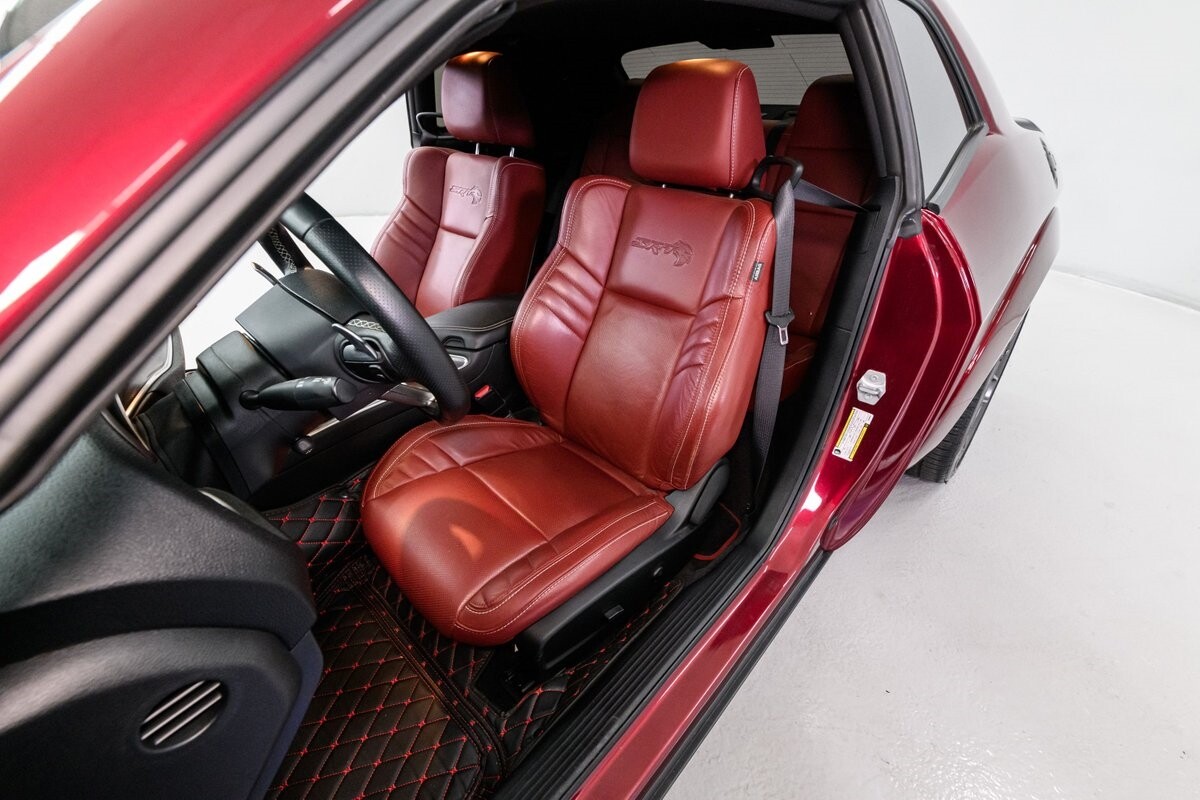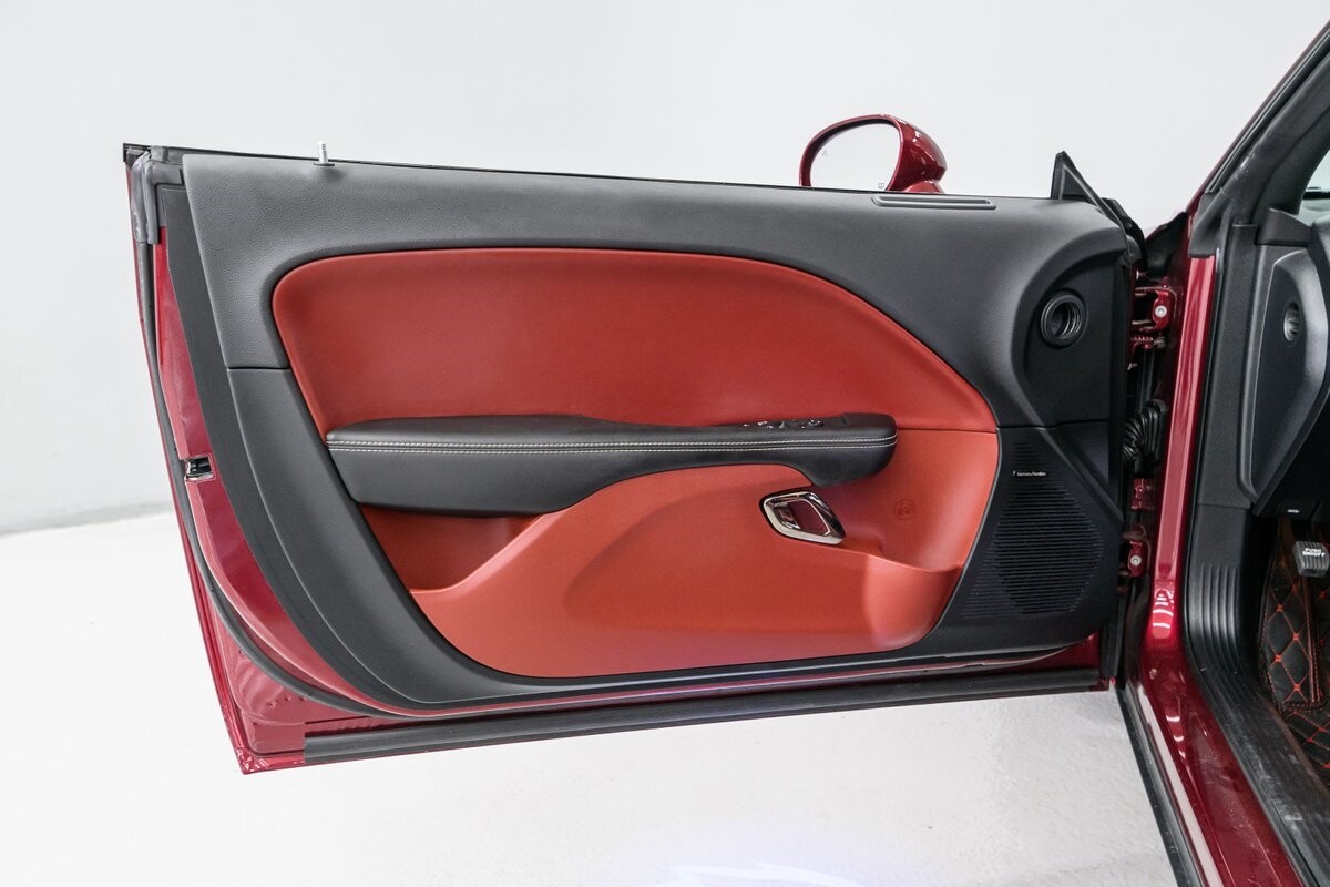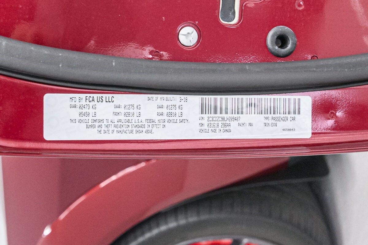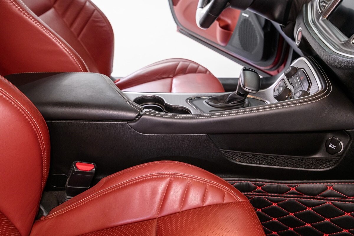 Following decades in retirement, the Challenger made a triumphant return to the Dodge lineup in 2008, followed in 2015 by the Challenger Hellcat SRT, a total performance package developed by Chrysler's Street and Racing Technology Group. This beautifully maintained, totally-original 1-owner 2018 Widebody Hellcat SRT is a rare, modern MOPAR classic with 13,100 miles on the odometer. (According to 'MOPAR Config Tree', this Challenger is said to be only 1 of 6 built with these options.) The Hellcat coupe is finished in Octane Red w/matte black accents - a very unique color combination that is factory-fresh and stunning. Dodge SRT Widebody 'Devil's' 20x11 forged wheels mount Pirelli P-Zero Z-rated radials. (Widebody option allowed for wider radials.) The beautiful exterior is paired with a Demonic Red Napa leather interior, also in virtually new condition. Comfort features include dual-zone climate control, handsome embossed heated/ventilated performance seats, power tinted windows, power sunroof, tilt wheel, power seats/locks, cruise and keyless entry. MOPAR's Uconnect infotainment system provides AM/FM/XM/HD sound along with Apple CarPlay, Android Auto and NAV. The system utilizes a Harman Kardon amp and an SRT instrument cluster includes a 8.4" driver information display.