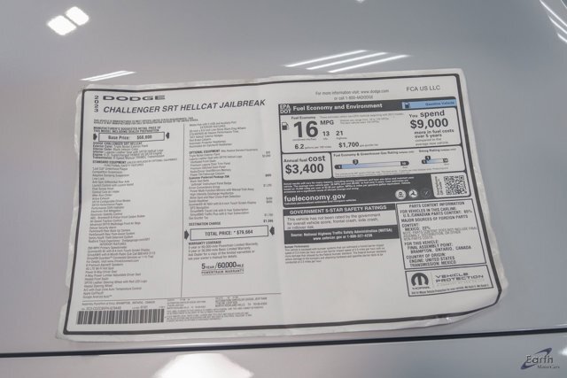 Earth MotorCars is Proud to offer this amazing: 2023 Dodge Challenger SRT Hellcat Jailbreak RARE 6 SPEED MANUAL Clean CARFAX. 1-Yr SiriusXM Guardian Trial, 4G LTE Wi-Fi Hot Spot, 4-Wheel Disc Brakes, 5-Year SiriusXM Traffic Service, 5-Year SiriusXM Travel Link Service, 8.4" Touchscreen Display, Adaptive suspension, Air Conditioning, All Radio Equipped Vehicles, All VP4R Radios, Apple CarPlay, Black Seat Belts, Blind Spot & Cross Path Detection, Body Color Exterior Mirrors, Compass Gauge, Driver Convenience Group, Dual front impact airbags, Dual front side impact airbags, Electronic Stability Control, Exterior Mirrors w/Heating Element, For Details, Visit , For More Info, Call214-483-9040, Front anti-roll bar, Google Android Auto, GPS Antenna Input, GPS Navigation, HD Radio, Heated and Vented Seats, Heated door mirrors, Heated Front Seats, Heated Steering Wheel, Hellcat Logo Laguna Leather Seat, High-Intensity Discharge Headlamps, Integrated Center Stack Radio, Integrated Voice Command w/Bluetooth, Jailbreak IP Badge, Laguna Leather Package (DISC), Media Hub (2 USB, AUX), Overhead airbag, Panic alarm, ParkView Rear Back-Up Camera, Power door mirrors, Power driver seat, Power Multi-Function Foldaway Mirrors, Power Tilt/Telescope Steering Column, Premium Laguna Door Trim Panel, Premium-Stitched Dash Panel, Quick Order Package 25K Hellcat Jailbreak, Radio data system, Radio/Driver Seat/Mirrors Memory, Radio: Uconnect 4C Nav w/8.4" Display, Security system, Shark Fin Antenna, SiriusXM Radio Service, SiriusXM Satellite Radio, SiriusXM Traffic Plus, SiriusXM Travel Link, Speed control, Spoiler, Telescoping steering wheel, USB Host Flip, Variably intermittent wipers, Ventilated Front Seats, Wheels: 20" x 9.5" Low Gloss Black Drag.We are not affiliated with the Manufacturer other than Lotus so we recommend that you contact your local franchise dealer to confirm options and warranty information. Please ask your sales representative for details. Welcome to Dallas Fort Worth's Premier Lotus, Luxury, Exotic and Classic Cars Dealership. We specialize in offering the Finest Vehicles, Providing Outstanding Customer Service, Obtaining the Best Financing Options and Stocking a Large Selection of Luxury Vehicles, Exotics, Classic Cars and More! See for Yourself what Thousands of Customers have Discovered over the Years and Make your Next Purchase from Earth MotorCars! Our Goal is to Make you a Customer for Life! Learn more about us by calling214-483-9040 or via e-mail at . Visit us on our Website at