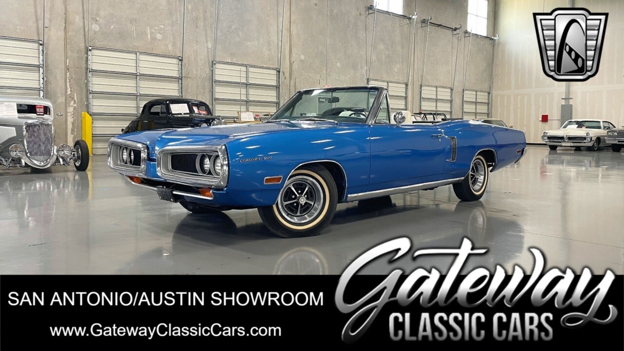 Gateway Classic Cars of San Antonio/Austin is excited to be able to offer this 1 owner, unmolested & all original 1970 Dodge Coronet 500 convertible! Rarely do we get an opportunity to offer a time capsule like this, but this is one of those moments. Purchased new on 03/23/1970 from Garland Dodge in Dallas, TX (original Bill of Sale in hand), this Coronet 500 is one of only 67 examples made with the E63 coded 383CID 4bbl carb engine and TorqueFlight automatic combo. [ omitted ]. It was returned to the family about a year later for them to enjoy again, only to be taken back to the Mopar Shop April of 2024 for a complete going through. The result is what you see here. This is a very rare opportunity to own a MOPAR time capsule that would nicely compliment even the most high end collections!.