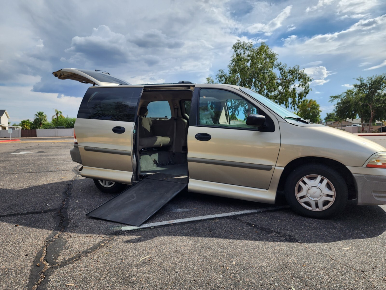 2000 Ford Windstar in very good condition. Has approximately 110,000 miles on it, runs well, has side door floor ramp, cold a/c, and priced very reasonably. Interior in good shape, also.