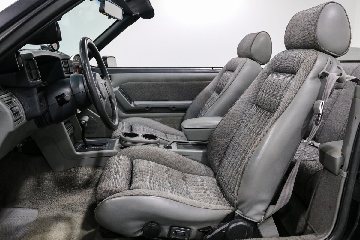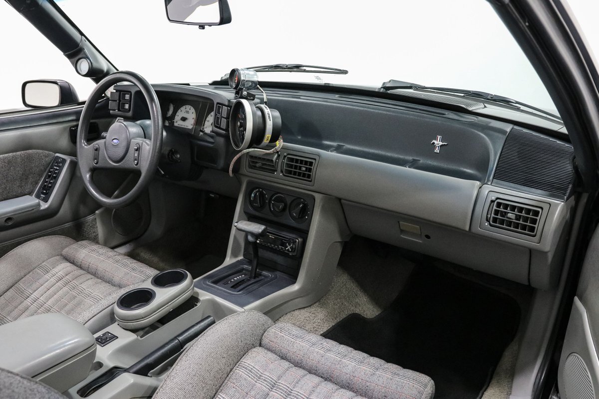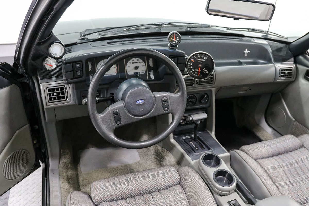 Experience the exhilarating blend of classic design and modern performance with this 1989 Ford Mustang LX Convertible. Powered by a supercharged 5.0L V8 engine, equipped with a Vortec supercharger and mated to an AOD automatic overdrive transmission with a 2800 RPM stall converter, this Mustang delivers a thrilling ride. The sleek black exterior and comfortable gray cloth bucket seats offer a timeless look, while the power convertible top allows for an unforgettable open-air driving experience.