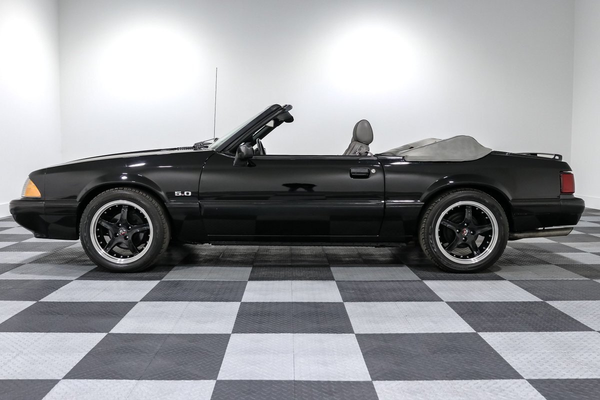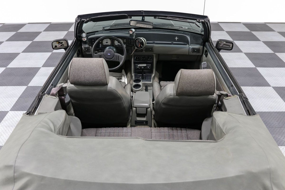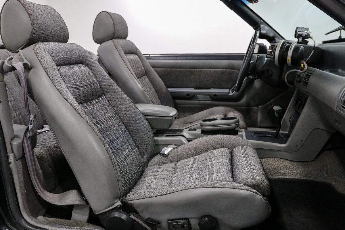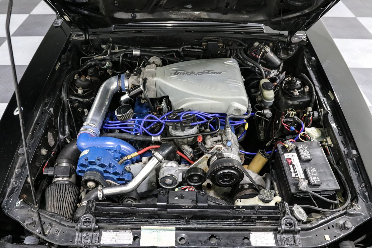 Experience the exhilarating blend of classic design and modern performance with this 1989 Ford Mustang LX Convertible. Powered by a supercharged 5.0L V8 engine, equipped with a Vortec supercharger and mated to an AOD automatic overdrive transmission with a 2800 RPM stall converter, this Mustang delivers a thrilling ride. The sleek black exterior and comfortable gray cloth bucket seats offer a timeless look, while the power convertible top allows for an unforgettable open-air driving experience.