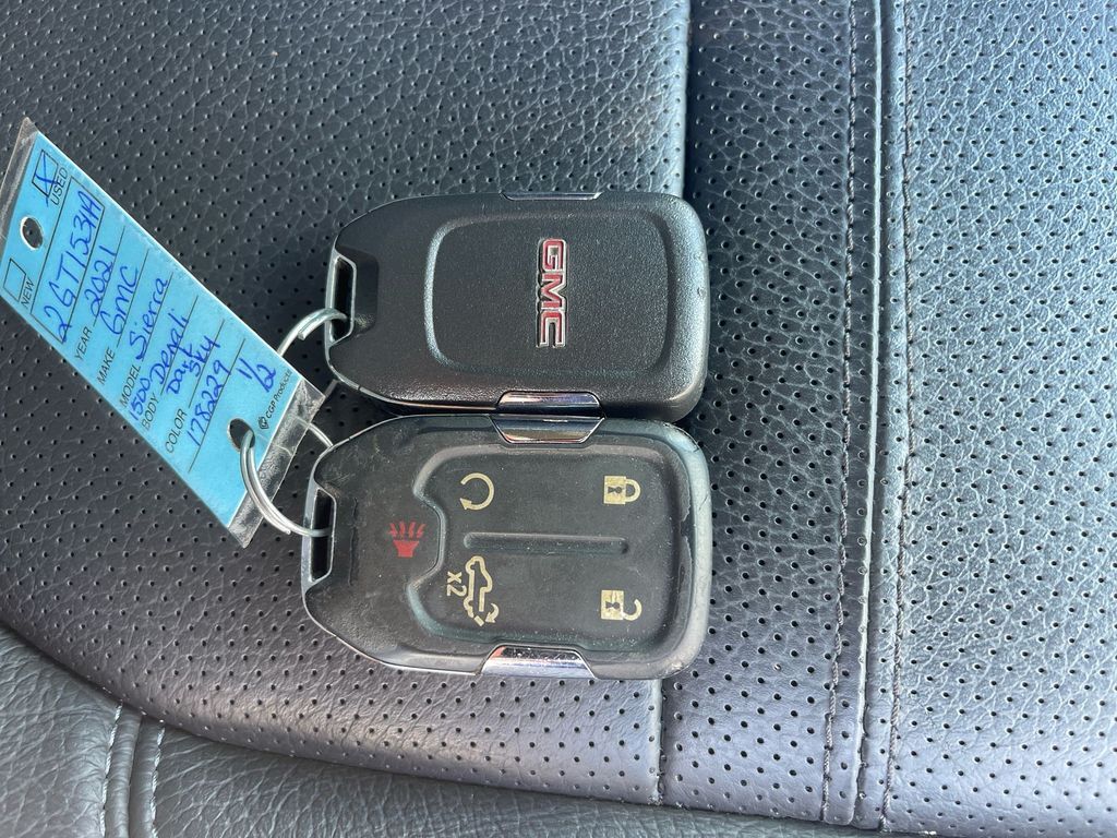 THIS VEHICLE INCLUDES THE FOLLOWING FEATURES AND OPTIONS: Denali Ultimate Package (GMC MultiPro Power Steps, Power Sunroof, Wheel Locks (Set of 4) (LPO), and Wheels: 22 x 9 Multi-Dimensional Polished Alum), Driver Alert Package I (Lane Change Alert w/Side Blind Zone Alert, Rear Cross Traffic Alert, and Ultrasonic Front & Rear Park Assist), Driver Alert Package II (Adaptive Cruise Control, Automatic Emergency Braking, Following Distance Indicator, Forward Collision Alert, Front Pedestrian Braking, IntelliBeam Automatic High Beam On/Off, and Lane Keep Assist w/Lane Departure Warning), Preferred Equipment Group 5SA (12-Volt Rear Auxiliary Power Outlet, 120-Volt Bed Mounted Power Outlet, 120-Volt Instrument Panel Power Outlet, 170 Amp Alternator, 2 USB Ports, 2 USB Ports (1st Row), 4G LTE Wi-Fi Hotspot Capable, Auto-Locking Rear Differential, Auxiliary External Transmission Oil Cooler, Chrome Recovery Hooks, Chrome Wheel To Wheel Assist Steps, Color-Keyed Carpeting Floor Covering, Compass, Deep-Tinted Glass, Electric Rear-Window Defogger, Electrical Lock Control Steering Column, Floor-Mounted Center Console, GMC Connected Access Capable, HD Rear Vision Camera, Heated Driver & Front Outboard Passenger Seating, Heavy-Duty Air Filter, Hill Descent Control, Hitch Guidance w/Hitch View, In-Vehicle Trailering App, Integrated Trailer Brake Controller, Keyless Open & Start, LED Cargo Area Lighting, Manual Tilt-Wheel & Telescoping Steering Column, OnStar & GMC Connected Services Capable, Power Door Locks, Power Front Passenger Windows w/Express Up/Down, Power Front Windows w/Driver Express Up/Down, Power Rear Windows w/Express Down, Power Sliding Rear Window w/Rear Defogger, ProGrade Trailering System, Rear Dual USB Charging-Only Ports, Rear Wheelhouse Liners, Remote Vehicle Starter System, Safety Alert Seat, Signature Denali Grille, Spray-On Pickup Bed Liner w/Denali Logo, Steering Wheel Audio Controls, Theft Deterrent System (Unauthorized Entry), Universal Home Remote, Ventilated Driver & Front Passenger Seats, and Wireless Charging), Technology Package (Bed View Camera, HD Surround Vision w/2 Trailer View Camera Provisions, Multicolor 15 Diagonal Head-Up Display, and Rear Camera Mirror), Trailering Package (Hitch Guidance), Sierra 1500 Denali 4WD, 10-Way Power Driver Seat Adjuster w/Lumbar, 10-Way Power Passenger Seat Adjuster w/Lumbar, 3.23 Rear Axle Ratio, 4-Wheel Disc Brakes, 7 Speakers, ABS brakes, Adaptive Ride Control Suspension, Adaptive suspension, Air Conditioning, Alloy wheels, AM/FM radio: SiriusXM with 360L, AppLink/Apple CarPlay and Android Auto, Auto-dimming door mirrors, Auto-dimming Rear-View mirror, Automatic temperature control, Brake assist, Bumpers: body-color, Cruise Control, Delay-off headlights, Driver door bin, Driver Memory, Driver vanity mirror, Dual front impact airbags, Dual front side impact airbags, Electronic Stability Control, Forge Perforated Leather-Appointed Seat Trim, Front anti-roll bar, Front Bucket Seats, Front Center Armrest, Front dual zone A/C, Front fog lights, Front License Plate Kit, Front reading lights, Front wheel independent suspension, Fully automatic headlights, Garage door transmitter, Genuine wood console insert, Genuine wood door panel insert, Heated 2nd Row Outboard Seats, Heated door mirrors, Heated front seats, Heated steering wheel, Illuminated entry, Low tire pressure warning, Memory seat, Occupant sensing airbag, Outside temperature display, Overhead airbag, Overhead console, Panic alarm, Passenger door bin, Passenger vanity mirror, Power door mirrors, Power driver seat, Power passenger seat, Power steering, Power windows, Premium audio system: GMC Infotainment System, Premium Bose 7-Speaker Sound System, Radio data system, Radio: Premium GMC Infotainment Sys w/Navigation, Rear reading lights, Rear seat center armrest, Rear step bumper, Rear window d