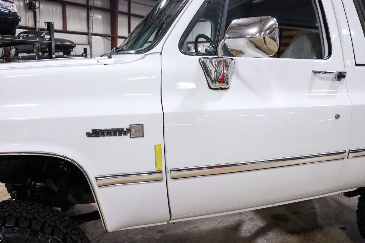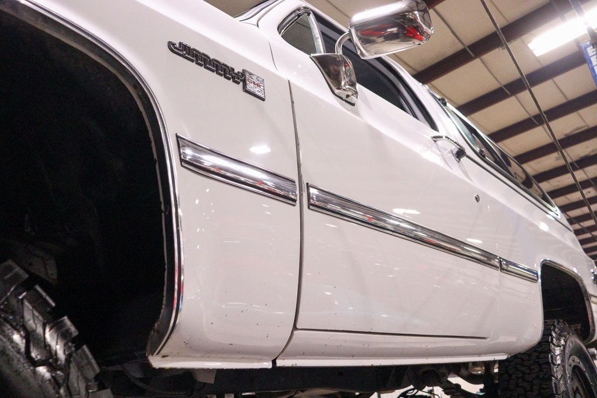 For sale is a classic 1987 GMC Jimmy that seamlessly merges rugged charm with modern performance. This timeless SUV is powered by a robust 350 V8 engine, delivering a perfect blend of power and reliability. What sets this Jimmy apart is its recent upgrade to a Sniper EFI system, providing enhanced fuel efficiency, improved throttle response, and an overall smoother driving experience.  This example rides on LT 295/70R17 BFG tires on custom wheels.  Highlights include power windows and power locks, digital gauges, aluminum heads, headers and aluminum radiator.
