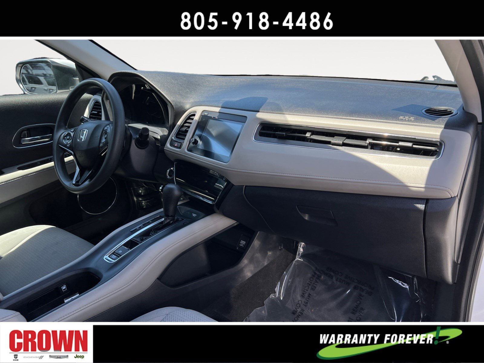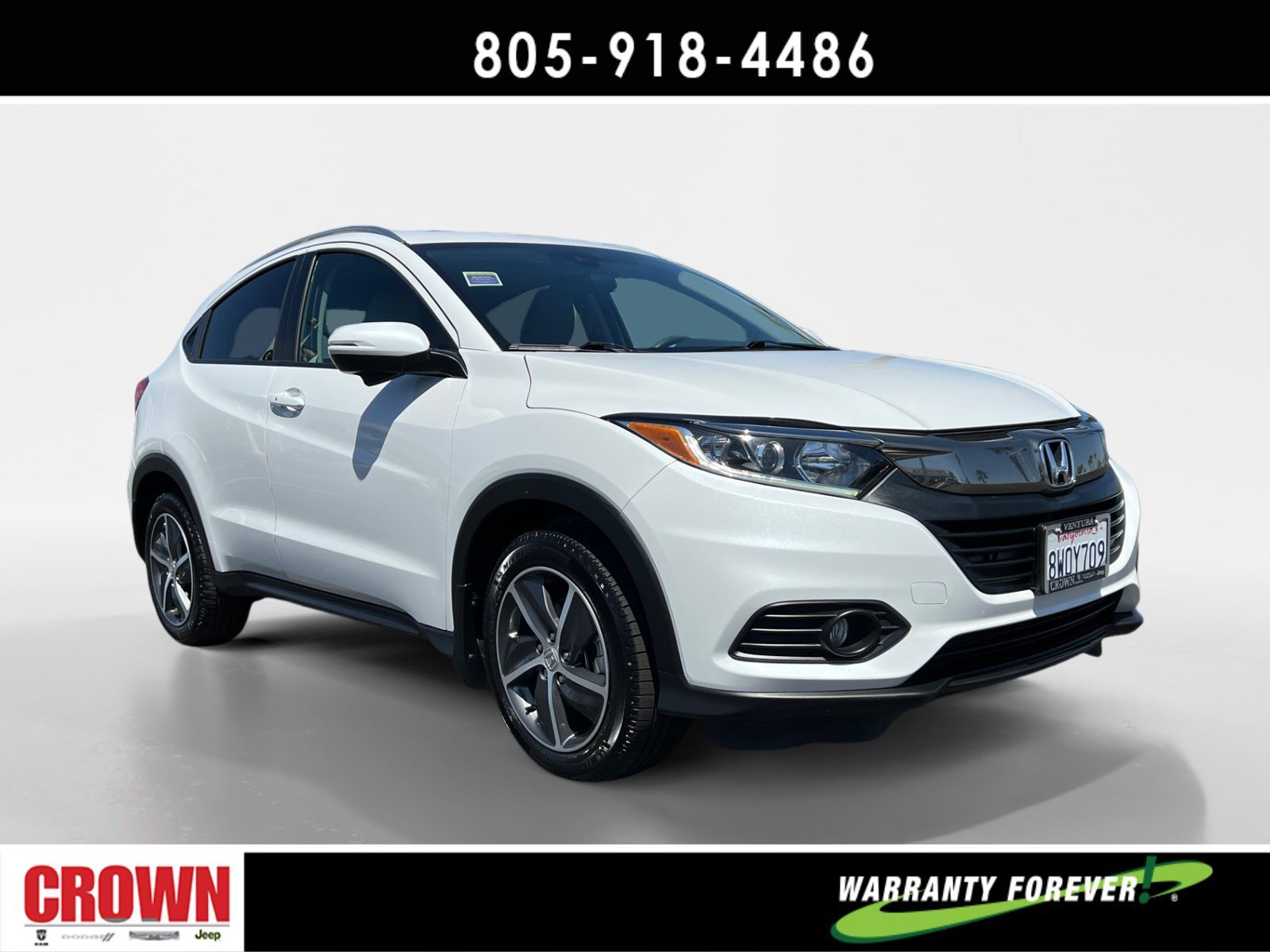 Platinum White Pearl 2021 Honda HR-V EX FWD CVT 1.8L I4 SOHC 16V i-VTEC ** 1 Owner Clean CarFax **, Under Factory Warranty, Alloy wheels, Apple CarPlay/Android Auto, Automatic temperature control, Exterior Parking Camera Rear, Forward collision: Collision Mitigation Braking System (CMBS) + FCW mitigation, Front fog lights, Fully automatic headlights, Heated door mirrors, Heated Front Bucket Seats, Illuminated entry, Outside temperature display, Power door mirrors, Power moonroof, Radio: AM/FM/HD Audio System (180-Watt), Rear window defroster, Remote keyless entry, Security system, SiriusXM Radio, Split folding rear seat, Spoiler, Steering wheel mounted audio controls.Here at Crown Dodge Chrysler Jeep RAM, we believe that great service means more than just offering our new Dodge, Chrysler, Jeep, and RAM lineup. We believe that great service also includes helpful advice, friendly car financing, and the highest quality parts and repairs for your car. Our staff works hard to make your full automotive experience at our car dealership in Ventura, CA enjoyable, and we look forward to helping you today! All vehicles at Crown Dodge have our SWAT security system $995,Clear Shield $395, Pulse $395, Wheel Locks $395, Windshield Protection $995, Nitro Fill $499, Screen Protector $395 and $1295 Paint/Fabric Protection pre-installed. Prices on the website do not include dealer-added equipment. Discounts include $2,000 Trade-In Dealer Assist Cash. Must trade in a 2015 or newer vehicle on a retail purchase. Trade-in must have less than 15,000 miles on average per year stated on Carfax Report, clean title, and Clean vehicle history report. Expires 02/19/2024. Expires 02/29/2024.