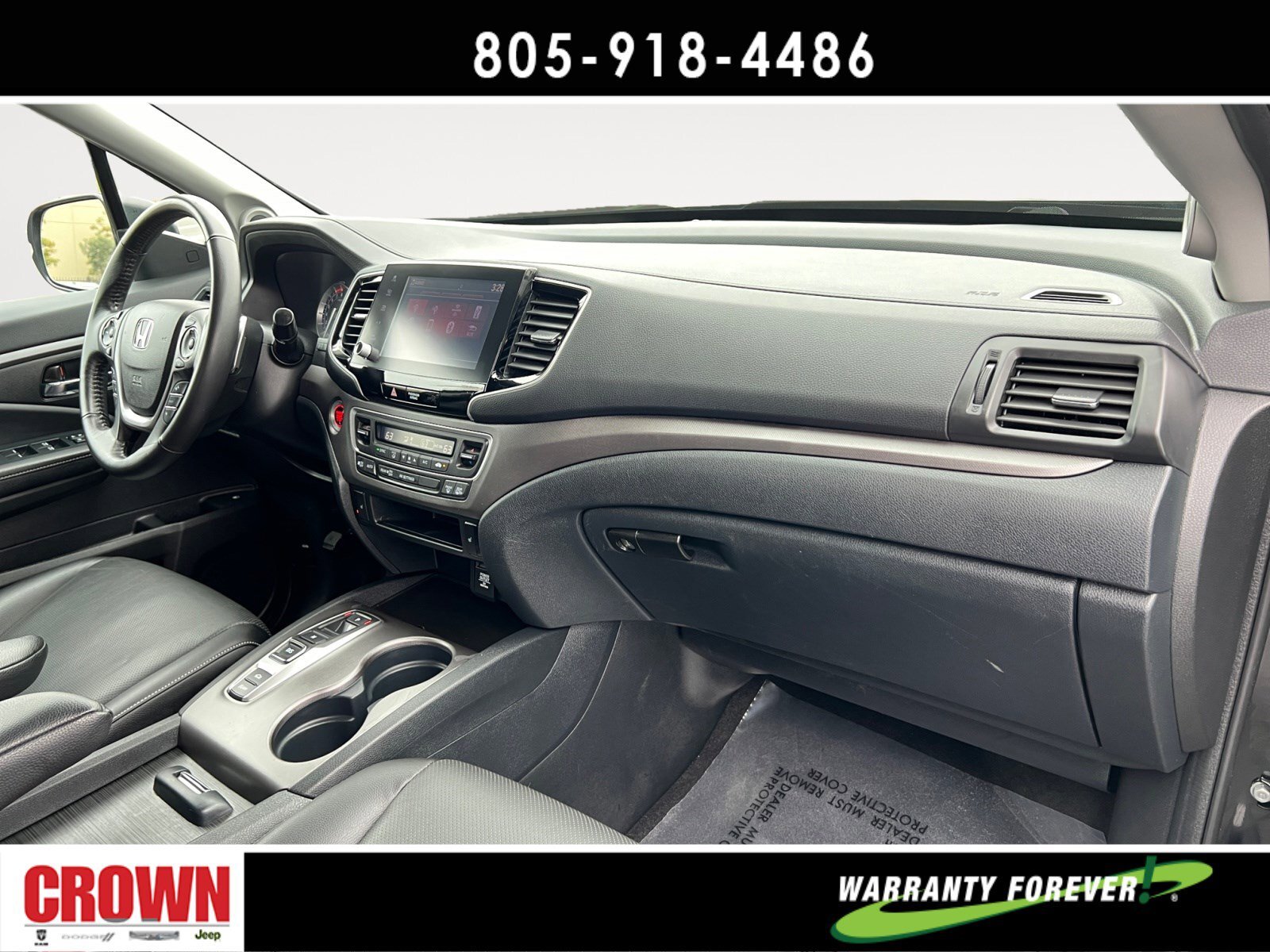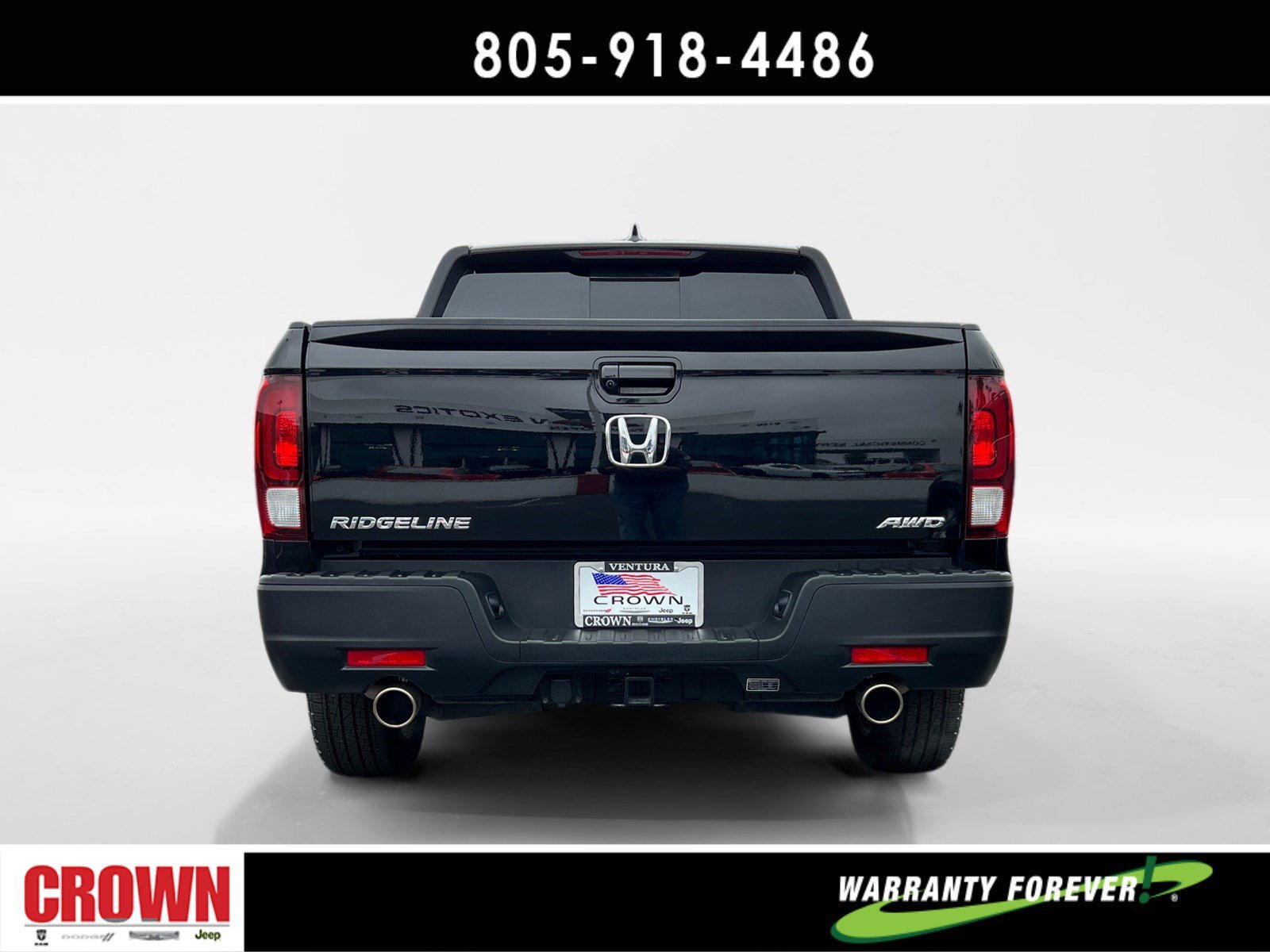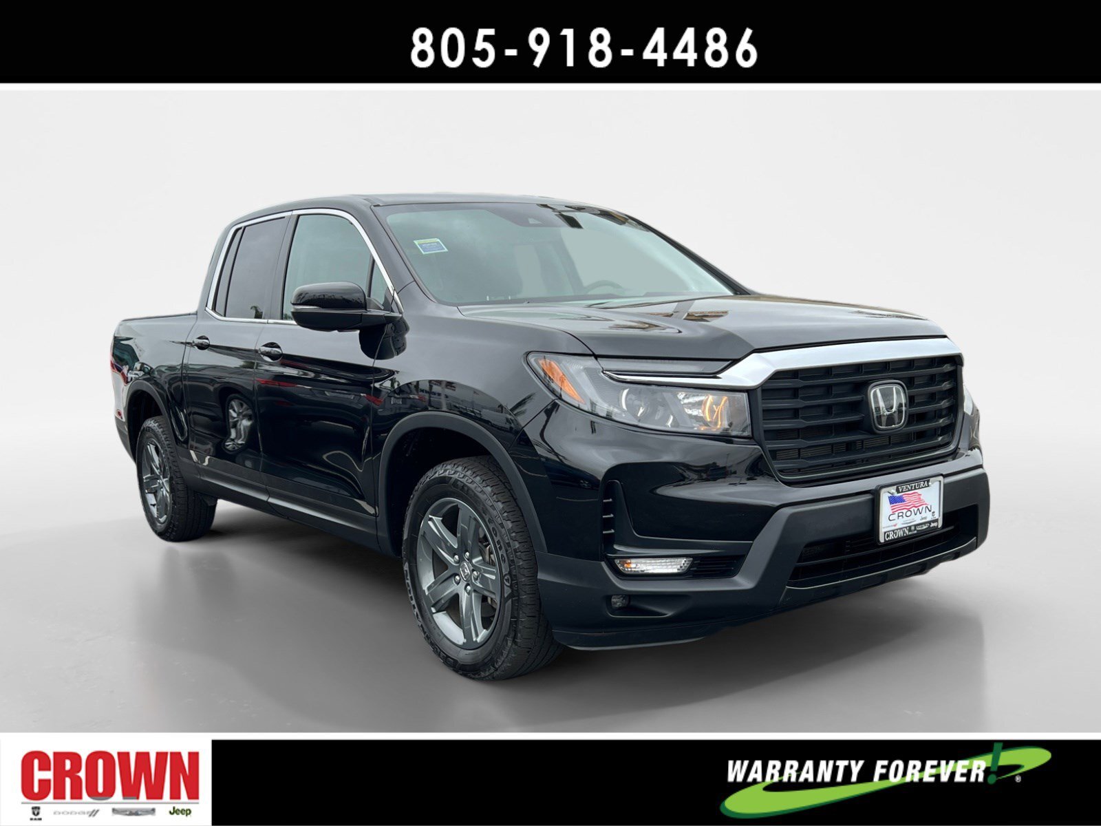 Crystal Black Pearl 2023 Honda Ridgeline RTL AWD 9-Speed Automatic 3.5L V6 SOHC i-VTEC 24V ** 1 Owner Clean CarFax **, Under Factory Warranty, Black Leather, Apple CarPlay/Android Auto, Automatic temperature control, Bluetooth® Hands-Free Link, Bumpers: body-color, Exterior Parking Camera Rear, Front dual zone A/C, Front fog lights, Garage door transmitter: HomeLink, Heated door mirrors, Heated Front Bucket Seats, Illuminated entry, Leather Seat Trim, Memory seat, Outside temperature display, Overhead console, Power door mirrors, Power driver seat, Power moonroof, Power passenger seat, Radio: 215-Watt Audio System w/7 Speakers, Rear air conditioning, Rear step bumper, Rear window defroster, Remote keyless entry, Security system, SiriusXM, Split folding rear seat, Steering wheel mounted audio controls, Wheels: 18 Exclusive Pewter Gray Alloy.Here at Crown Dodge Chrysler Jeep RAM, we believe that great service means more than just offering our new Dodge, Chrysler, Jeep, and RAM lineup. We believe that great service also includes helpful advice, friendly car financing, and the highest quality parts and repairs for your car. Our staff works hard to make your full automotive experience at our car dealership in Ventura, CA enjoyable, and we look forward to helping you today! All vehicles at Crown Dodge have our SWAT security system $995,Clear Shield $395, Pulse $395, Wheel Locks $395, Windshield Protection $995, Nitro Fill $499, Screen Protector $395 and $1295 Paint/Fabric Protection pre-installed. Prices on the website do not include dealer-added equipment. Discounts include $2,000 Trade-In Dealer Assist Cash. Must trade in a 2015 or newer vehicle on a retail purchase. Trade-in must have less than 15,000 miles on average per year stated on Carfax Report, clean title, and Clean vehicle history report. Expires 02/19/2024. Expires 02/29/2024.