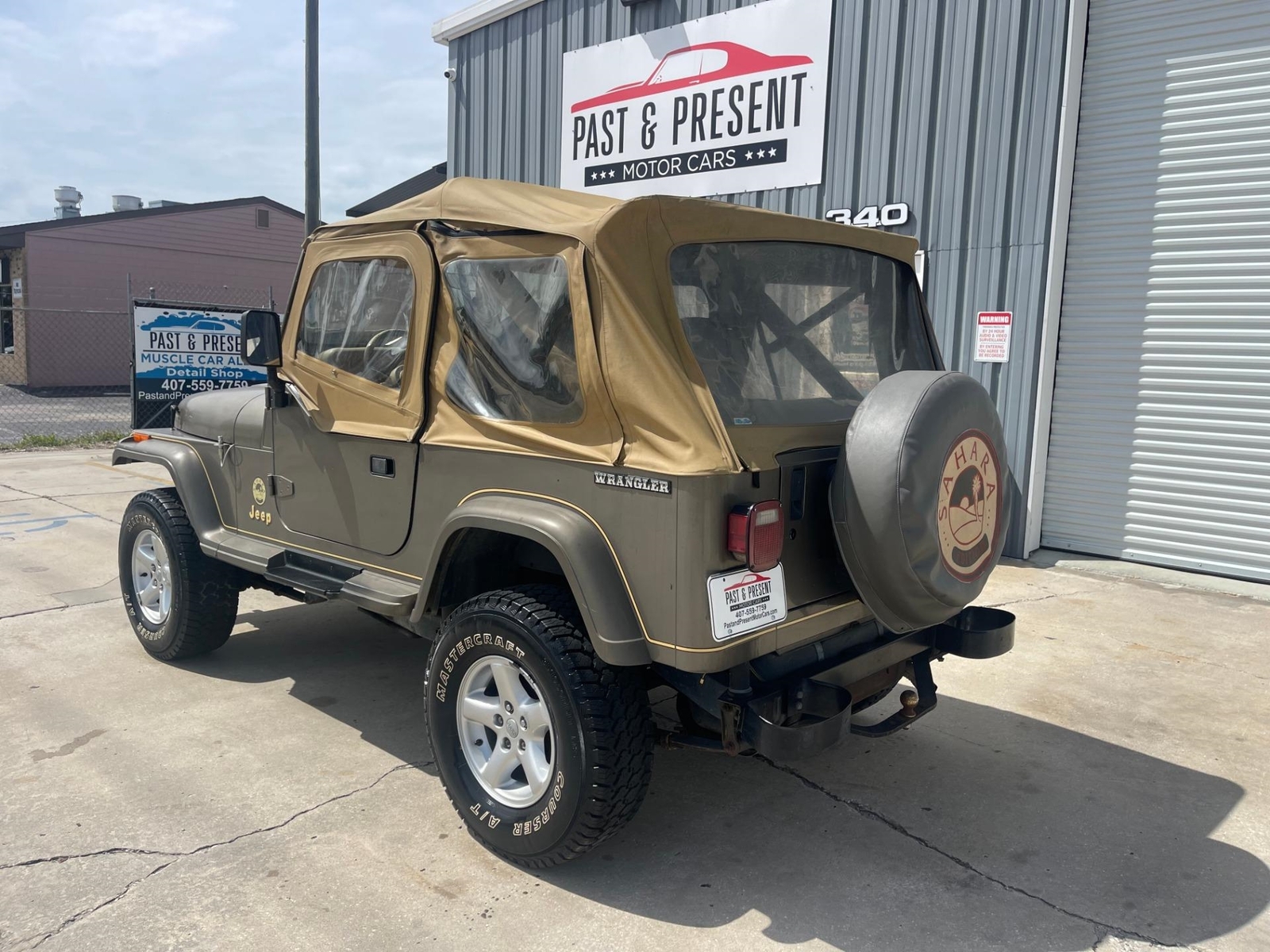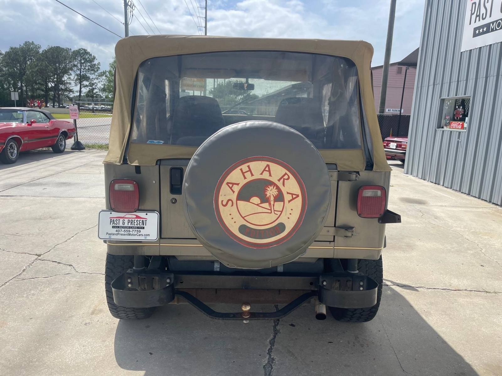 1989 Jeep Wrangler Sahara, Jeep is in very Original Condition, 4.2 Liter Straight 6 Cylinder Engine, 5 Speed Manual Transmission and 4x4, Has Original Air Conditioning (May not be cold at this time) same family owned since new. While we do our best to provide the highest quality muscle cars with an honest and reliable description and realize the importance of transparency when selling vehicles. That being said, we have not built, modified, changed or personally owned this vehicle. Whether this vehicle is consigned or owned by Past & Present Motor Cars we do not know the vehicles complete history since new. We want to be clear and try to answer any questions our customers might have prior to purchasing. Additionally, we not only welcome but we encourage 3rd party independent inspections. Please inquire prior to purchase to make sure the advertised vehicle has not already been sold. We list our vehicles on multiple websites and a vehicle can sell at any time. If a customer chooses to purchase sight unseen (many of our customers choose this option) the customer accepts the vehicle AS IS and WHERE IS and understands we cannot address concerns after purchase. For this reason, it's important all concerns are addressed prior to purchase. We make every effort to present accurate and reliable information, but use of this information is voluntary, and should only be deemed reliable after an independent review of its accuracy, completeness, and timeliness. It is the sole responsibility of the customer to verify the existence of options, accessories and the vehicle condition before time of sale. Financing is Available with low rates and Vehicle Shipping is available from our Showroom to your Garage. A Classic Car Warranty is Available for Purchase from a 3rd Party. Please speak to our Sales Associate or Company Representative for more information. Our team is working and available anytime by Phone or Text for your convenience at 407-559-7759. Thank you for your interest!