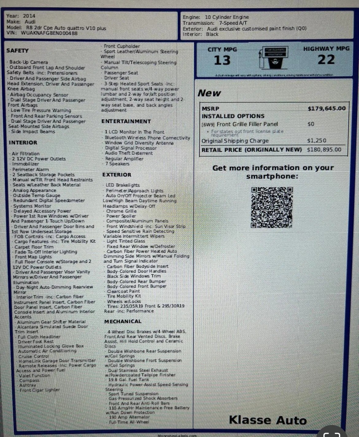 State or local taxes, title, license fee, processing fees, registration fee, dealer documentary fee, finance charges, emission testing fees, and compliance fees are additional to the advertised price.
