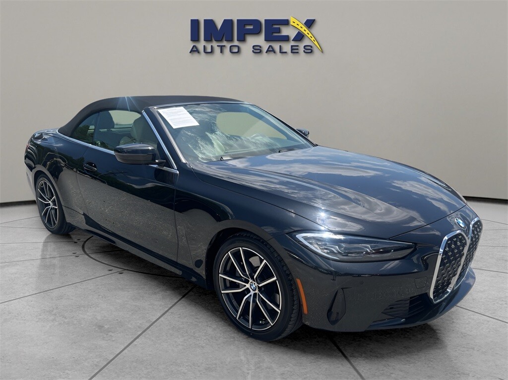 CARFAX One-Owner. This 2023 BMW 4 Series 430i RWD with 27337 miles was carefully inspected and reconditioned by our service team. Impex Auto Sales offers 7-Day/300-Mile Money-Back Guarantee, an exclusive 100+ Point Vehicle Inspection, Third-Party Price Validation, and a Vehicle History Report. Purchase your vehicle online for home delivery or pick it up at Impex Auto Sales. If you need to get rid of your current vehicle. You can trade it or we can buy it. Price excludes tax, tag, title and $799 administrative fee as regulated by N.C.G.S. 20-101.1.
