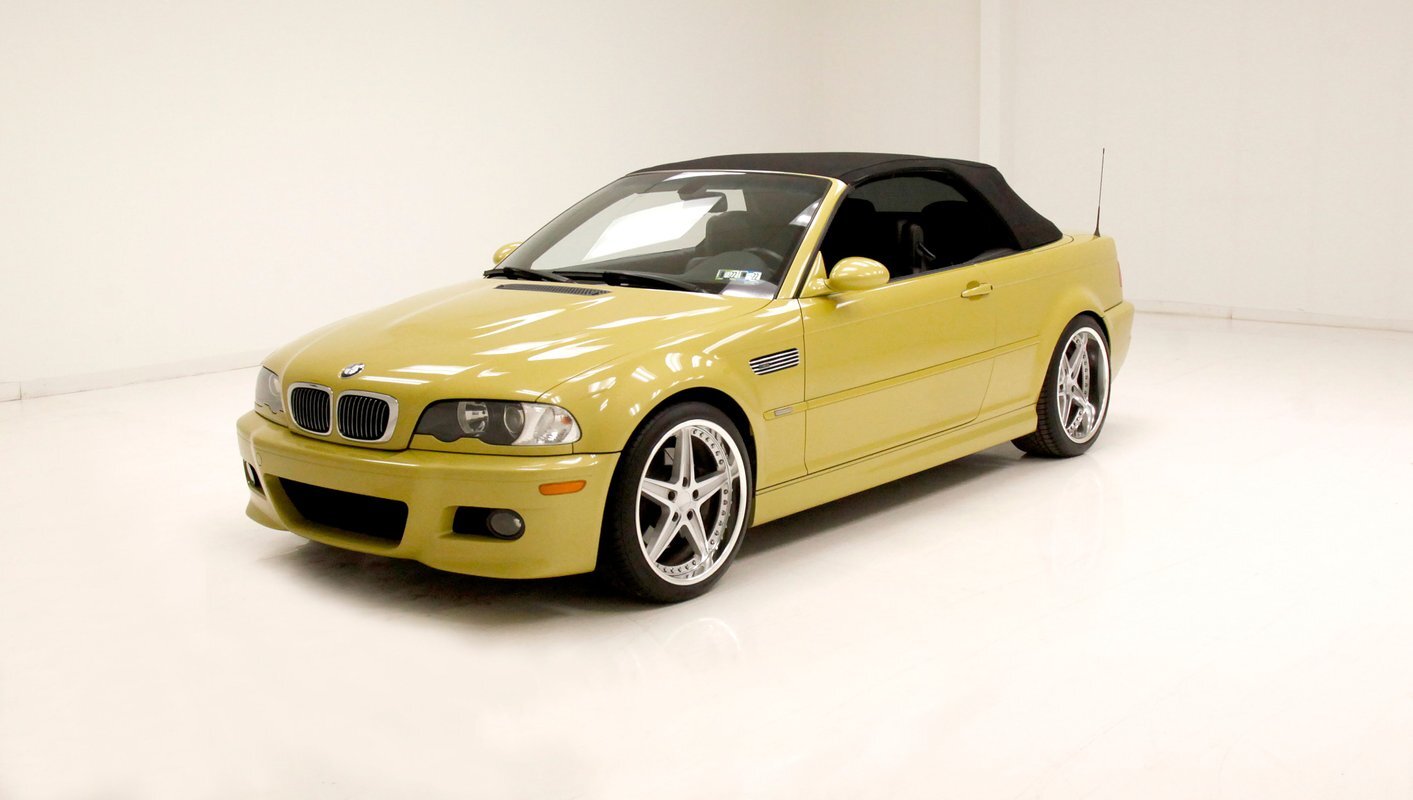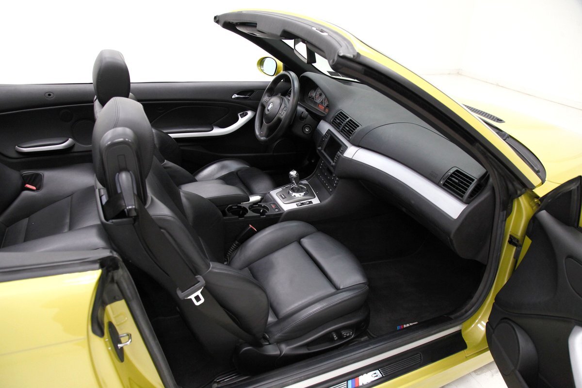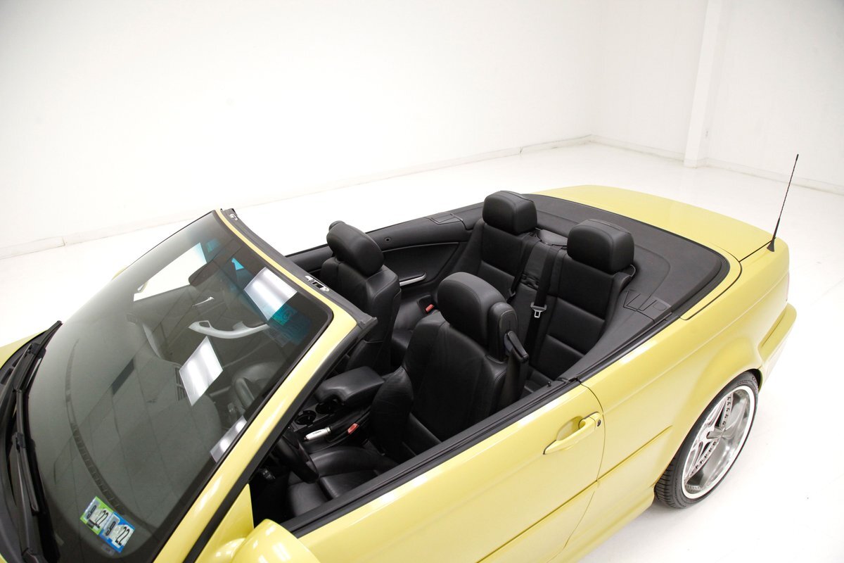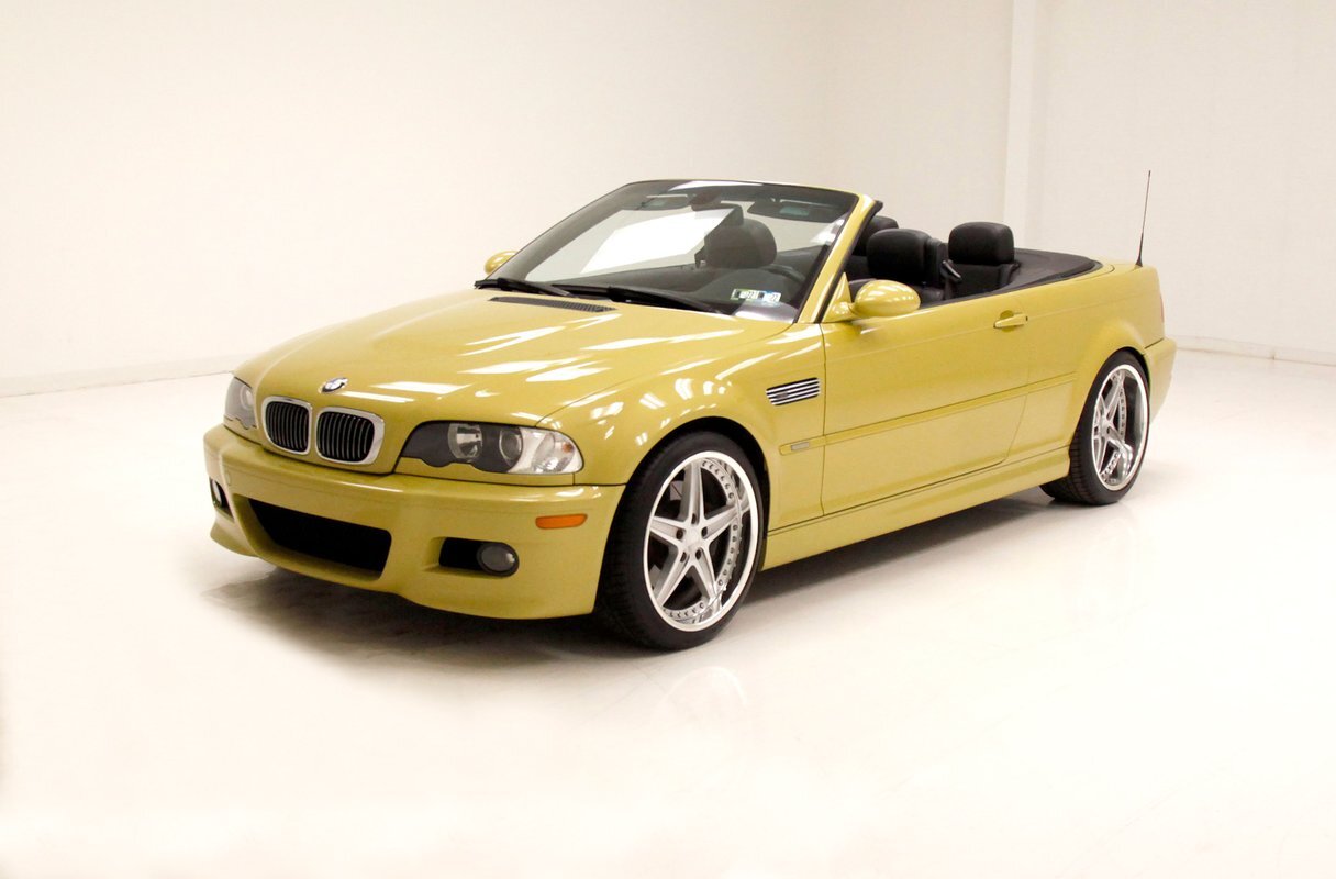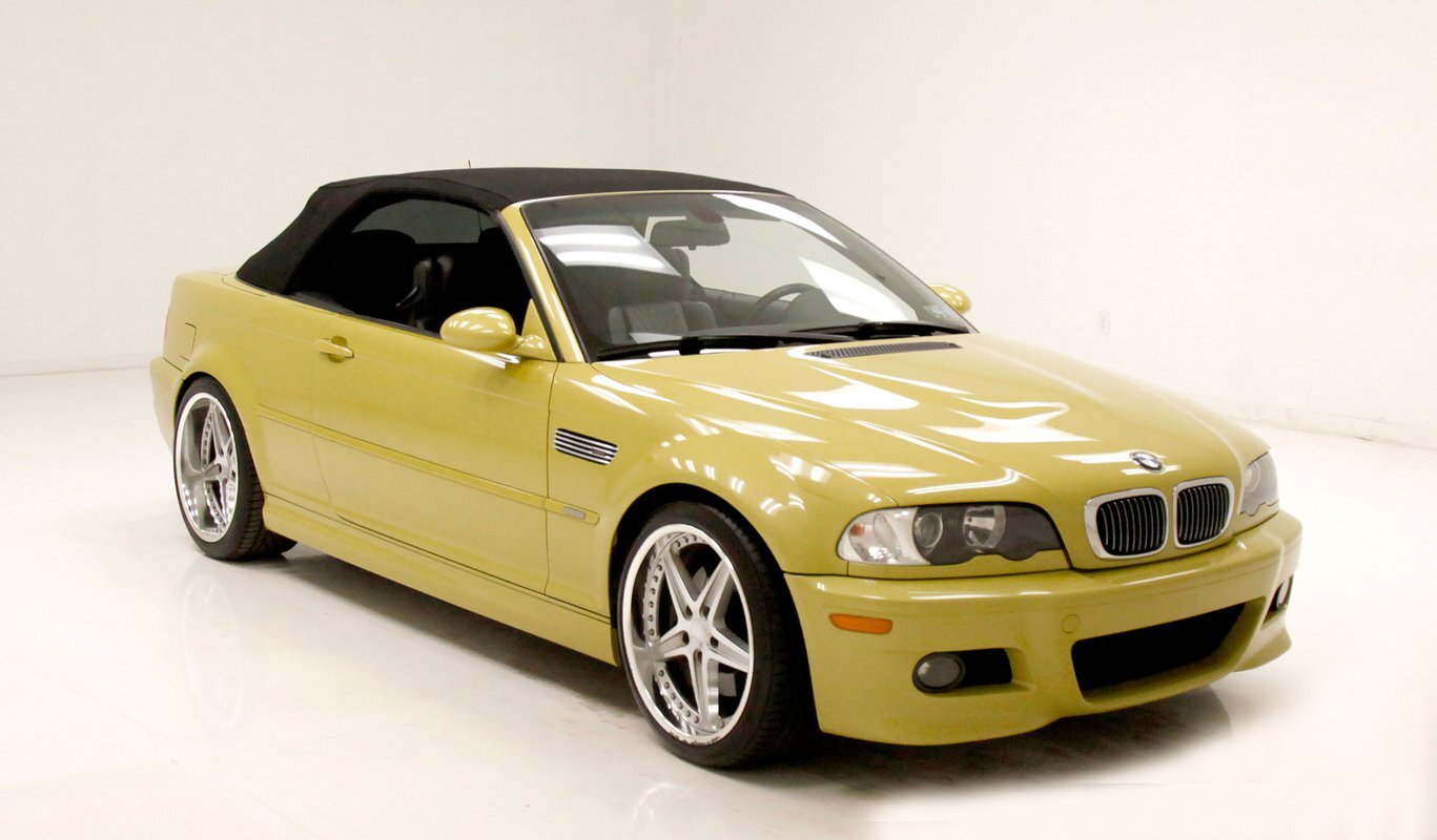 For consignment, a 2004 BMW M3 convertible. It is shown in a somewhat rare Phoenix Yellow, black canvas top, and black leather interior. 19 inch G Craft Superstar wheels add to the "look" and there are just a few minor faults on the body, which remains in overall excellent condition.