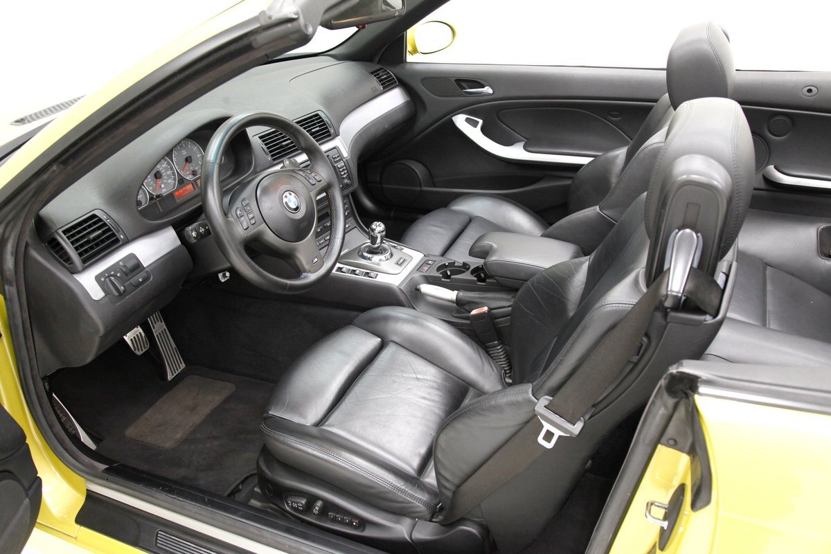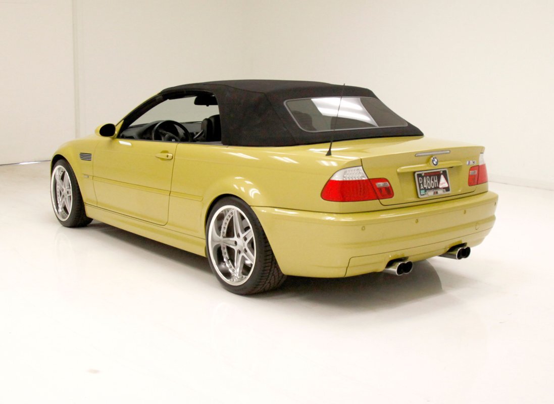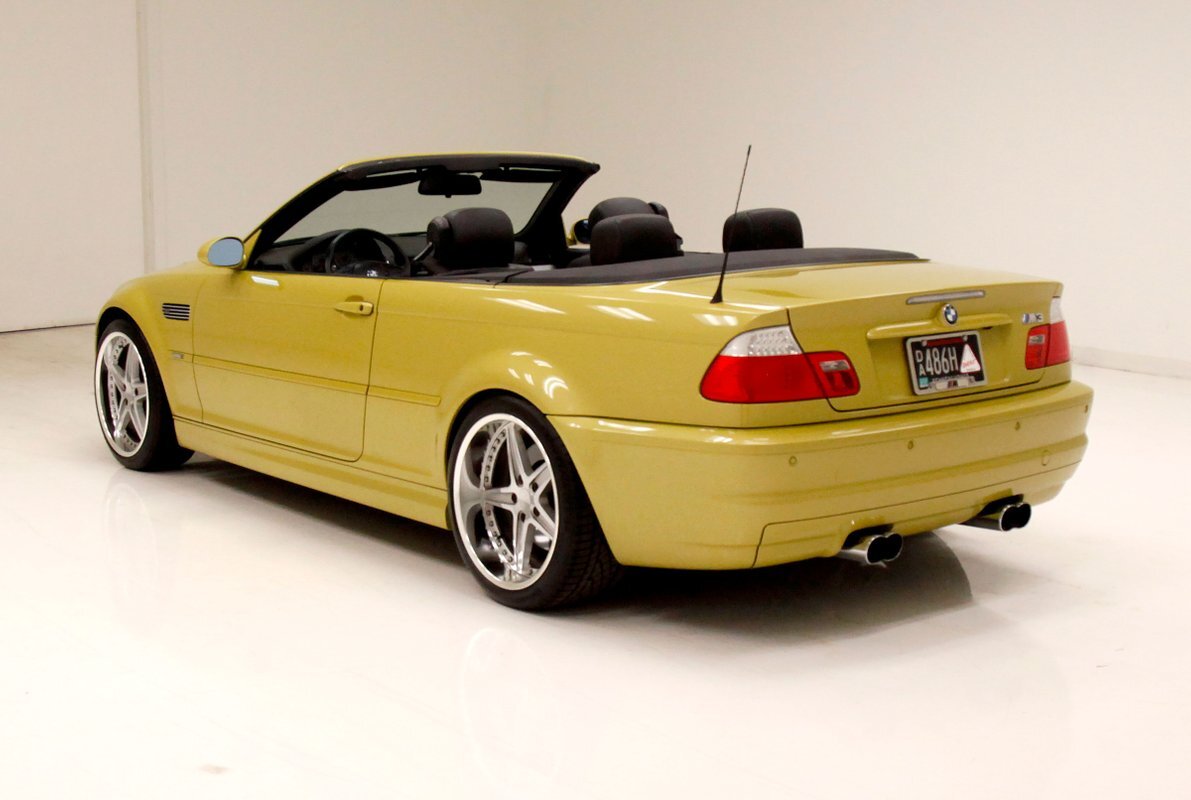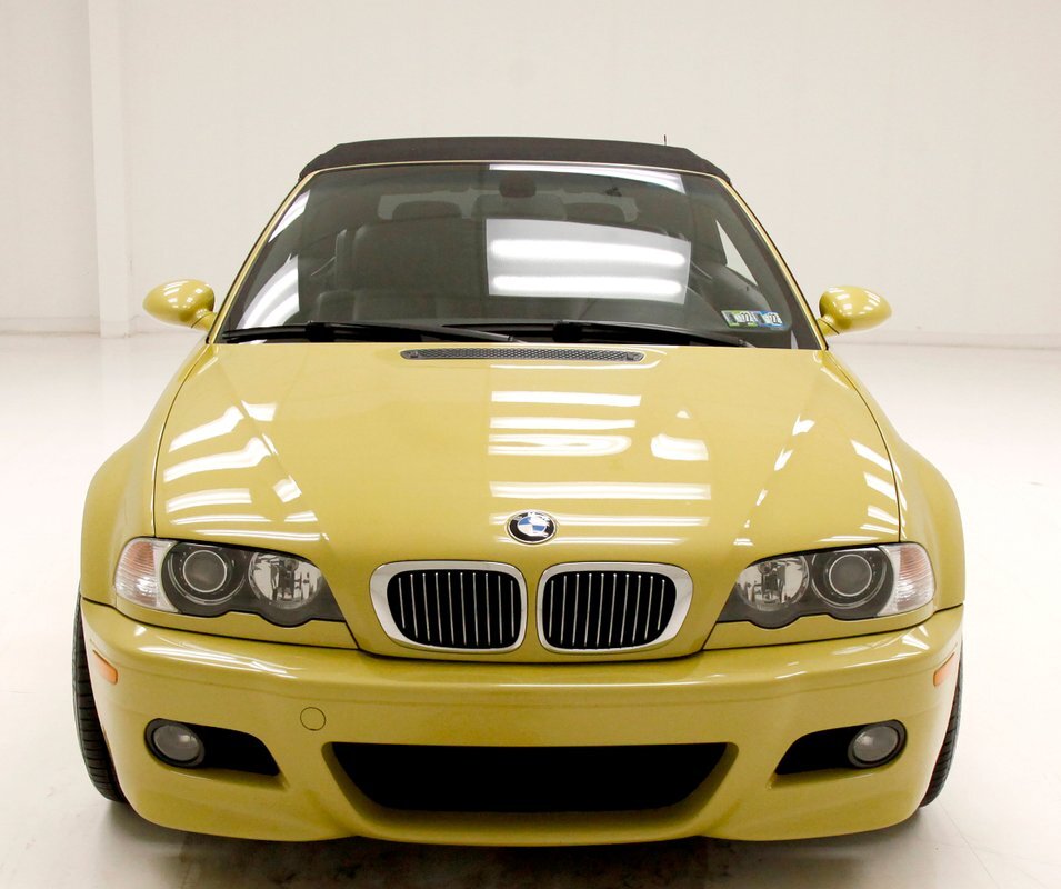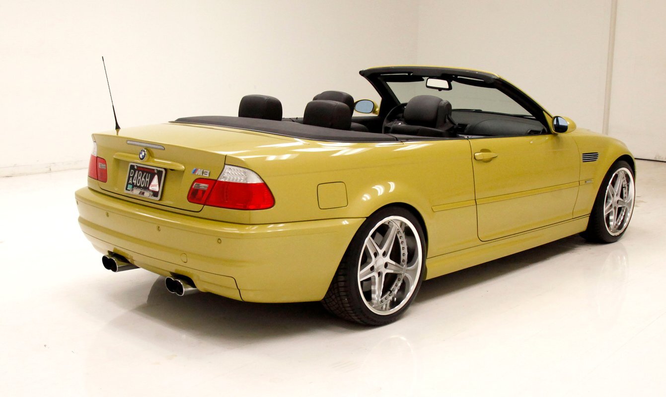 For consignment, a 2004 BMW M3 convertible. It is shown in a somewhat rare Phoenix Yellow, black canvas top, and black leather interior. 19 inch G Craft Superstar wheels add to the "look" and there are just a few minor faults on the body, which remains in overall excellent condition.