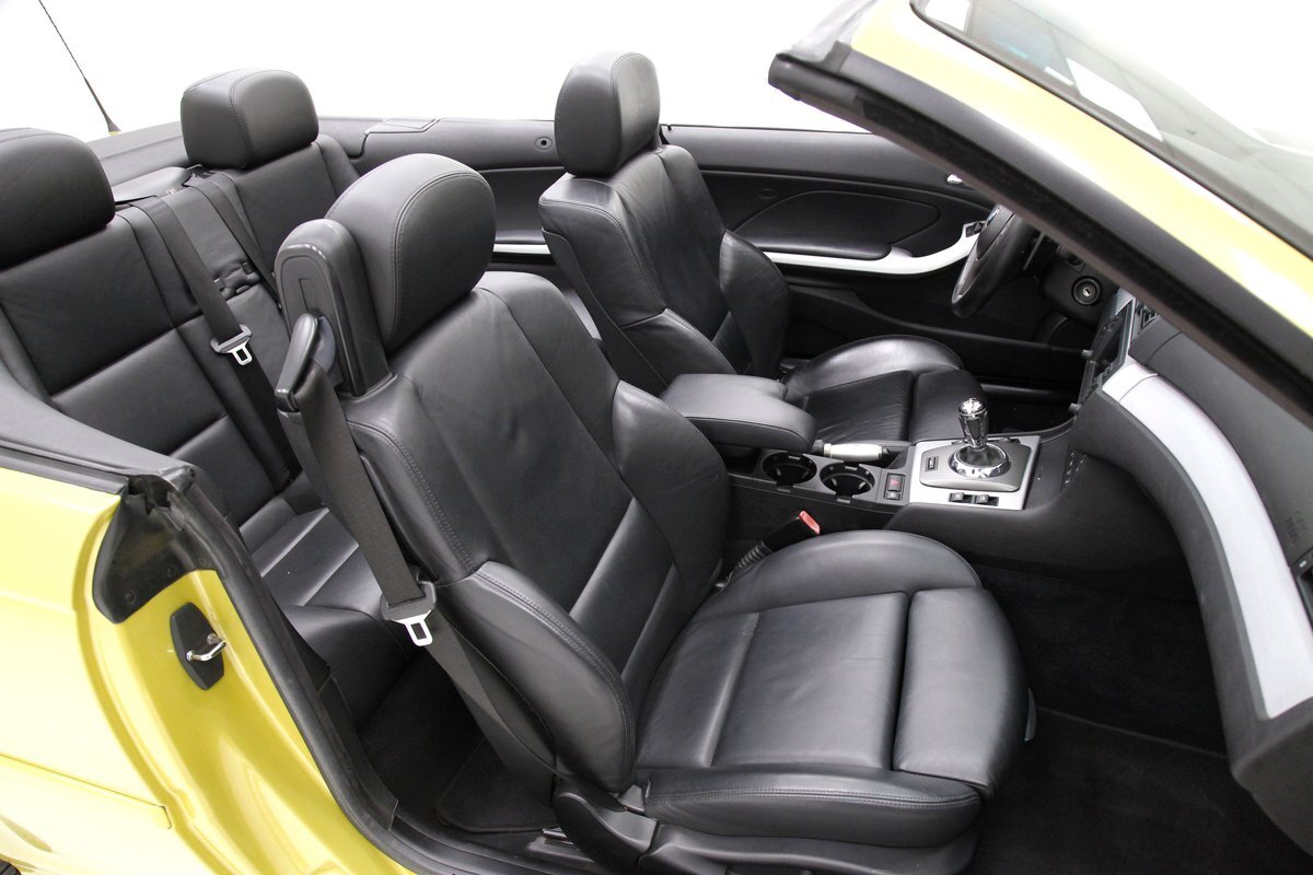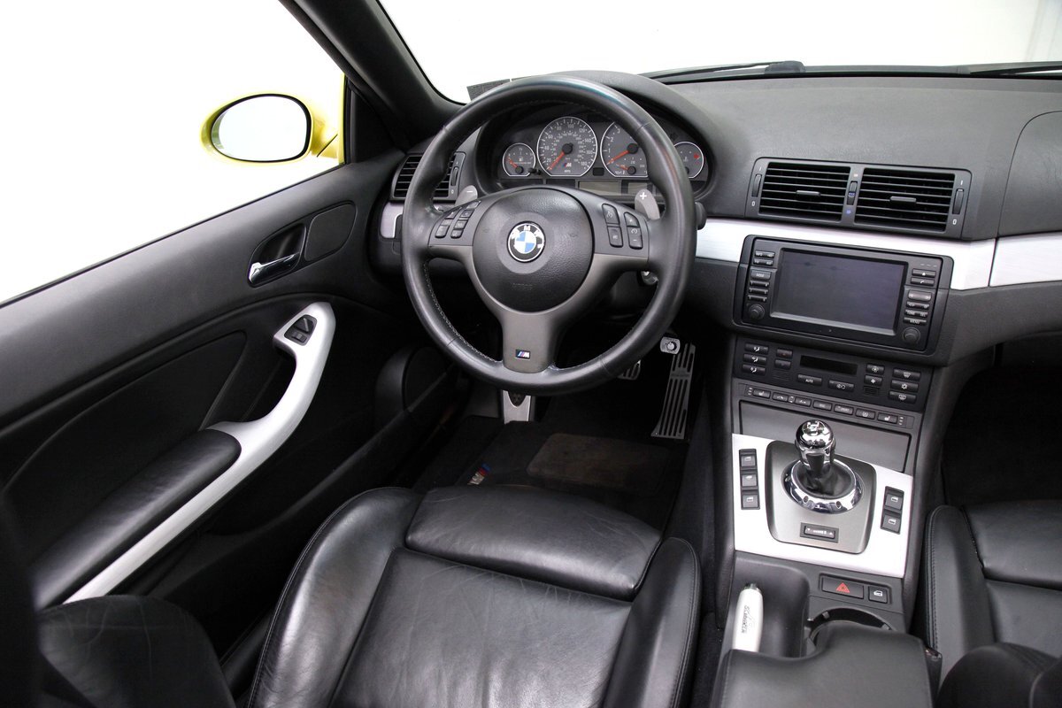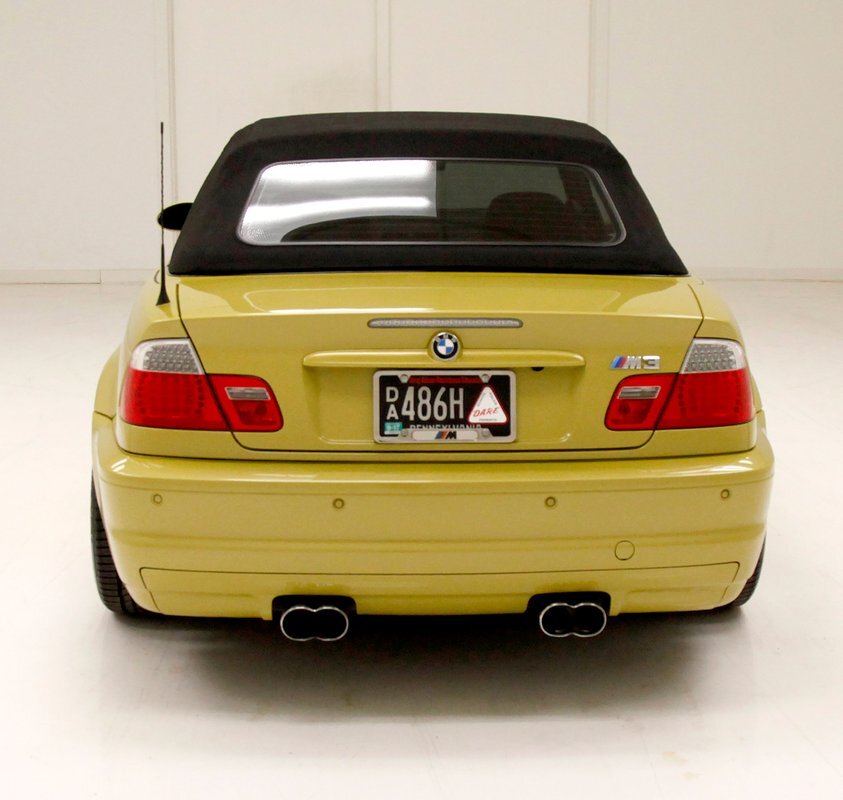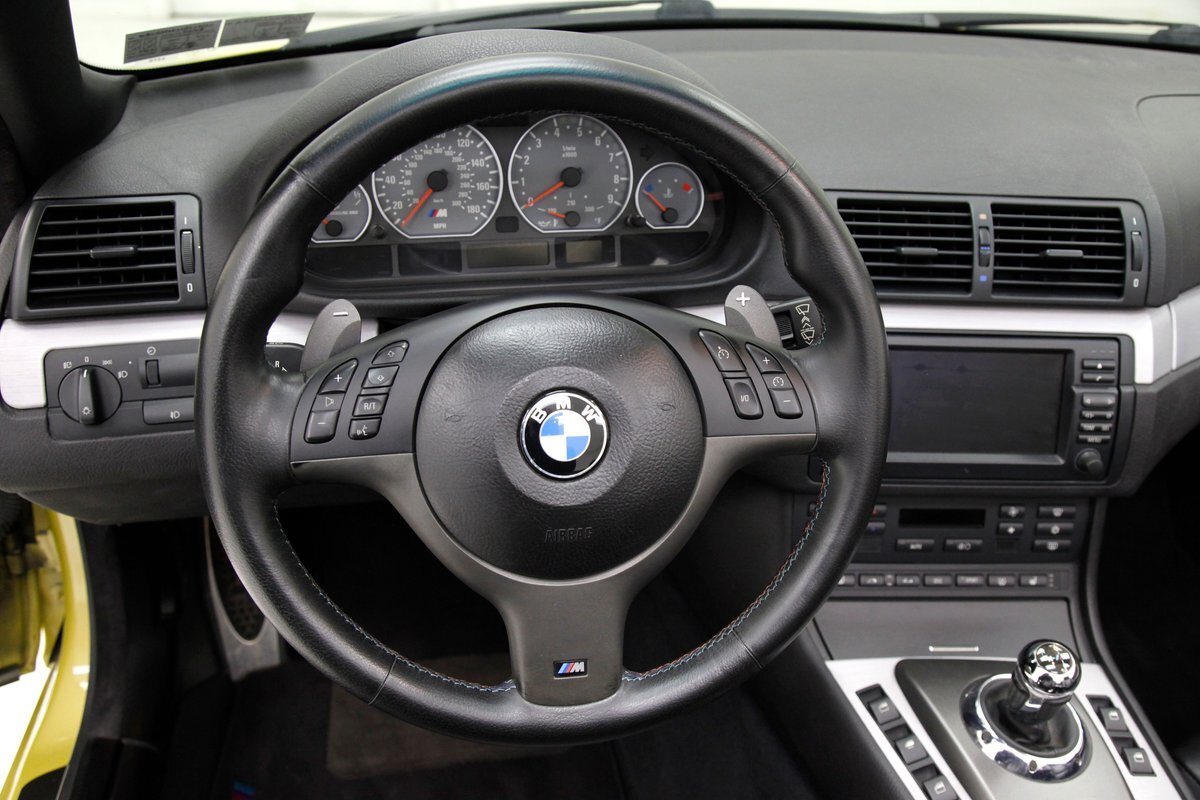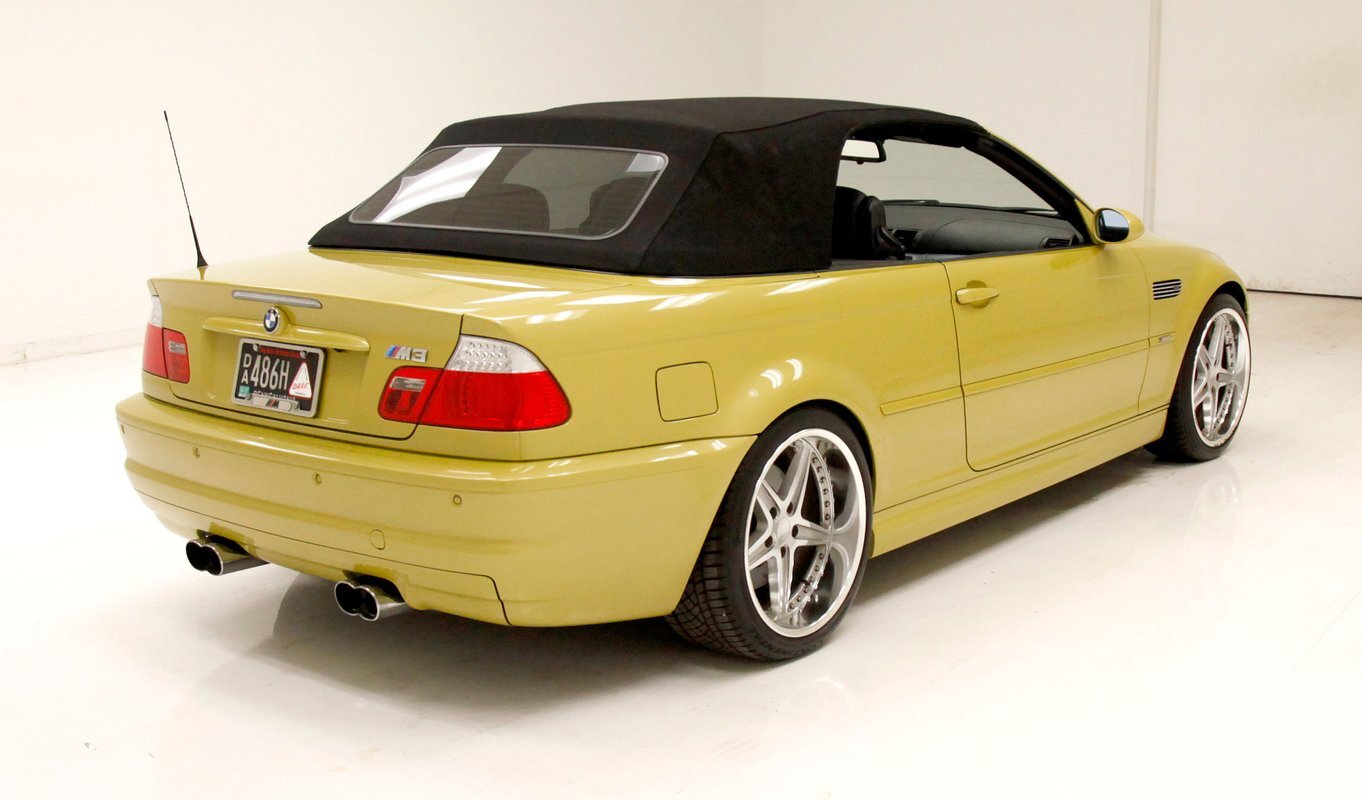For consignment, a 2004 BMW M3 convertible. It is shown in a somewhat rare Phoenix Yellow, black canvas top, and black leather interior. 19 inch G Craft Superstar wheels add to the "look" and there are just a few minor faults on the body, which remains in overall excellent condition.