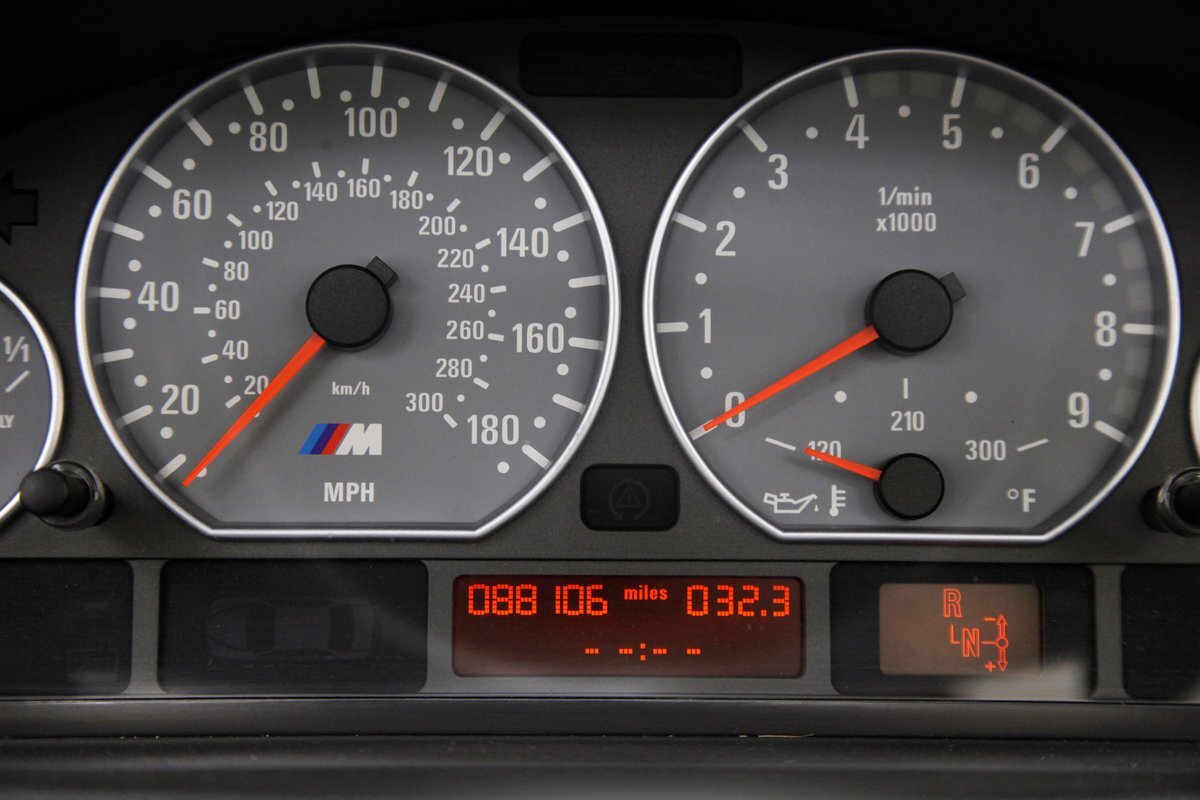 Under the hood is the factory 3.2 liter DOHC Inline 6 cylinder. It has EFI, and a 6-speed semi-automatic transmission SMG type. The rear axle weighs in at 3.64 gear ratio.