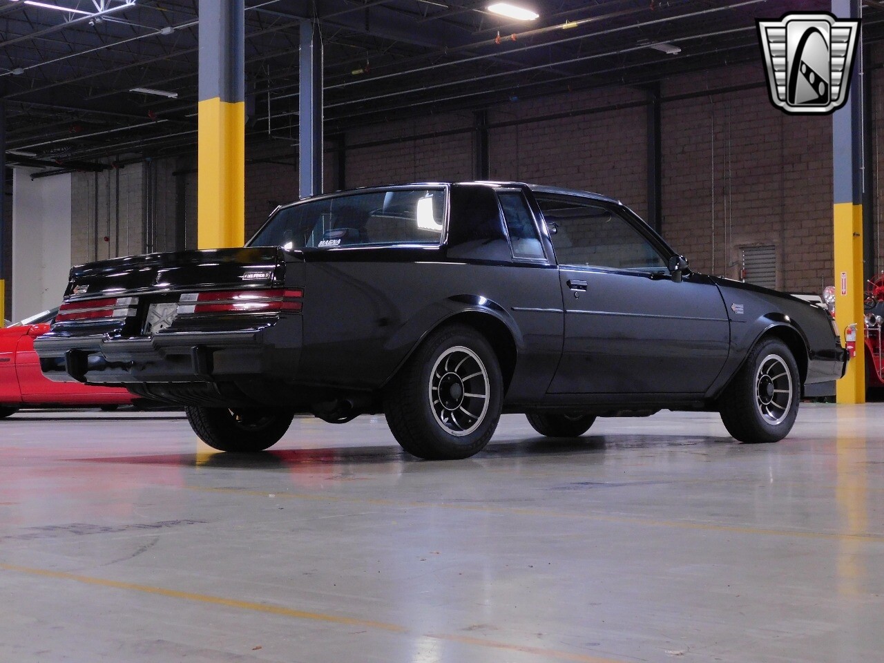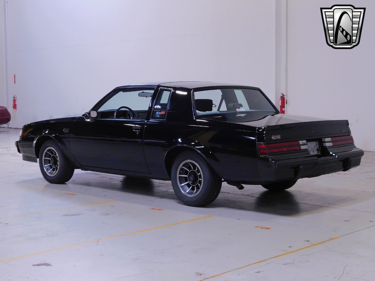 Introducing the 1987 Buick Regal Grand National, a classic icon of American automotive engineering. This particular model boasts a sleek black exterior that exudes timeless elegance and a sense of power. The interior is equally impressive, featuring a comfortable and stylish gray cloth finish that complements the exterior beautifully. Under the hood, you'll find a robust V6 engine paired with an automatic transmission, delivering a smooth and responsive driving experience.