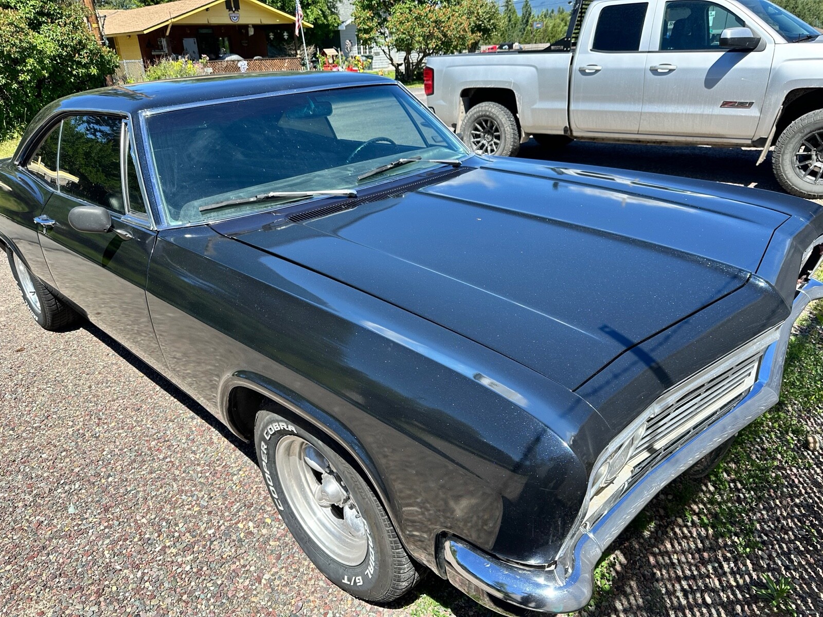 Blue numbers matching 1966 impala coupe with a factory 4 speed manual. Front bench seats hard top.