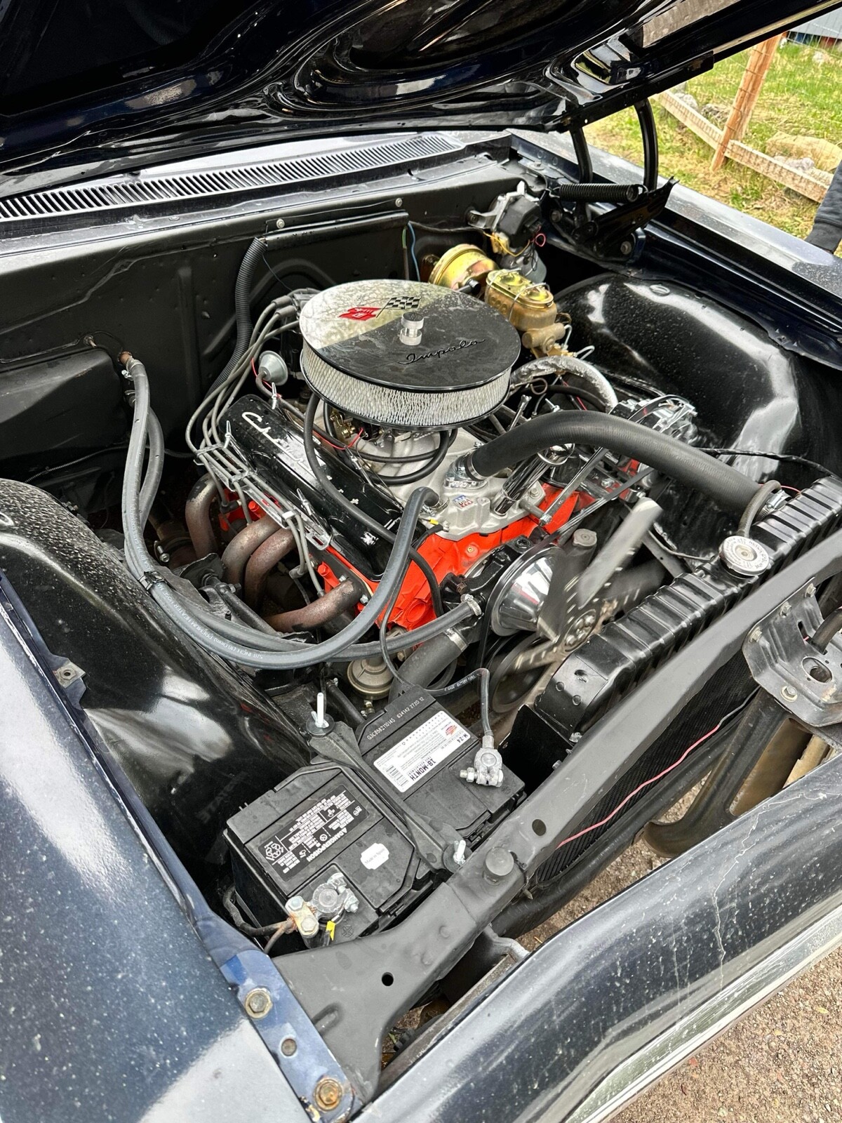 Numbers matching 1966 impala coupe with a factory manual! Engine just passed its 1k miles after the rebuild with a few nice upgrades like better cam, larger carb, and headers. I’m the 3rd owner of the vehicle, previous owner bought it from his parents in highschool. Car had a full frame off restoration the last 23 years. Interior is done in amazing condition. All judges work, all lights work. Car is wrapped currently in a dark navy blue metallic color, done by the previous owner. He completely sanded it down underneath so it is ready for paint just need to remove the wrap if you so choose, but the wrap looks amazing.Vehicle Details