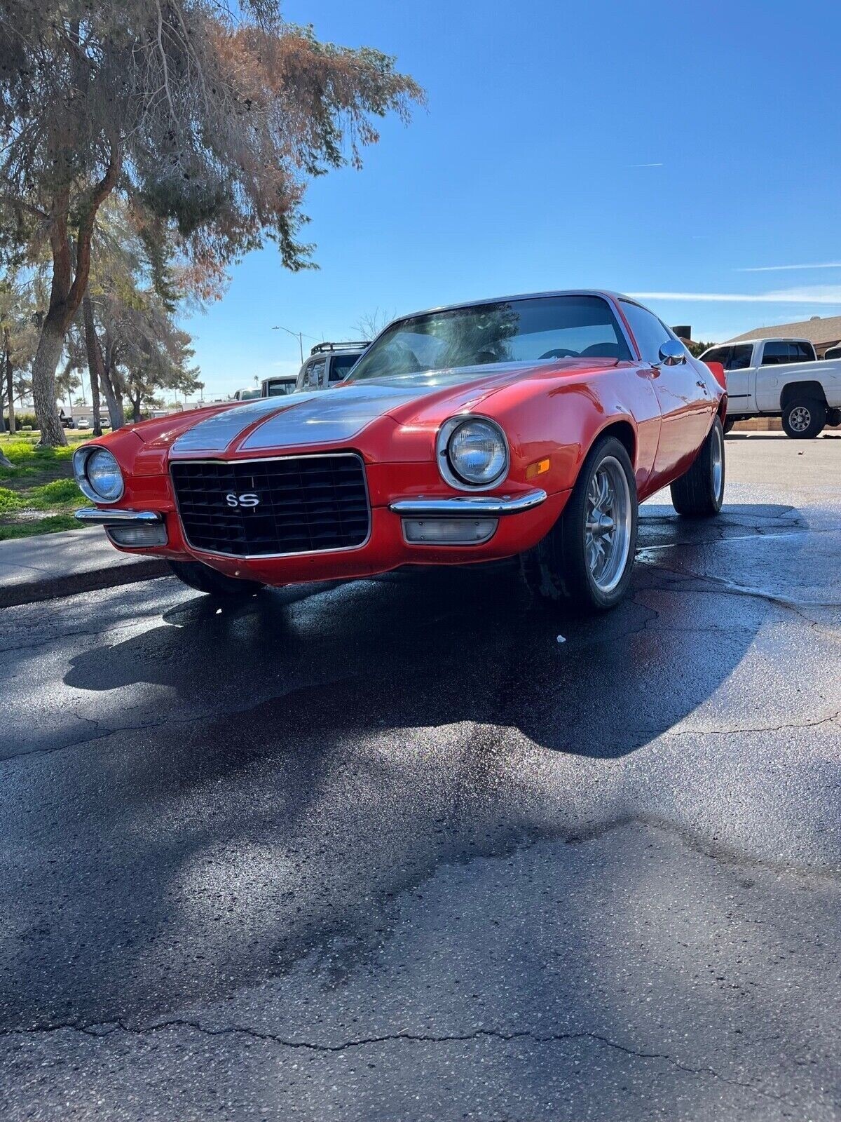 1972 Camaro 350 ci, automatic, AC car, super cold vintage air, runs and drives great , car was originally a 4 speed car ,clutch pedals still in car.bery solid car no bondo, the car originally from New Mexico, underneath very solid see photos, trunk, floors, all solid, paint is old bit in great shape, I have done my best to provide accurate photos of the paint chips missing and small passenger side front dent under marker light from hitting a parking curb while parking overall this is a nice daily driver , you can drive this anywhere so bid to win and come drive it home!!! No reserve so it will be sold at the end of this auction!!