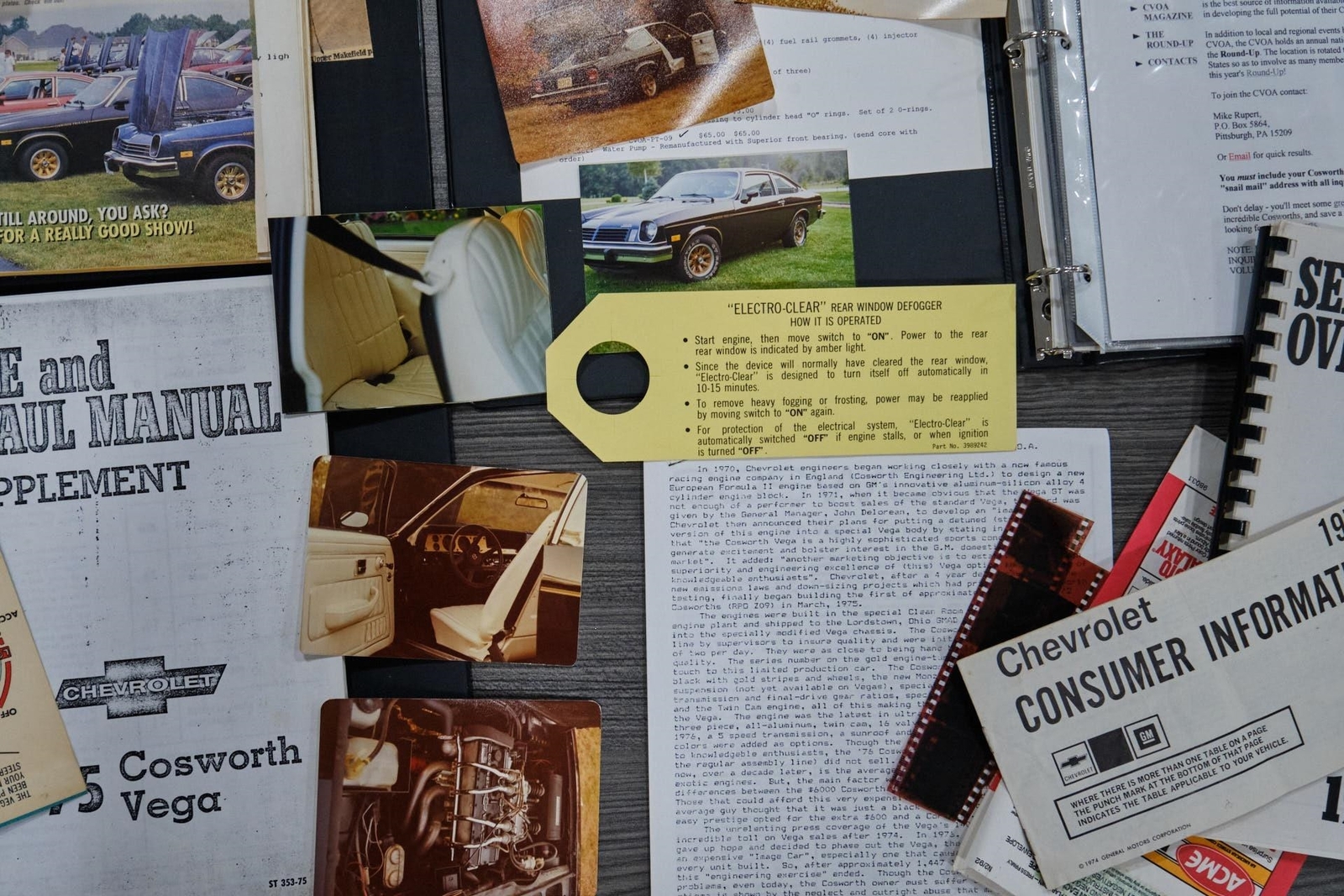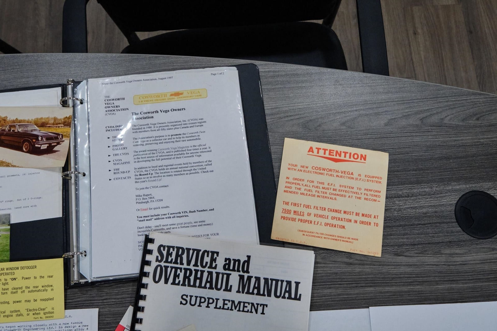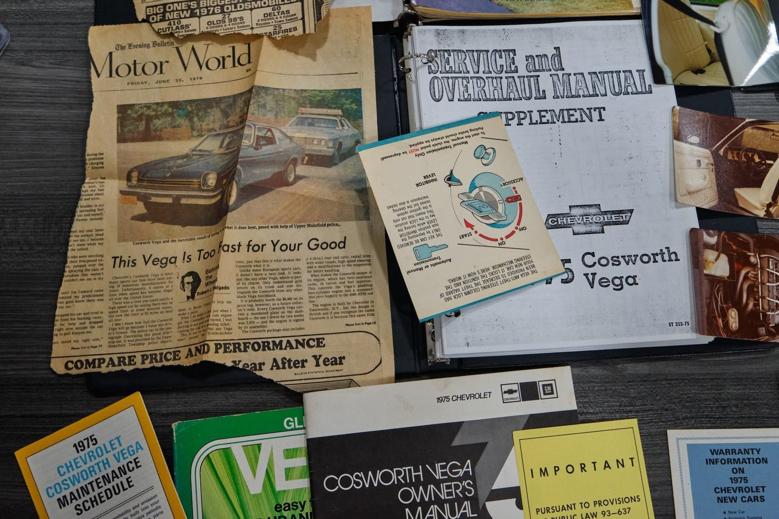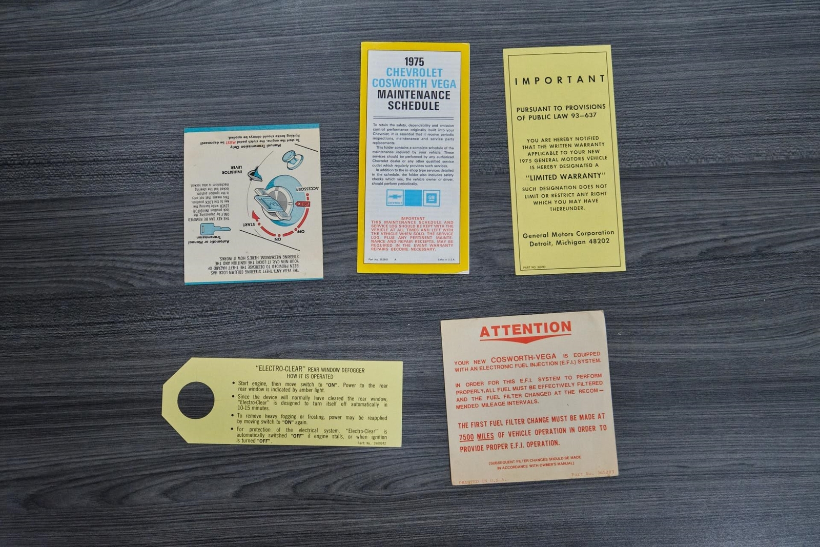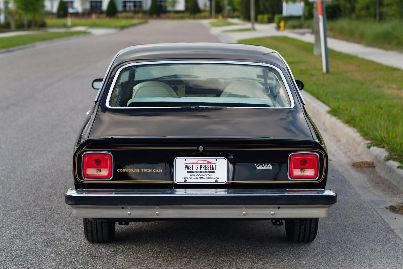 1975 Chevrolet Vega Cosworth Twin Cam. 1 Owner, 45,415 Original Miles, Very Rare Only 3,508 Vega Cosworth’s were made in 1975 & 1976. This one even more rare as it has the original window sticker, the original owner's manual, original Title and tons of other documentation. Plus, One Owner and only 45,415 original miles. When the compact Chevrolet Vega was launched in 1971, Chevrolet General Manager John Z DeLorean directed his staff to develop a high-performance variant, much as he had created the Pontiac GTO out of the Le Mans in 1964. The result was outstanding. Kind of like a Yanko something. Heavy duty front and rear suspension. ZO9 Cosworth Vega All-aluminum inline-four 122 cu in (1,999 cc) engine, with Cosworth Engineering an English Company designed DOHC 16 valve cylinder head. Twin overhead cams. Reported 110 hp (190 kW) and Bendix electronic fuel injection. Header. Heavy duty radiator. HD battery. '75s were available in one color only - black with gold pinstriping. The car has had 1 repaint and presents very well. Factory sport door mirrors. Bumper guards. All the chrome and trim is in great condition. Hatchback with plenty of rear space for an economy sized car. Adjustable 2-way driver's seat. Factory ordered White vinyl interior which gives this car an amazing color combination. The 1975 model was available with a standard Black interior. Bucket seats. Floor shifter. Same Gold dash gauge panel pattern as the Pontiac Firebird. In Dash Tachometer. Black carpeting. White door panels. Rear window defrost. Shoulder harness seat belts. All in very nice condition. Four-speed manual transmission. Gold pseudo-Minilite wheels with NEW MICHELIN tires. While we do our best to provide the highest quality muscle cars with an honest and reliable description and realize the importance of transparency when selling vehicles. That being said, we have not built, modified, changed or personally owned this vehicle. Whether this vehicle is consigned or owned by Past & Present Motor Cars we do not know the vehicles complete history since new. We want to be clear and try to answer any questions our customers might have prior to purchasing. Additionally, we not only welcome but we encourage 3rd party independent inspections. Please inquire prior to purchase to make sure the advertised vehicle has not already been sold. We list our vehicles on multiple websites and a vehicle can sell at any time. If a customer chooses to purchase sight unseen (many of our customers choose this option) the customer accepts the vehicle AS IS and WHERE IS and understands we cannot address concerns after purchase. For this reason, it's important all concerns are addressed prior to purchase. We make every effort to present accurate and reliable information, but use of this information is voluntary, and should only be deemed reliable after an independent review of its accuracy, completeness, and timeliness. It is the sole responsibility of the customer to verify the existence of options, accessories and the vehicle condition before time of sale. Financing is Available with low rates and Vehicle Shipping is available from our Showroom to your Garage. A Classic Car Warranty is Available for Purchase from a 3rd Party. Please speak to our Sales Associate or Company Representative for more information. Our team is working and available anytime by Phone or Text for your convenience at 407-559-7759. Thank you for your interest!