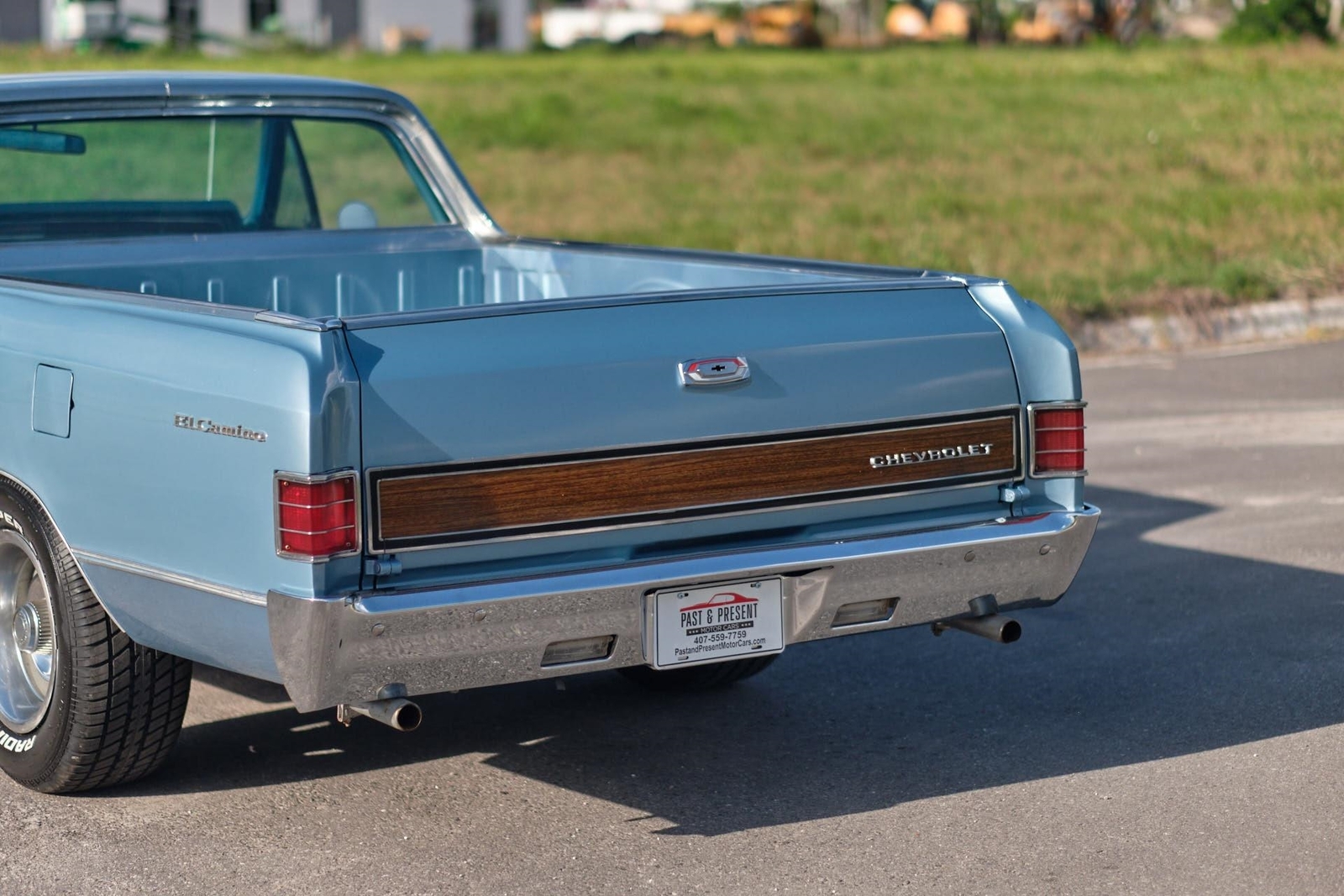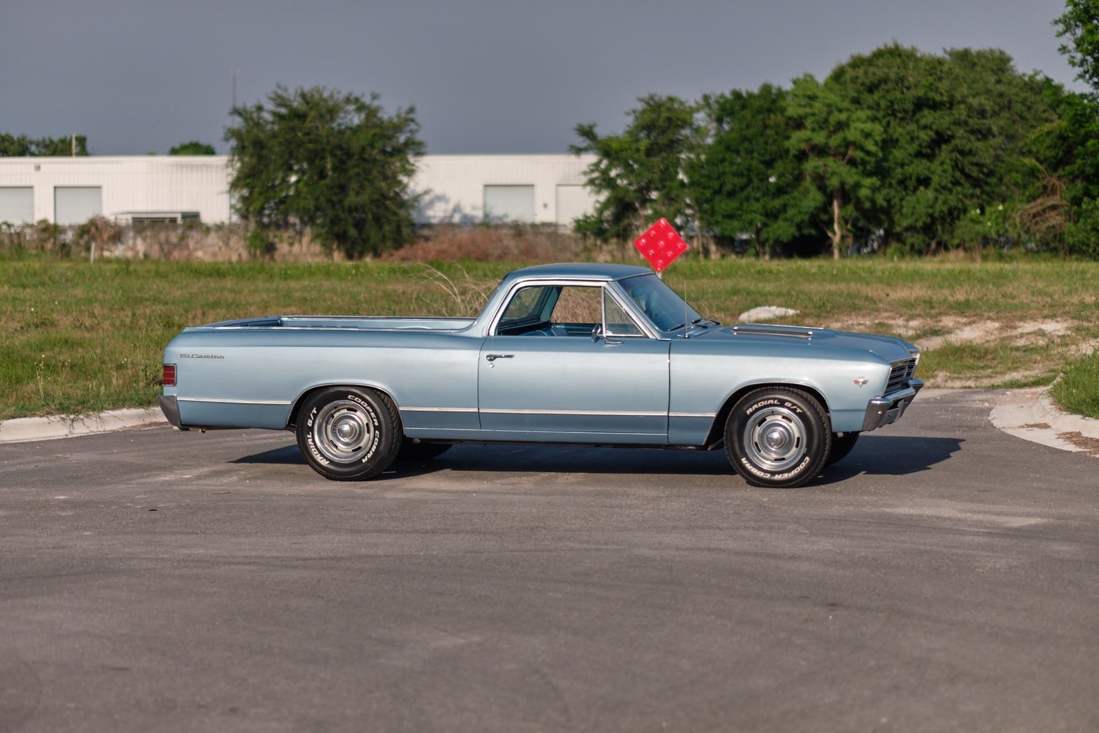 1967 Chevrolet EL Camino, 350 V8 Engine, Automatic Transmission, Factory AC (Not currently cold), Nantucket Blue with Blue Bench Seat Interior, Newer Driver Quality Paint. The compact Falcon-based Ranchero alone in the car-truck market from 1961 to 1963, until Chevrolet introduced the downsized El Camino in 64 and 65 then went long coke bottle styling in 66 and 67, based on the mid-sized A-body Chevelle. Featuring the Malibu’s brightwork and stylish full wheel covers. This truck has the traditional Rallye wheels with chrome beauty rings and caps and a nom built 350 small block. In 67 the straight 6, 283 and 327 where the only non-big block engine options. although the 350 was developed in and released in 1967 it was only available in the Camaro because Chevy wanted the Camaro to beat the Ford Mustang. 1968 The 350 was available in the Corvettes and Impalas and in 1969 the 350 was released to all Chevy pony cars full-size cars and trucks. Factory AC car please see note above. Beautiful, ribbed aluminum valve covers, chrome air cleaner. Dual plane aluminum high-rise intake manifold with a four-barrel carburetor. Cast iron exhaust manifolds. Factory stock vacuum advance distributor with remote coil. One of my favorite features the two-piece steel fan shroud which is one of the easiest designed shrouds ever created to remove from a vehicle. Very nice rectangular rib stitched horizontal door panels with 4 stainless rectangle accent pieces. Beautiful, simulated wood grain ignition headlight dash strip. Vinyl dash pad in excellent condition. Looks, runs and drives great! Don’t miss out on this chance to own one of Chevrolets most iconic and innovative models. While we do our best to provide the highest quality muscle cars with an honest and reliable description and realize the importance of transparency when selling vehicles. That being said, we have not built, modified, changed or personally owned this vehicle. Whether this vehicle is consigned or owned by Past & Present Motor Cars we do not know the vehicles complete history since new. We want to be clear and try to answer any questions our customers might have prior to purchasing. Additionally, we not only welcome but we encourage 3rd party independent inspections. Please inquire prior to purchase to make sure the advertised vehicle has not already been sold. We list our vehicles on multiple websites and a vehicle can sell at any time. If a customer chooses to purchase sight unseen (many of our customers choose this option) the customer accepts the vehicle AS IS and WHERE IS and understands we cannot address concerns after purchase. For this reason, it's important all concerns are addressed prior to purchase. We make every effort to present accurate and reliable information, but use of this information is voluntary, and should only be deemed reliable after an independent review of its accuracy, completeness, and timeliness. It is the sole responsibility of the customer to verify the existence of options, accessories and the vehicle condition before time of sale. Financing is Available with low rates and Vehicle Shipping is available from our Showroom to your Garage. A Classic Car Warranty is Available for Purchase from a 3rd Party. Please speak to our Sales Associate or Company Representative for more information. Our team is working and available anytime by Phone or Text for your convenience at 407-559-7759. Thank you for your interest!
