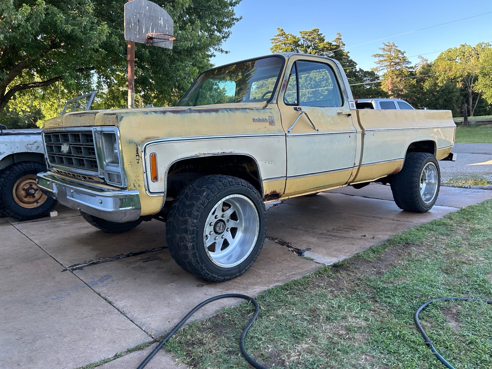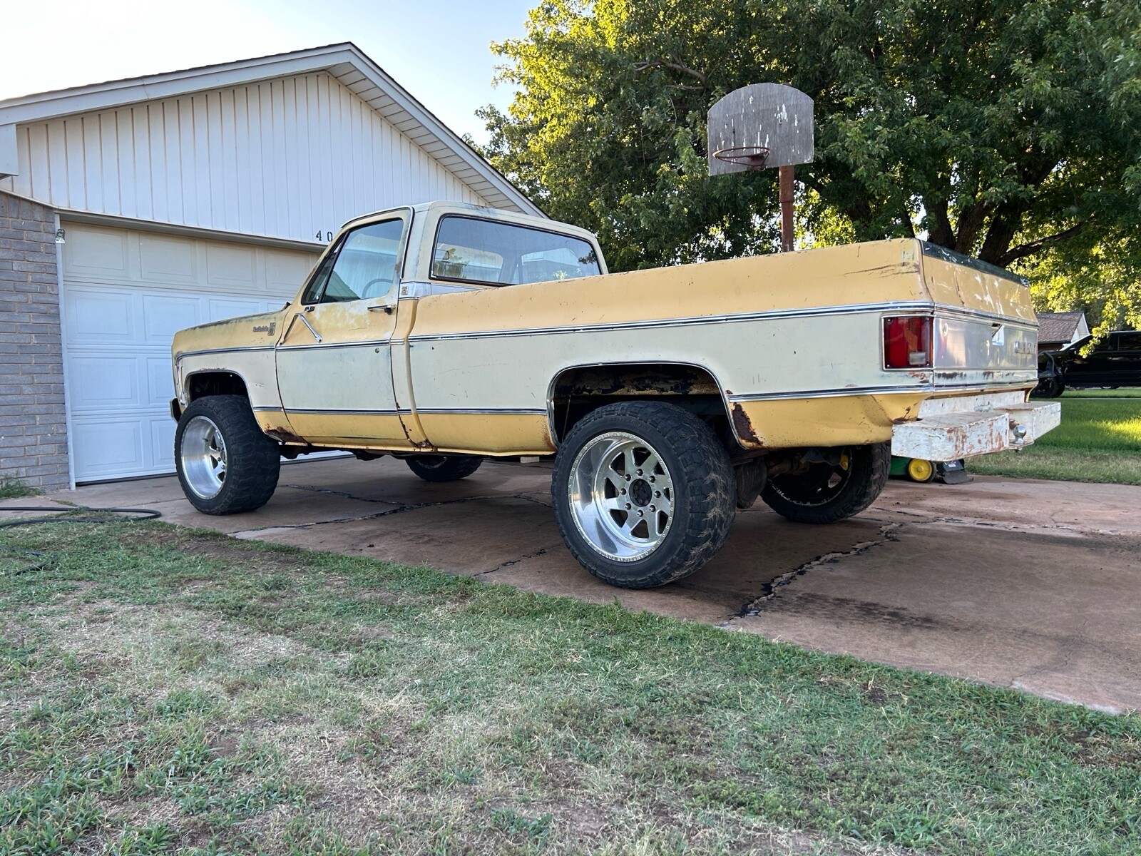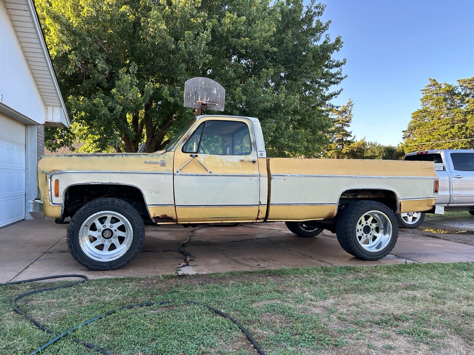 Started out as a 2wd silverado, I put it on a 78 K20 frame. Sitting on 20x12 American Forces. It has a beautifully running 60s pre-emissions 4 bolt main 350 sbc with a turbo 400 transmission. I replaced the drivers side floor of the cab but it needs some love on the other side. It’s still completely usable. It’s nowhere near perfect, but the patina was so beautiful, I only replaced what needed it. I have a drivers side inner fender now,LMC was out of passenger ones when I ordered. It’s a great truck and with a little work, it would be a show stopper.. gets unbelievable amounts of attention around town! Also have an entire 4 speed swap with a freshly painted and gone through sm465 with np205 transfer case, brand new clutch, flywheel, throw out bearing, clutch fork, pedal assembly and a non tilt, manual steering column. Literally everything to swap. Just message me if you want it and I’ll throw it in for sale price.Vehicle Details