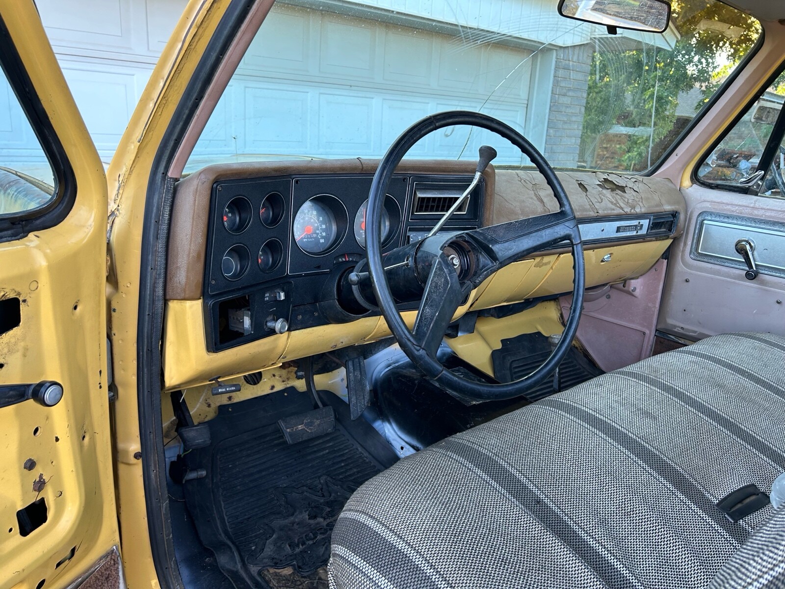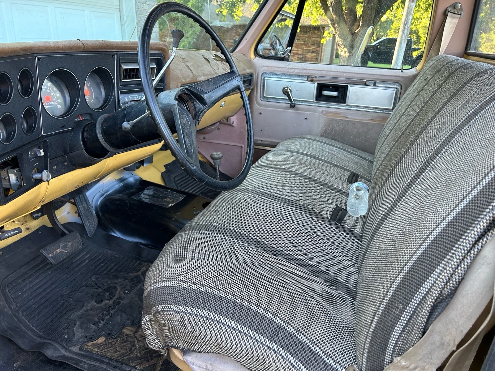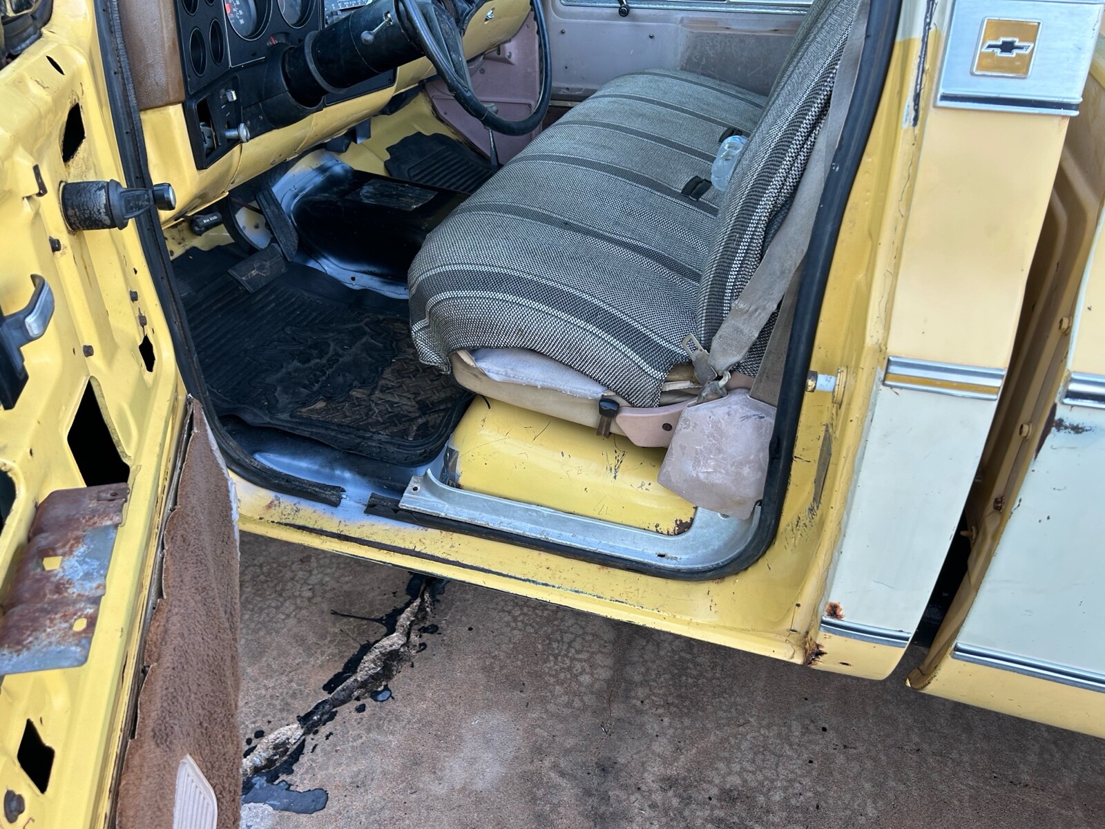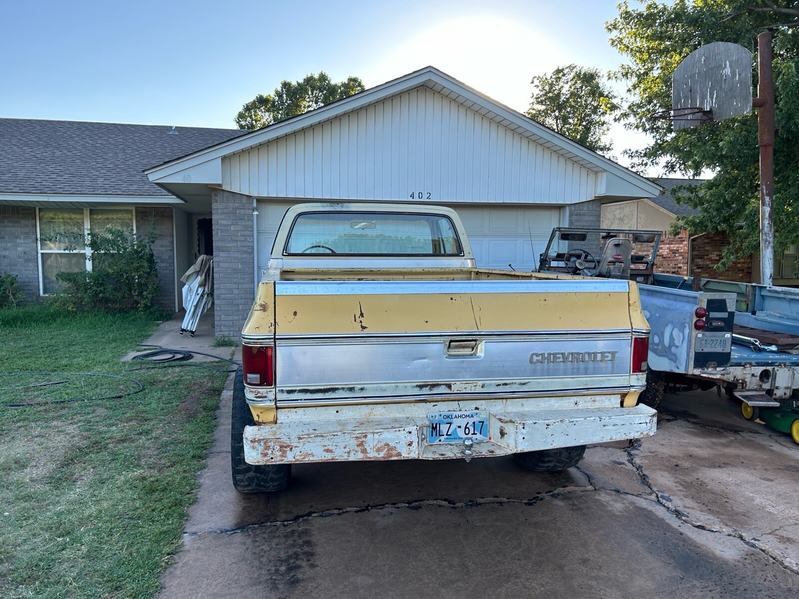 Started out as a 2wd silverado, I put it on a 78 K20 frame. Sitting on 20x12 American Forces. It has a beautifully running 60s pre-emissions 4 bolt main 350 sbc with a turbo 400 transmission. I replaced the drivers side floor of the cab but it needs some love on the other side. It’s still completely usable. It’s nowhere near perfect, but the patina was so beautiful, I only replaced what needed it. I have a drivers side inner fender now,LMC was out of passenger ones when I ordered. It’s a great truck and with a little work, it would be a show stopper.. gets unbelievable amounts of attention around town! Also have an entire 4 speed swap with a freshly painted and gone through sm465 with np205 transfer case, brand new clutch, flywheel, throw out bearing, clutch fork, pedal assembly and a non tilt, manual steering column. Literally everything to swap. Just message me if you want it and I’ll throw it in for sale price.Vehicle Details