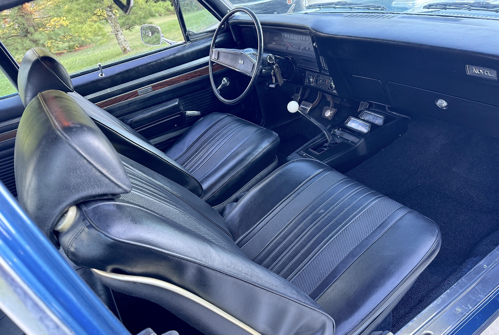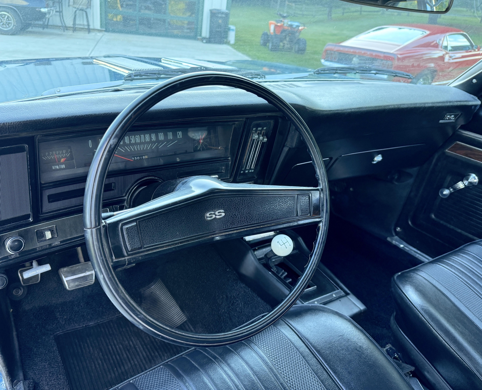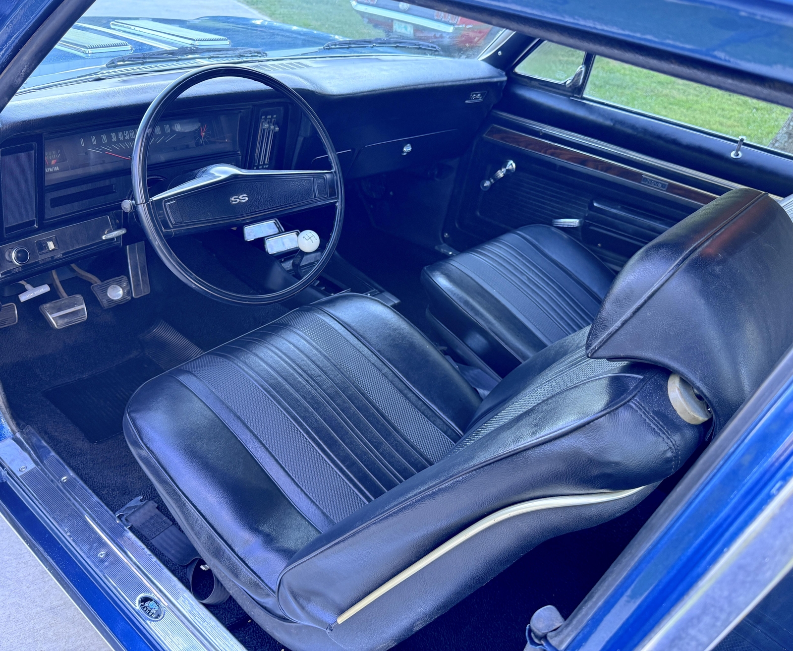 SUPER SHARP AND RARE FULLY DOCUMENTED WITH ORIGINAL SALES INVOICE 1970 NOVA SS L78 396/375HP 4SPD 12 BOLT PDB TACH GAUGES SOLID METAL FACTORY FATHOM BLUE CAR WITH BLACK BUCKETS CONSOLE INTERIOR