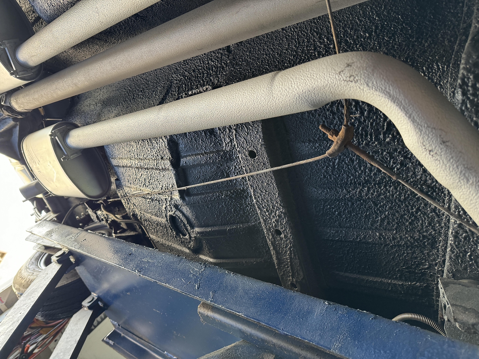 SOLID EXCELLENT UNDERSIDE AND FLOORS…FLOORS STILL RETAIN THERE FACTORY UNDERCOATING