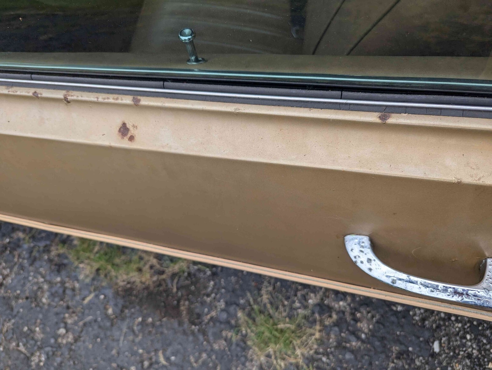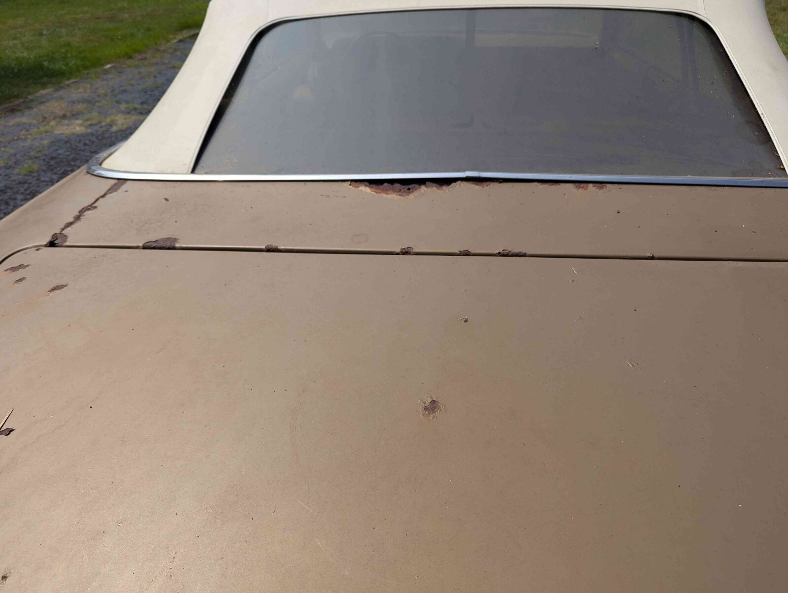 Beautiful head turner for many years at Florida vacation condo. In 1990s car was near perfect and after paint touch up and new carpet a car cover was placed on it. Big mistake! Returning the next year car cover had been soaked from tropical storm even though car was in garage under condo. This caused rust all over body and chrome. Because car has never been driven in snow or salt the undercarriage appears fine.