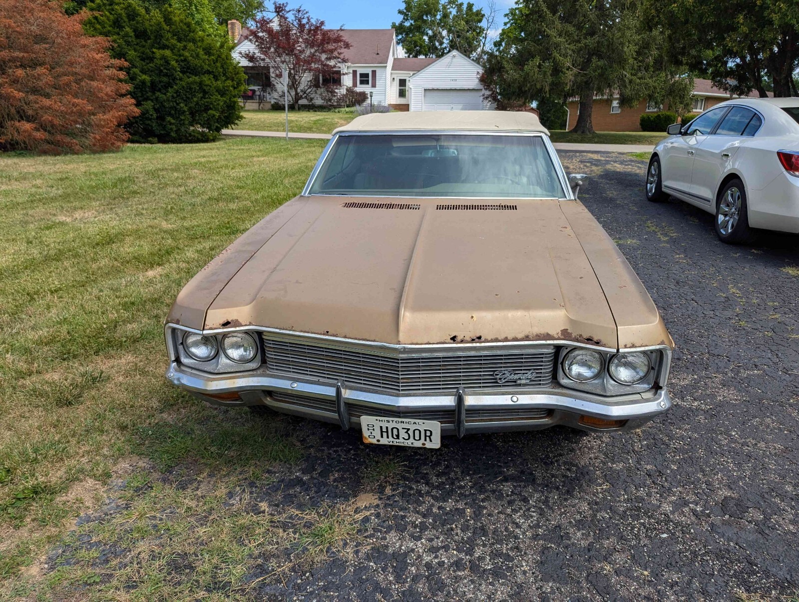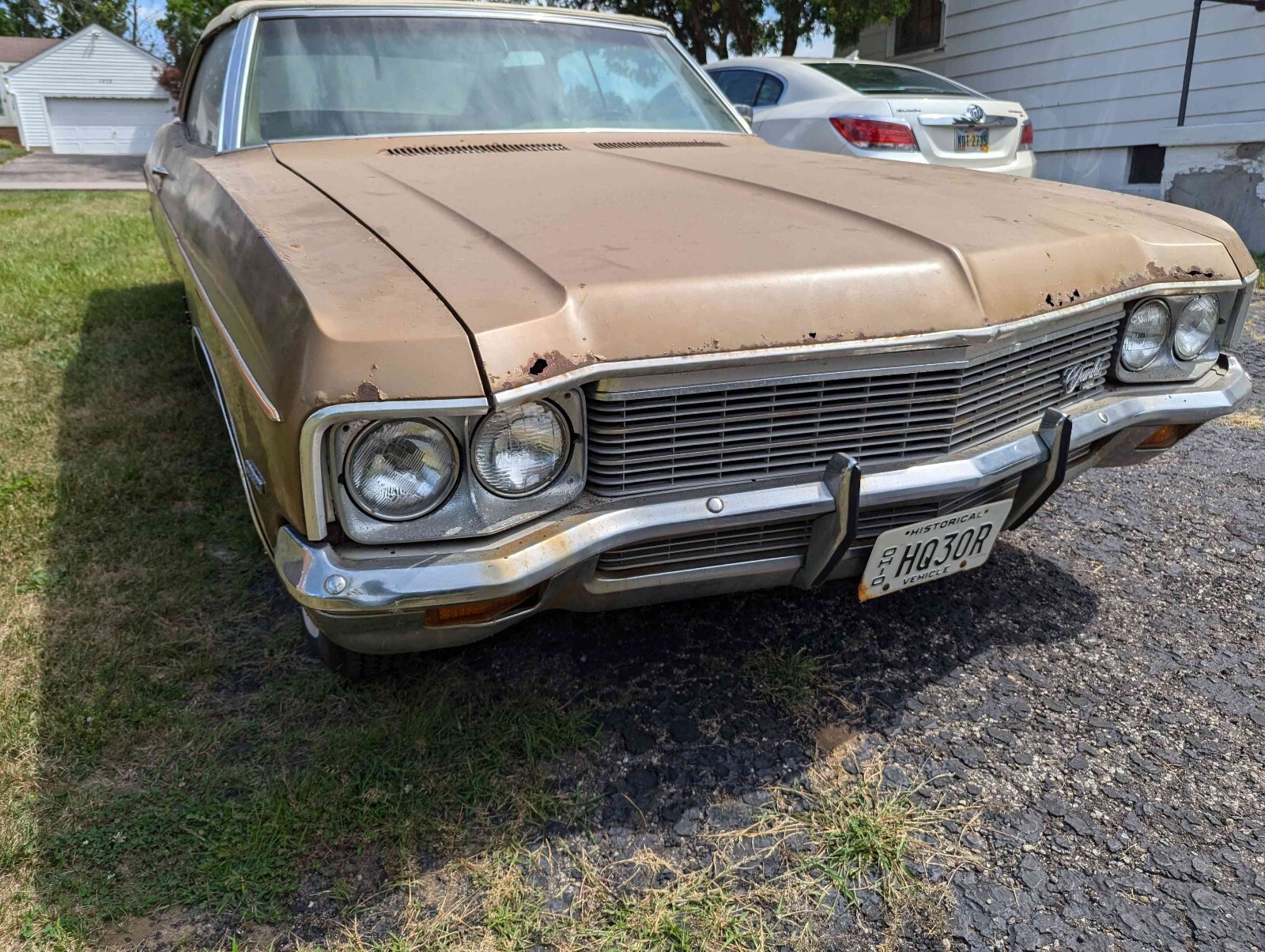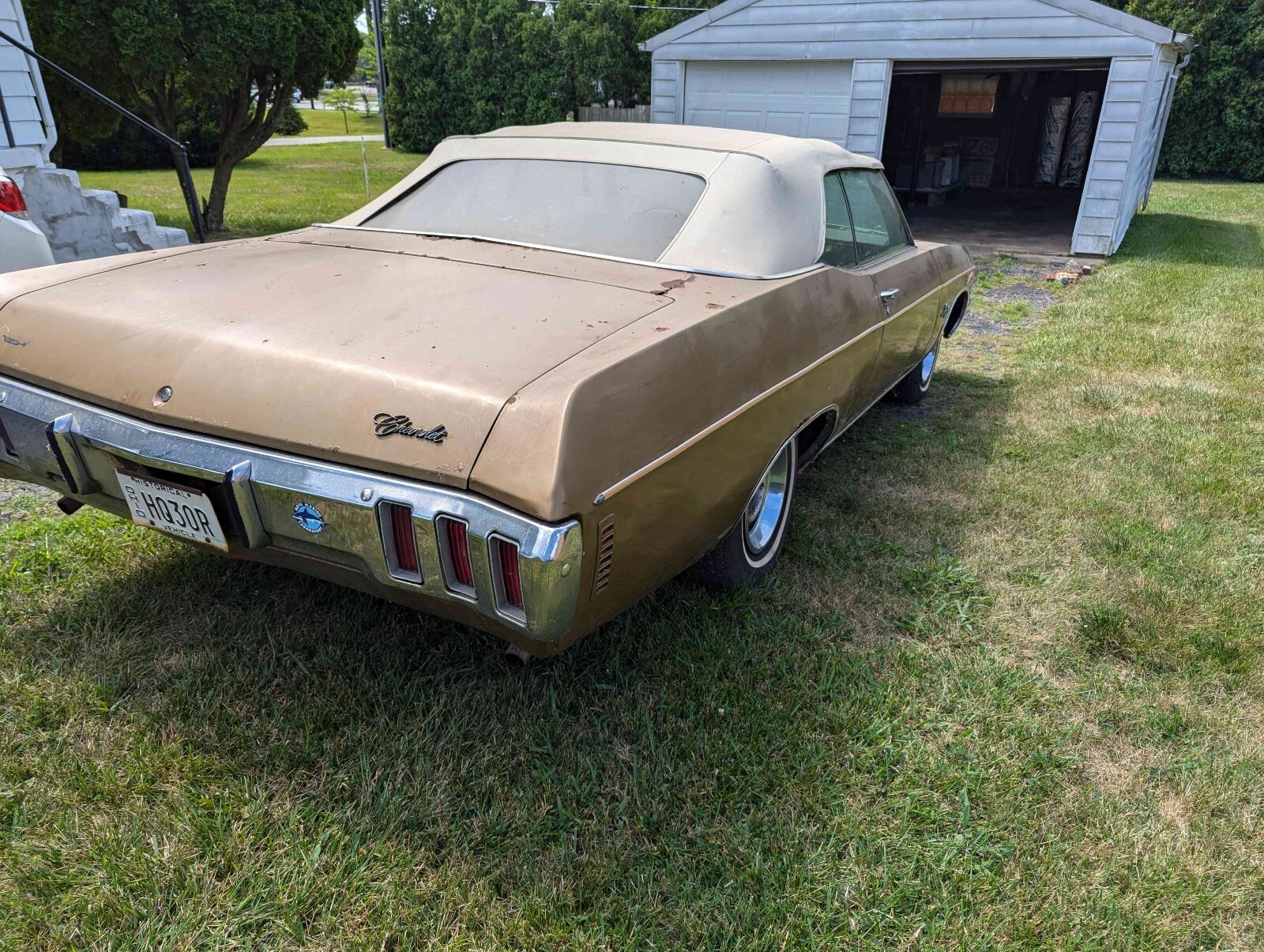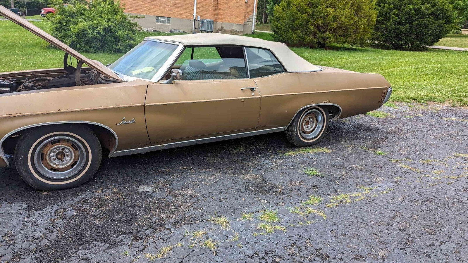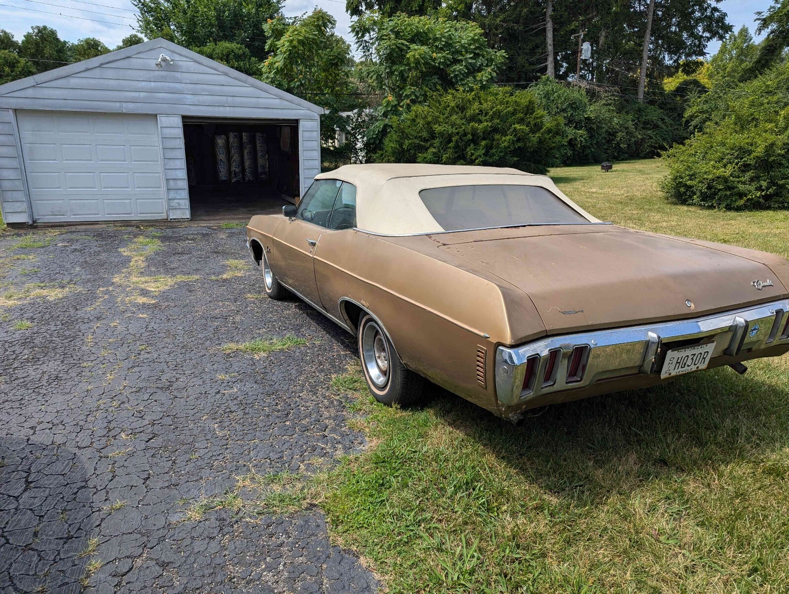 This 1970 Chevrolet Impala convertible was a extremely dependable driver at vacation home for decades. Current owner purchased from original owner over 40 years ago in Largo Florida with 39,000 miles. It was always used at vacation condo in Florida by both owners and only operated couple months each winter. The engine runs smoothly however has not been on road in years. The Gold color and clean title make it a great addition to any car collection. 52,166 original documented miles. If you took the car right now and drove it a thousand miles it wouldn't surprise me. If you went down the street and hit the brakes and they all locked up that wouldn't surprise me either. That's why we're selling it as is and not driving it.Seller's Notes