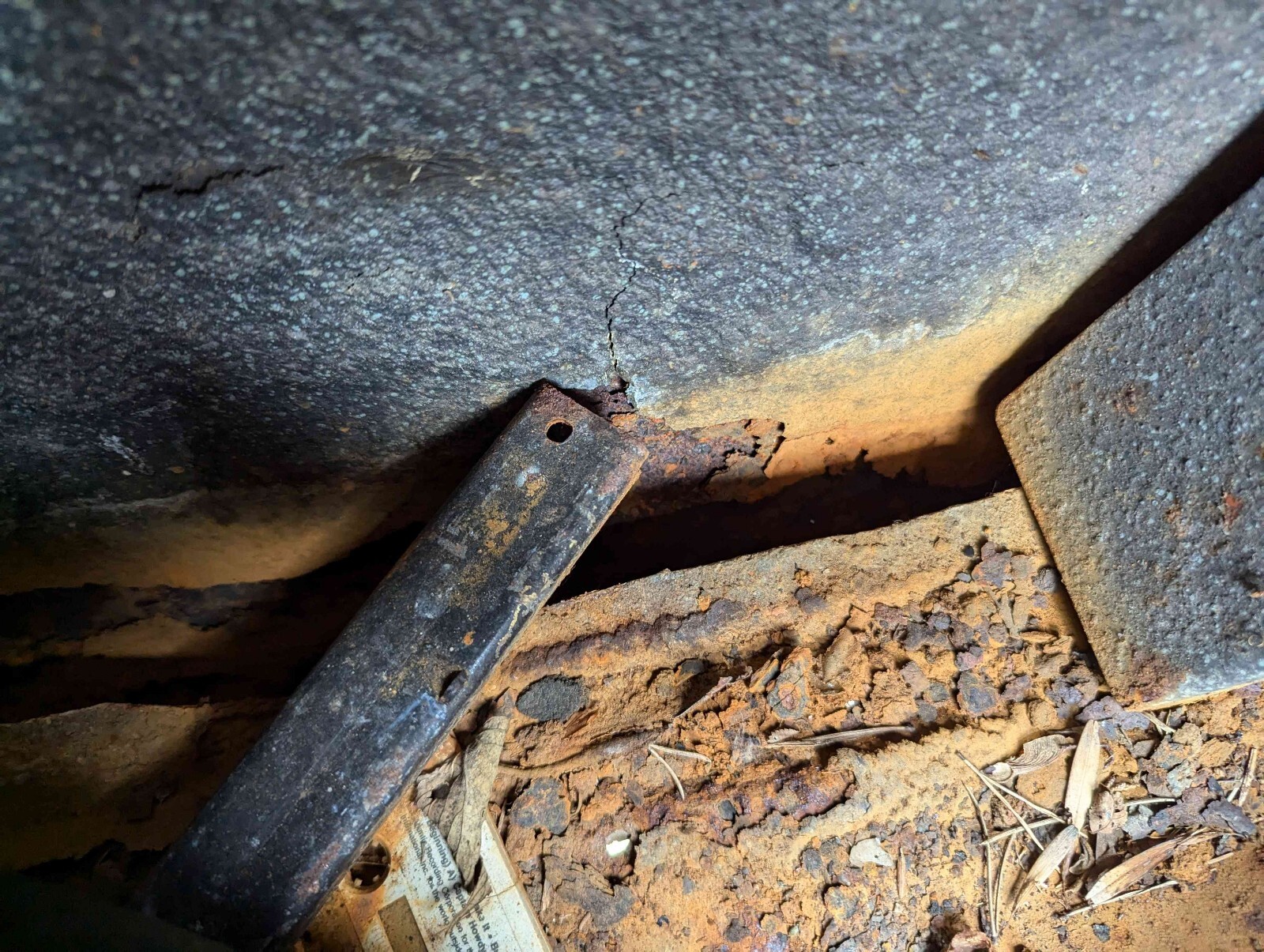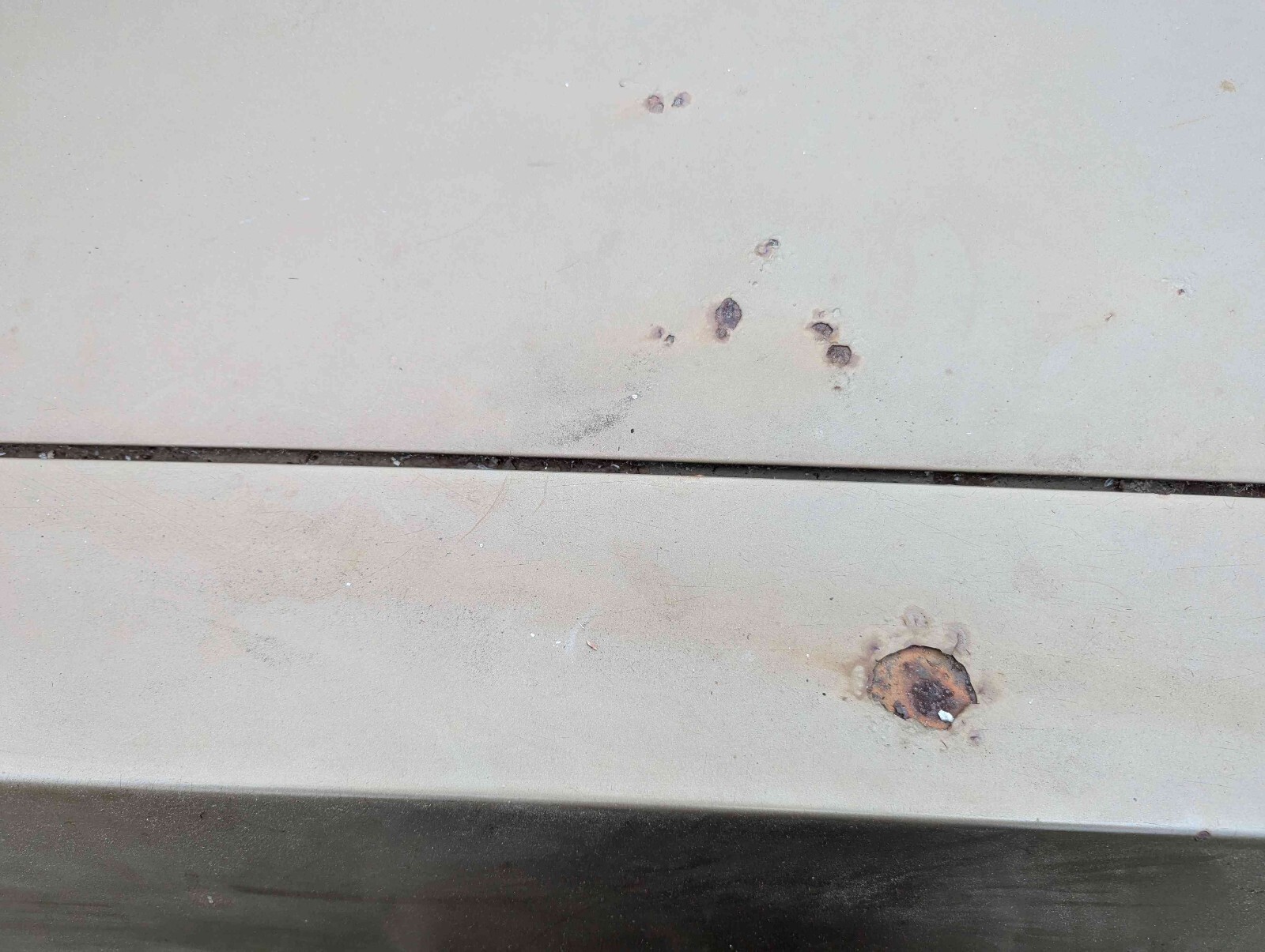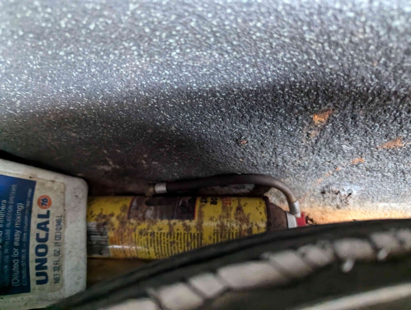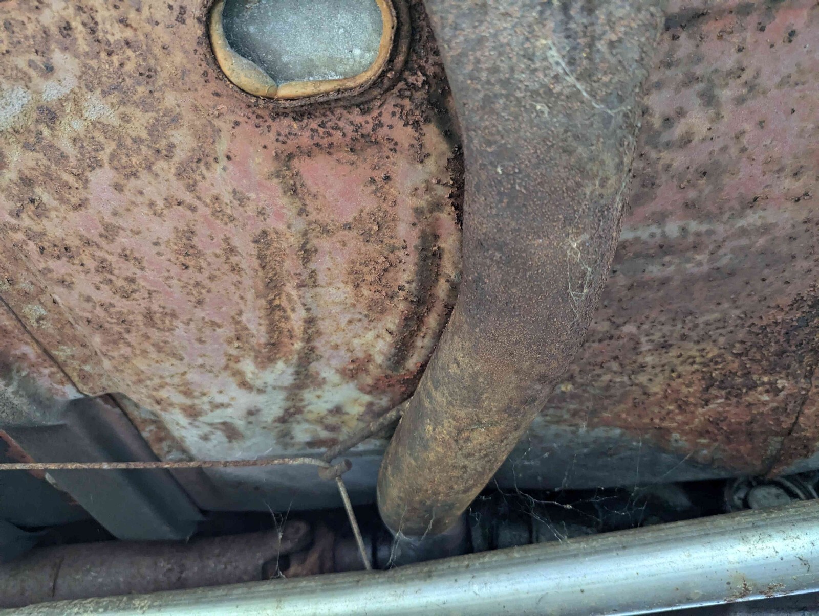 Rust caused by car cover trapping salt air. Frame and floors appear solid. Vehicle never driven in snow or salt.