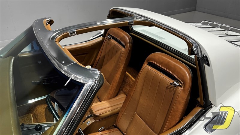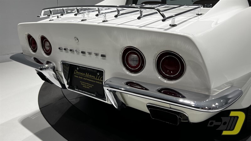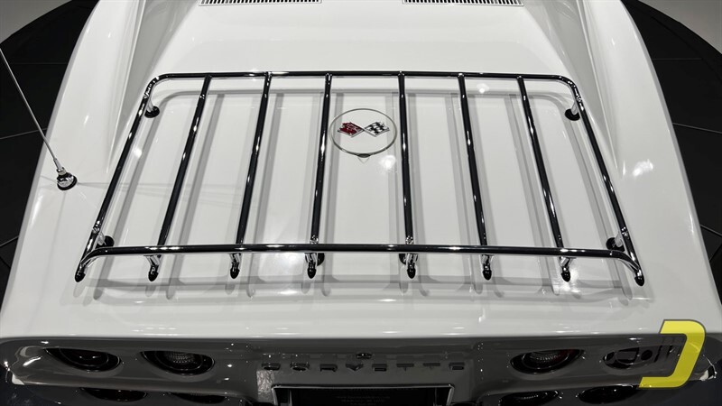 This car previously received a great deal of refurbishment work. This included new paint and a new interior along with a myriad of other work. It looks fantastic; the color combination has a classy look and seems to accentuate the sharp lines of the C3. The paint really shows well and does not exhibit any stress cracking. The chrome bumpers are in wonderful condition as are all the trim and emblems. A luggage rack has been fitted too. Of course, as a T-top coupe with a removable rear window, you can also have open-air driving.