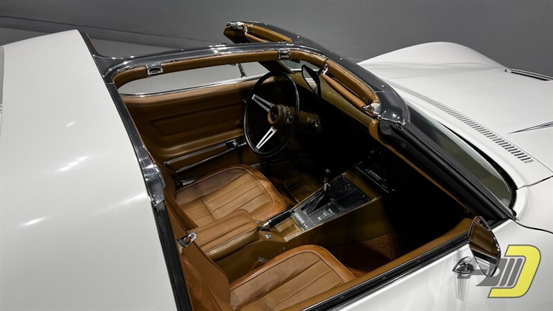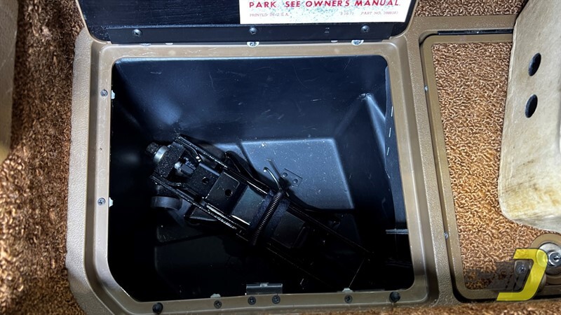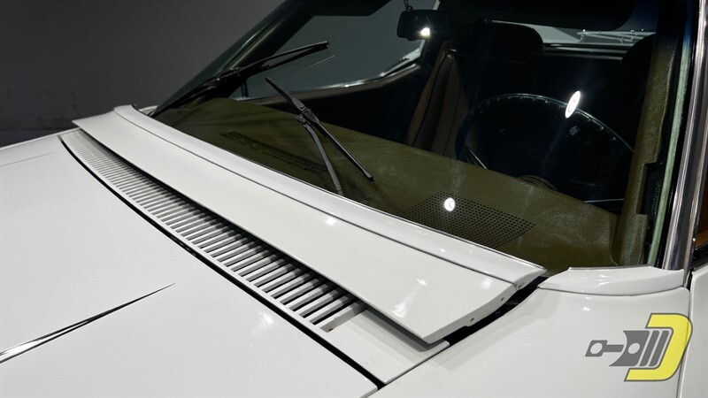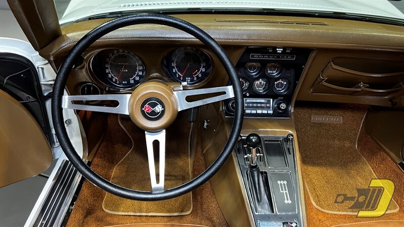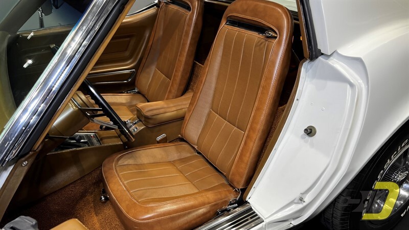 The Saddle interior is the perfect companion to the white exterior. The bucket seats have been redone along with the carpet and door panels. The dash and gauges have also been reconditioned. A great option on any C3 is the tilt / telescoping steering column which can really help with ingress / egress, while the power windows are nice to have as well. The headlights, wipers, and vacuum doors all function properly through both the regular switches and the vacuum breakers under the steering column. All gauges work as do the horn, heater, defroster, vents, turn signals, backup lights, dash lights, courtesy lights, and parking brake. However, the alarm and rear defroster are non-functional. Finally, this Corvette retains its original backdrive / reverse lockout mechanism whereby the car must be in reverse to remove the key.