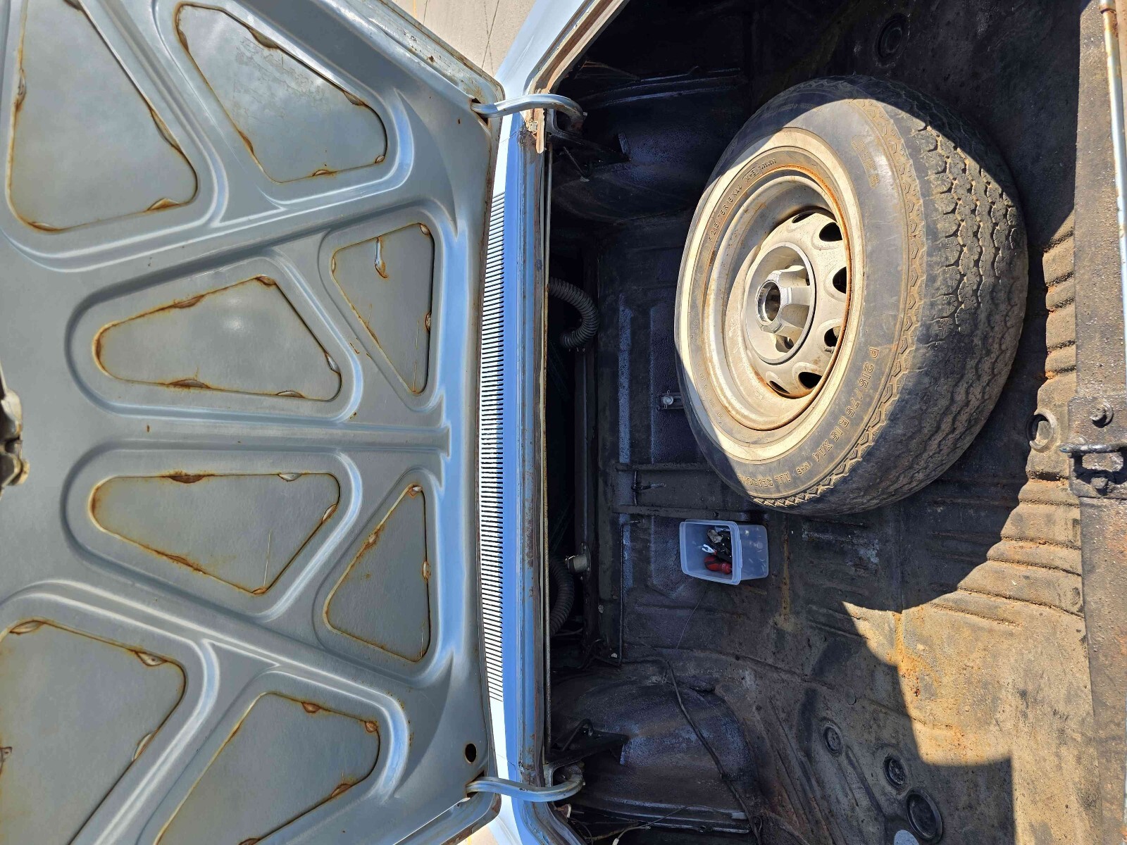 At some point in the past someone had it repainted a baby blue. Original blue was a different shade...still visible in the trunk and engine bay.