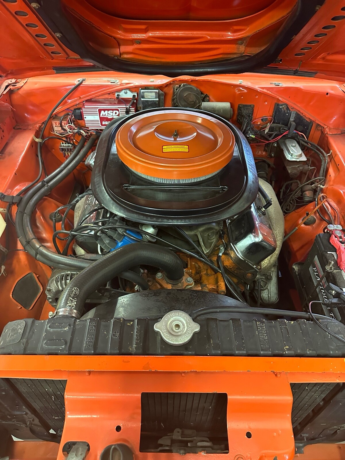 The car has a period correct 383 motor. I do have the original 383 engine block. The car has new tires and beauty rings on the wheels. Within the past few years, the headliner and two front seats were redone. I have the original build sheet and the car has the fender tag. The speedometer has been replaced, It does not reflect the actual mileage.Vehicle Details