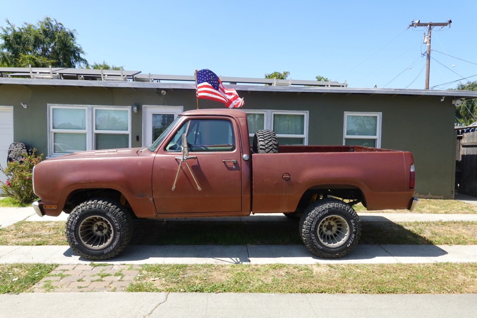 Southern California truck. 440 Engine, New Tires (Mickey Thomson's all the way around). I am the second owner. When I got this truck the engine was removed and apart in bed of truck--pieces were everywhere. I have the original engine block if you want it with matching serial number to VIN number and the heads. The 440 that is in it now is not the original one. This truck just passed smog on first try and I have current California registration. I have the pink slip in hand; clean title. This truck sat for over 30 years. I put in an after market Air conditioning system. Upholstered the seat, painted the dash up nice, installed many manual gauges and put carpet in. The tail gate was damaged and I had it repaired and painted to match. The rest of the paint is original and the body is very straight. Two custom places to mount spare tire--in bed or under rear bed. I've taken this truck on many trips around Death Valley and it loves being on dirt.
