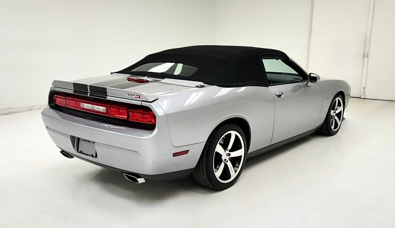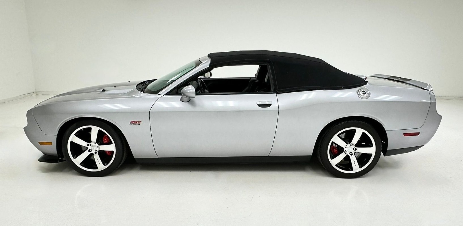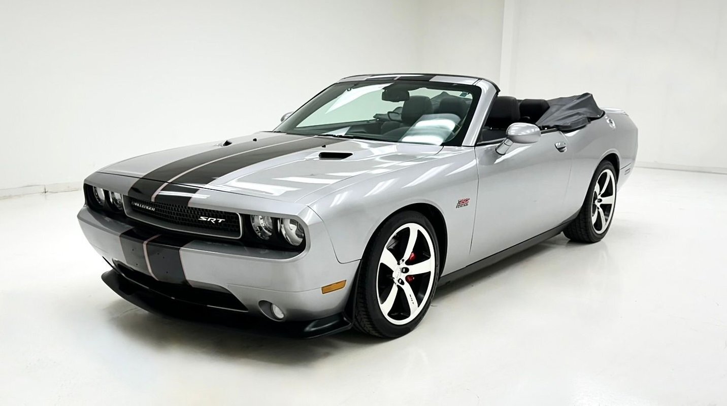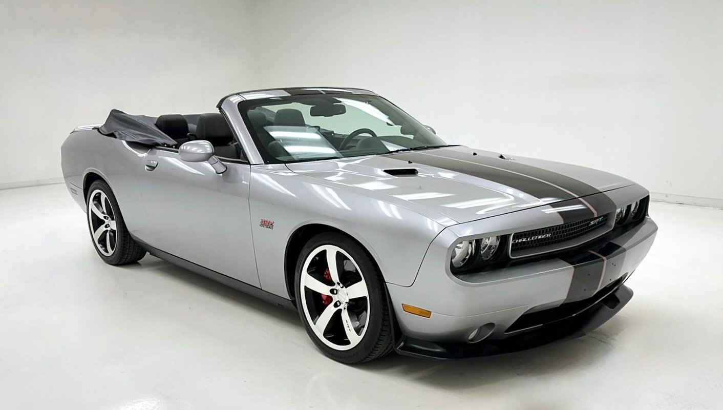 For consignment a 36,229 low original title verified mile example of the 2011 Challenger SRT8 392 convertible. This example has a potent 392 Hemi V8 that balances brawn with brains, features an active intake manifold, variable cam timing and a Procharger P1SC1 supercharger. This example is in excellent condition and sports plenty of options and power making it a high performer producing more horses than the 1966 street Hemi. Oh, and did I mention it's a menacing looker as well, with plenty of interior creature comforts.