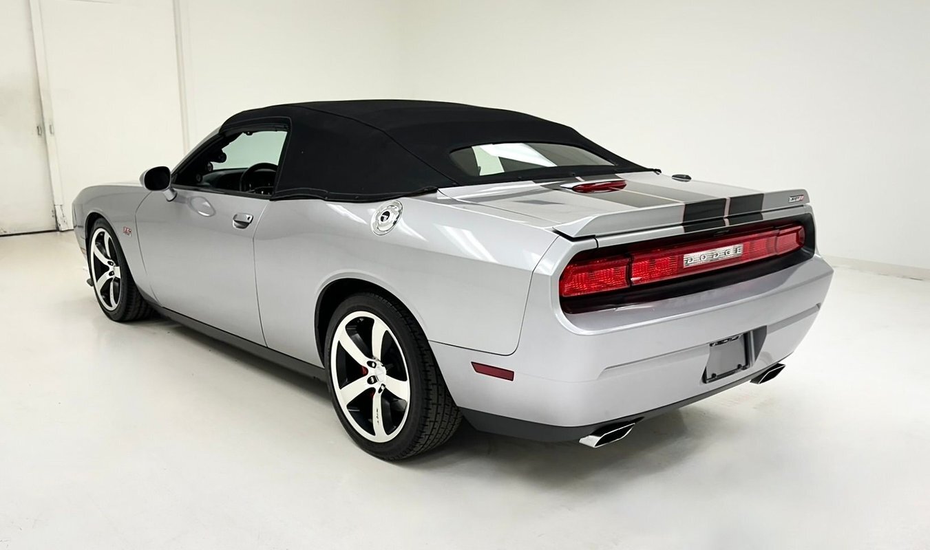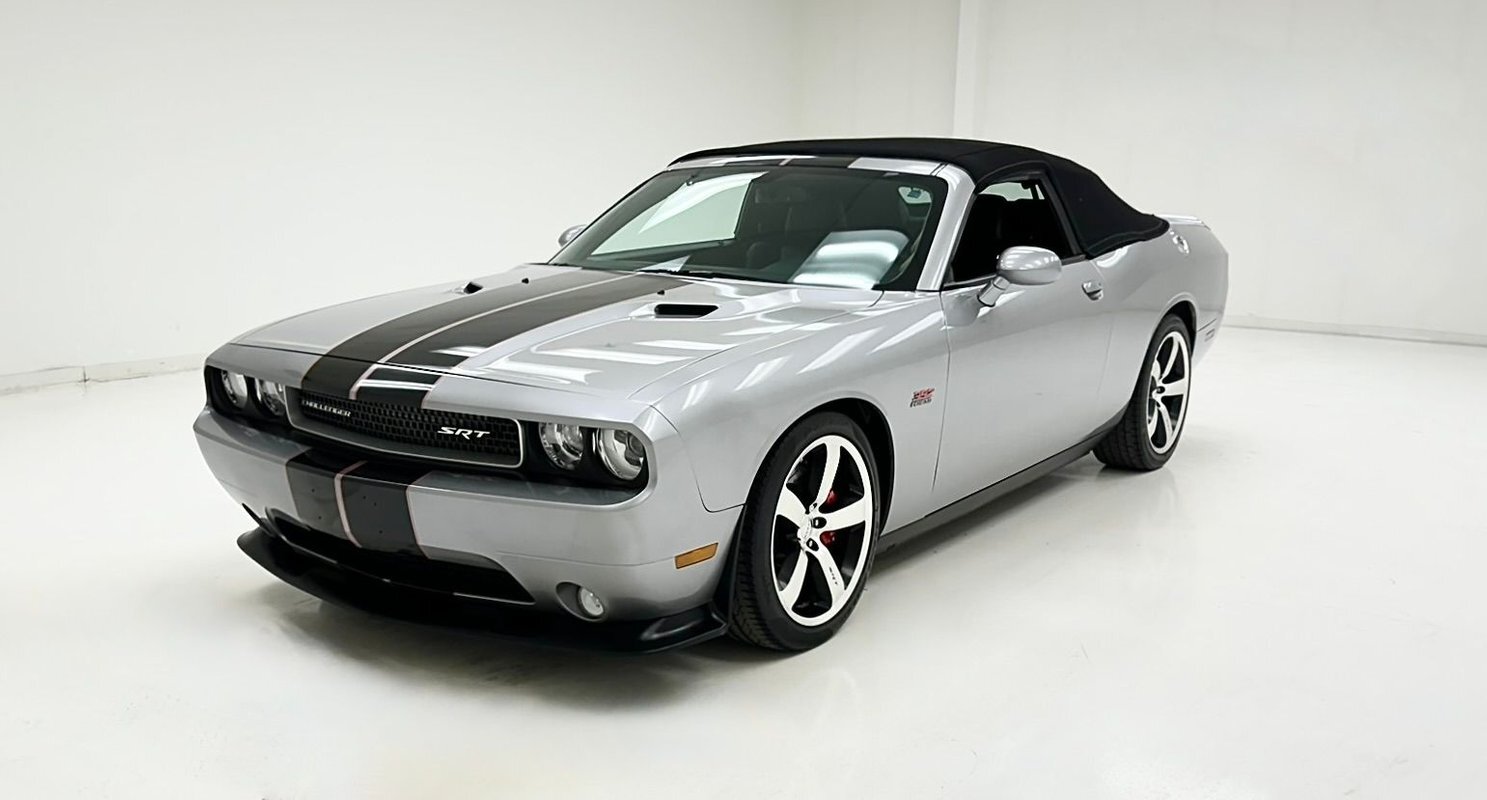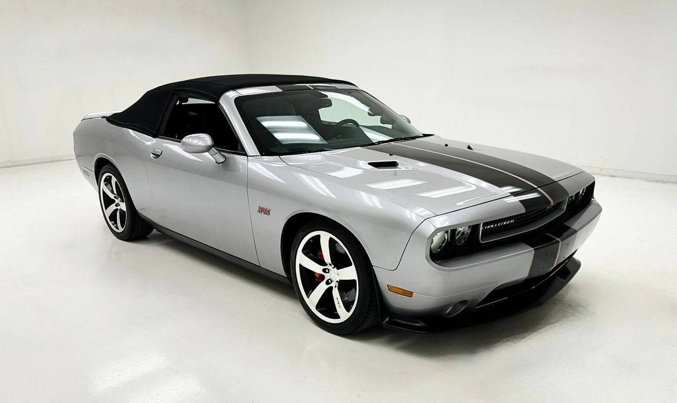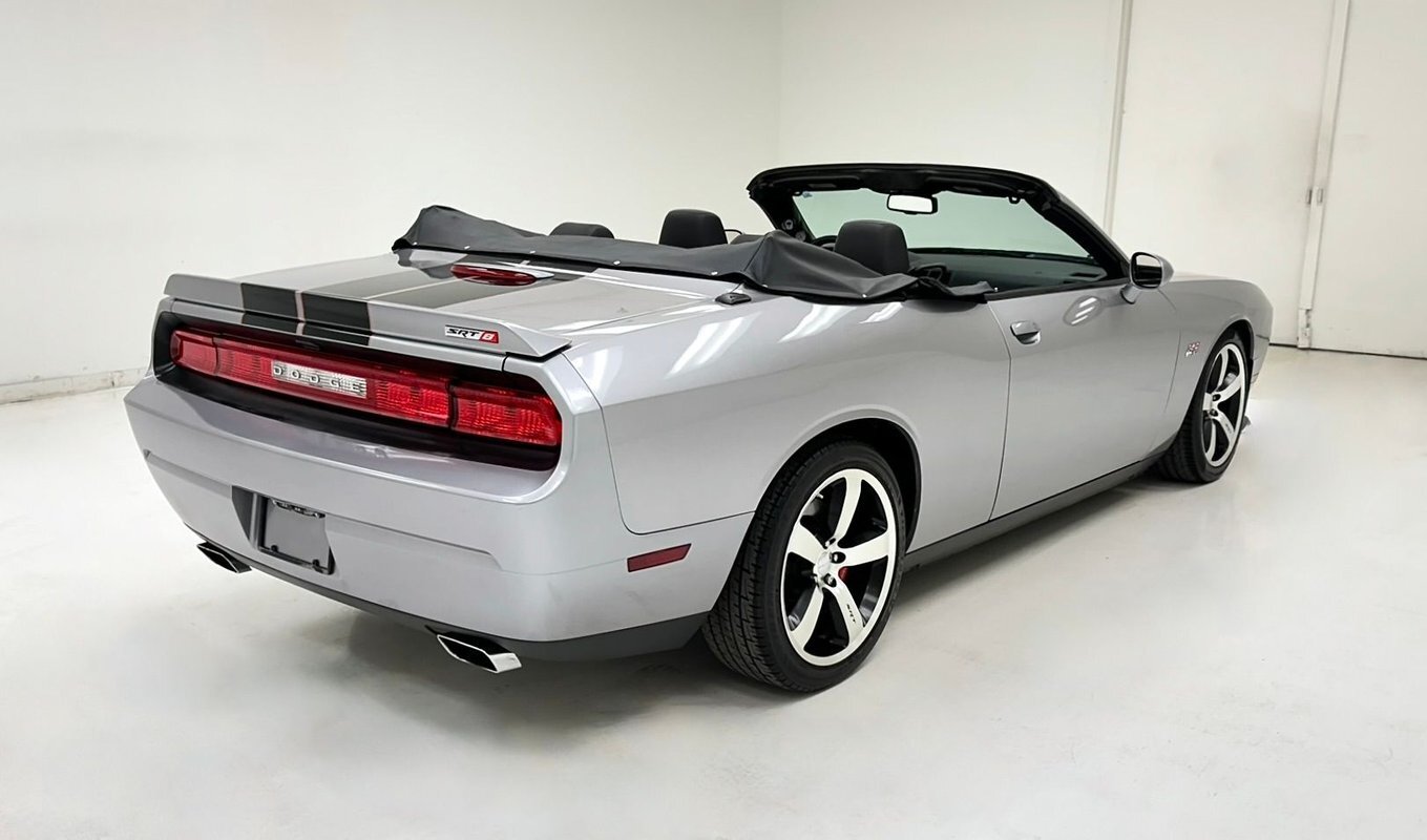 For consignment a 36,229 low original title verified mile example of the 2011 Challenger SRT8 392 convertible. This example has a potent 392 Hemi V8 that balances brawn with brains, features an active intake manifold, variable cam timing and a Procharger P1SC1 supercharger. This example is in excellent condition and sports plenty of options and power making it a high performer producing more horses than the 1966 street Hemi. Oh, and did I mention it's a menacing looker as well, with plenty of interior creature comforts.