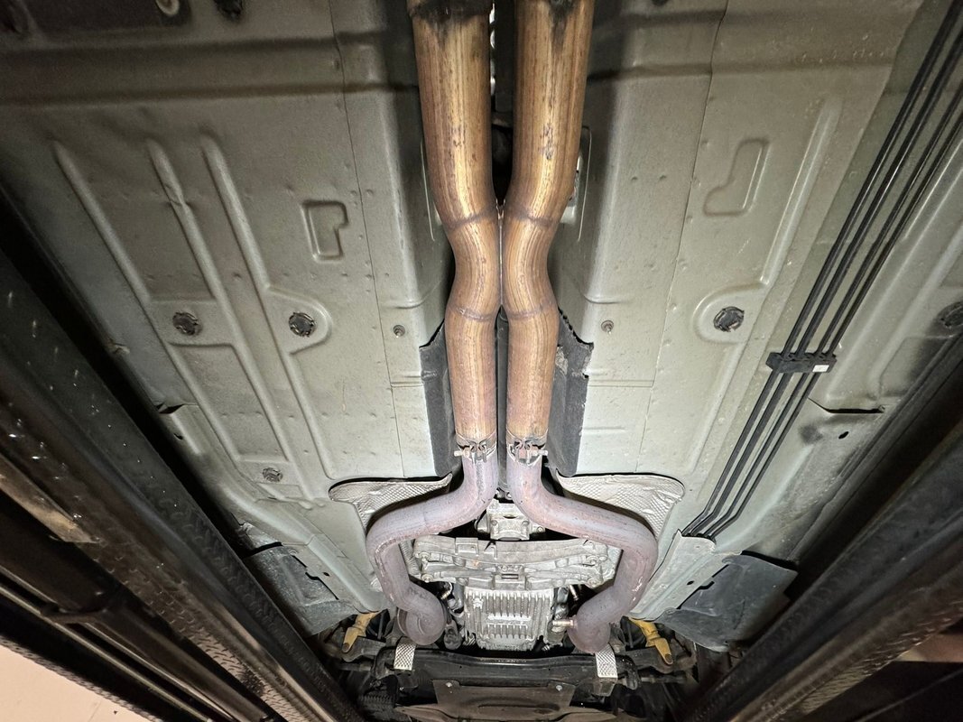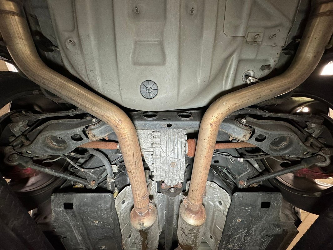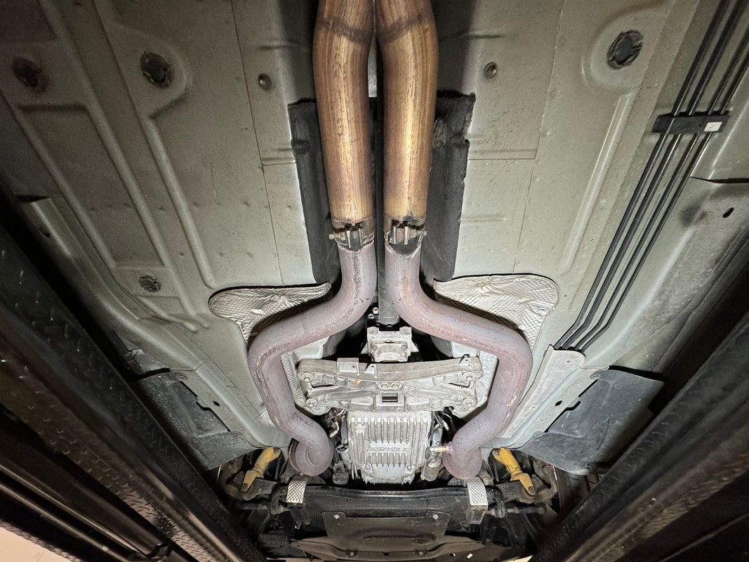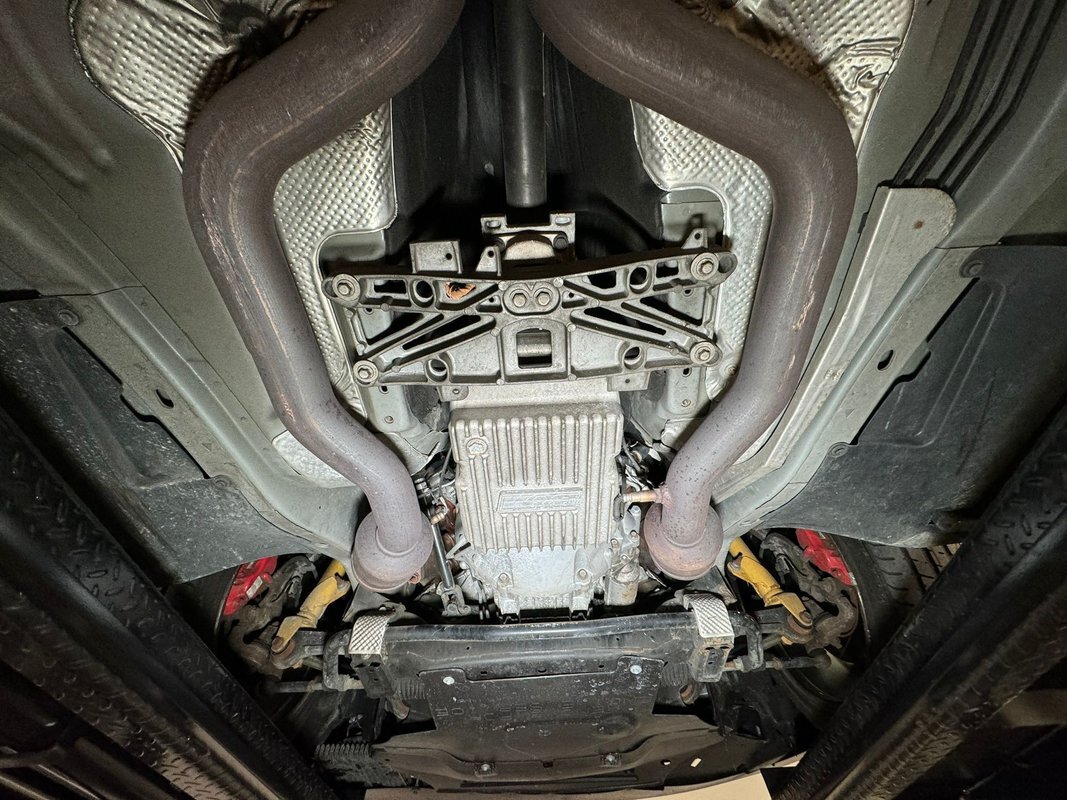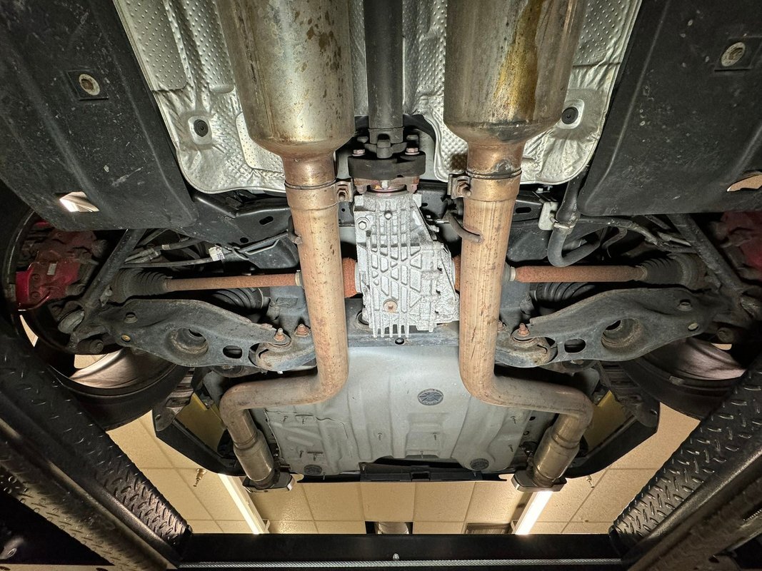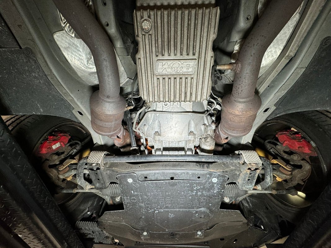 Appearing as like new with rust free gray steel making up the unibody and flooring, there is no rust and little road dirt on this underbelly. No rust, no drips, no errors for the bottom end of the engine or transmission. Power Brembo disc brakes on slotted rotors are all around, and independent suspension with Bilstein shocks and struts which is SRT tuned keep you hugging the corners nicely. A like new exhaust with glass pack style mufflers is seen in dual form.