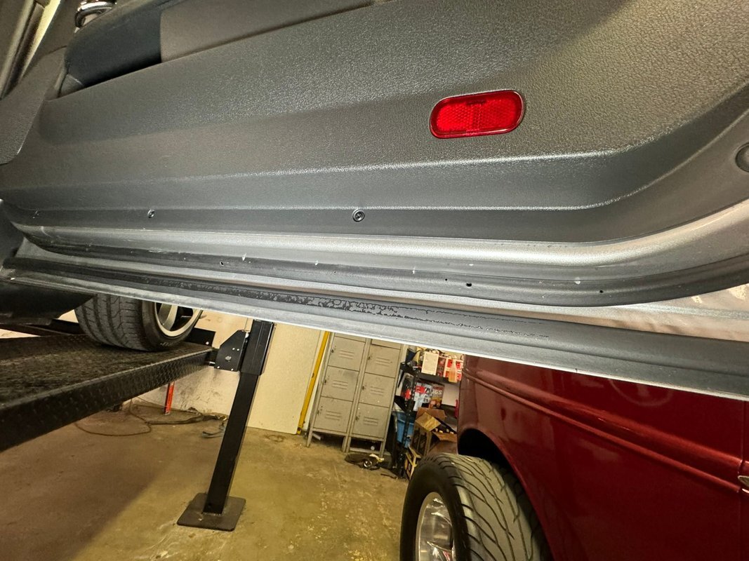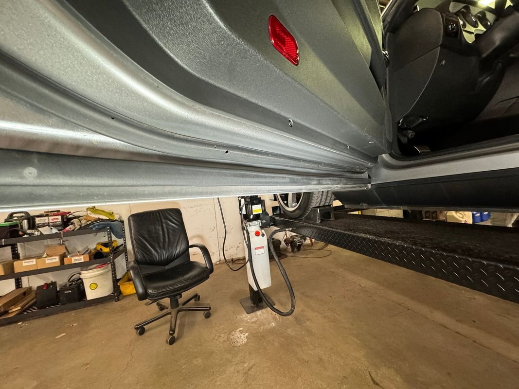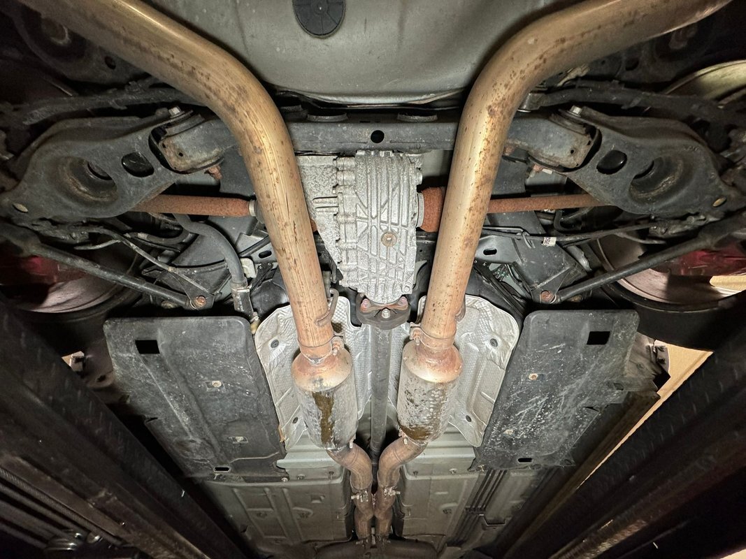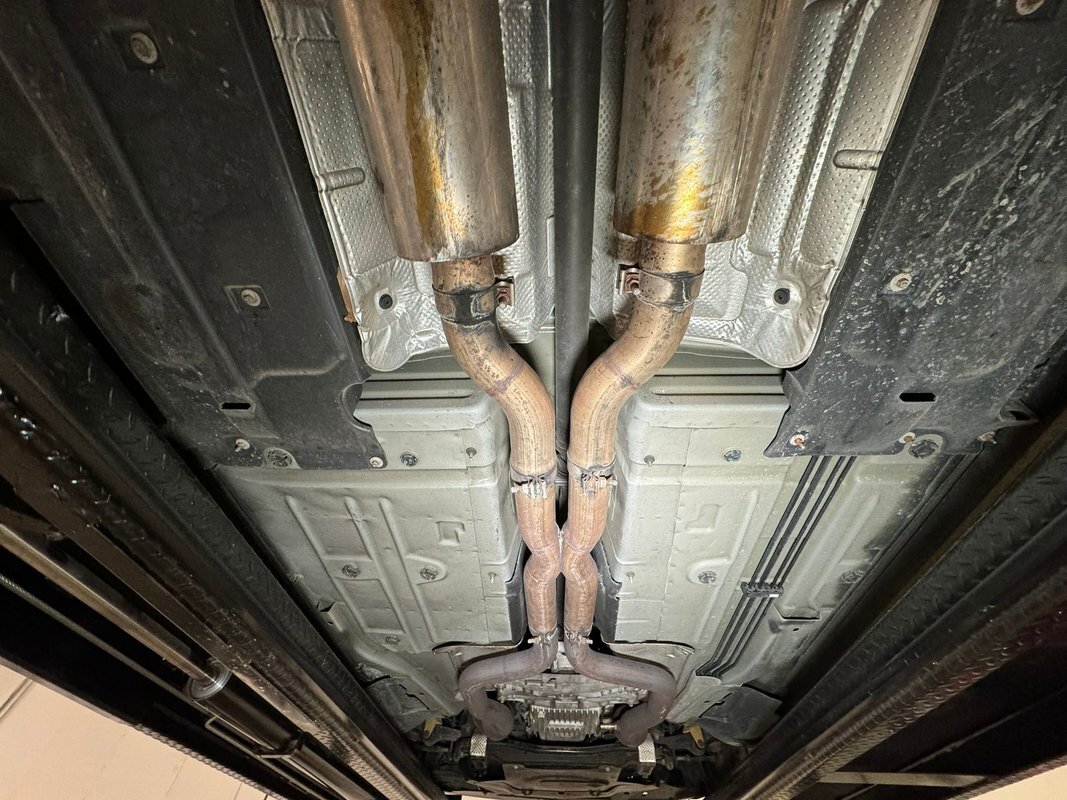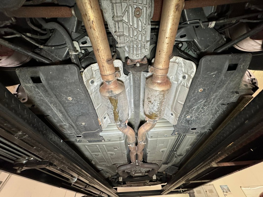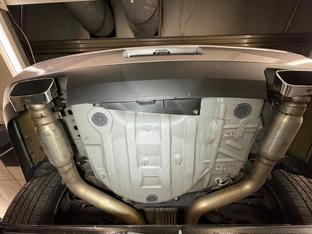 Appearing as like new with rust free gray steel making up the unibody and flooring, there is no rust and little road dirt on this underbelly. No rust, no drips, no errors for the bottom end of the engine or transmission. Power Brembo disc brakes on slotted rotors are all around, and independent suspension with Bilstein shocks and struts which is SRT tuned keep you hugging the corners nicely. A like new exhaust with glass pack style mufflers is seen in dual form.