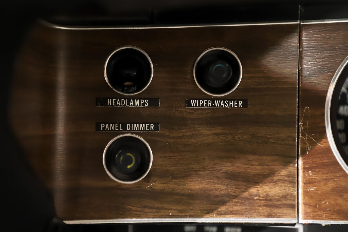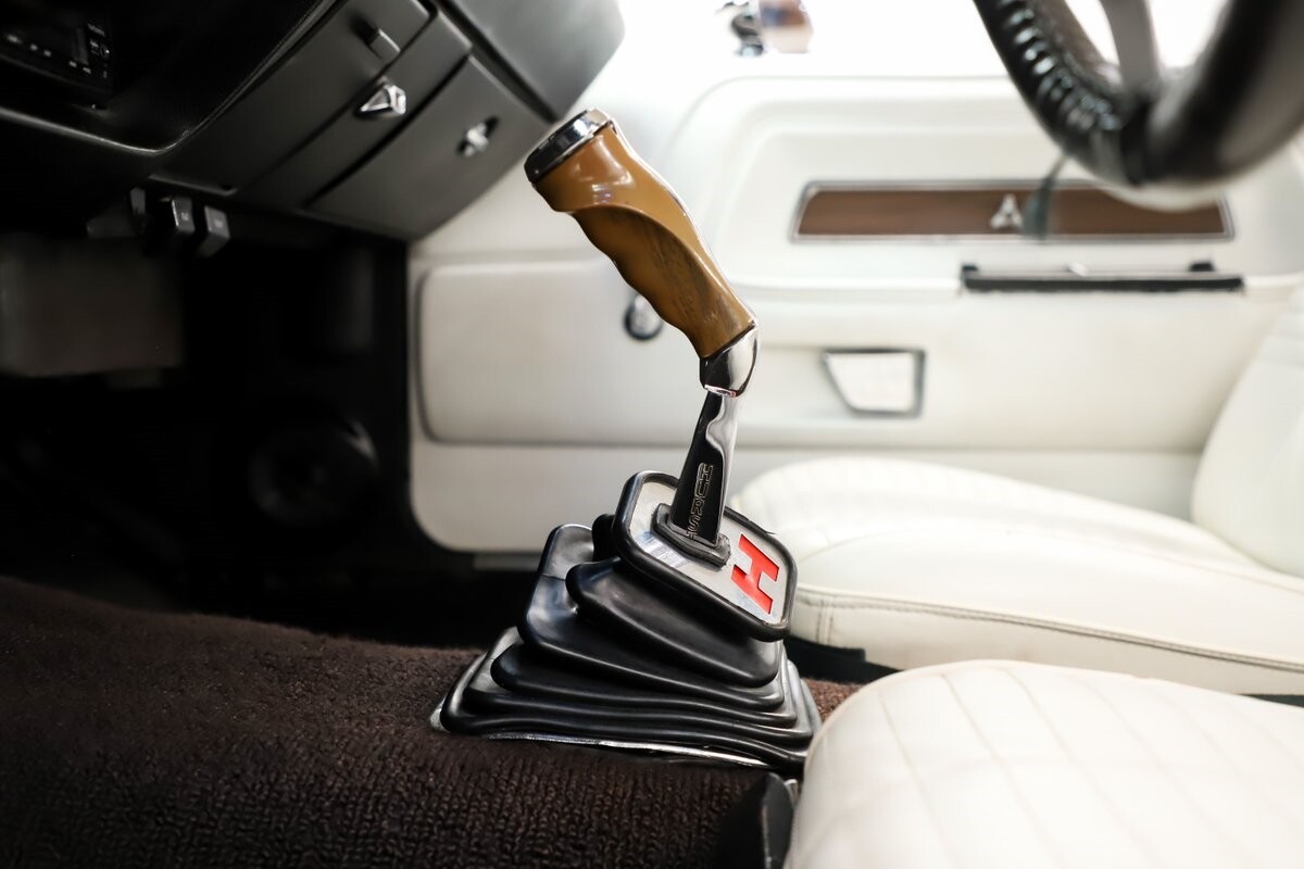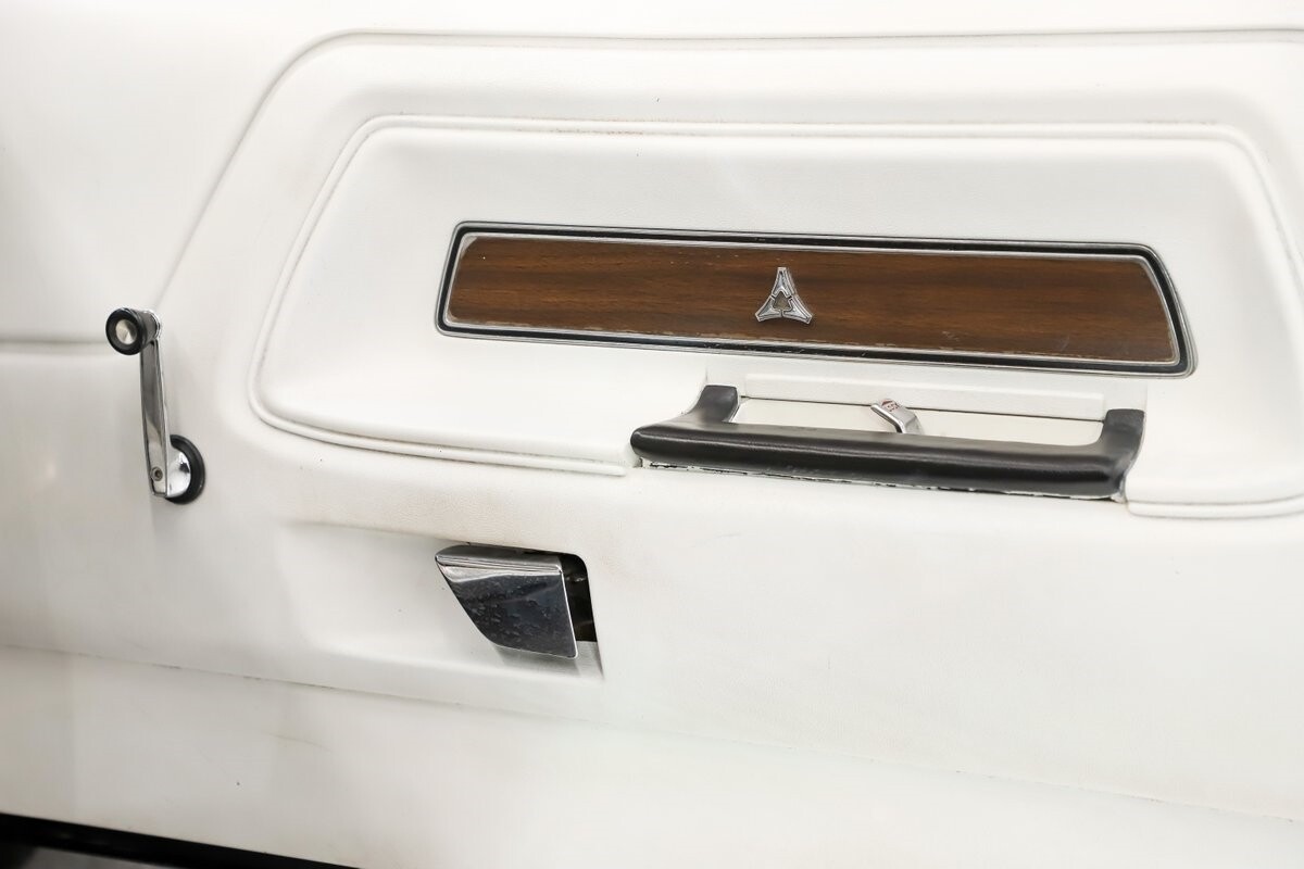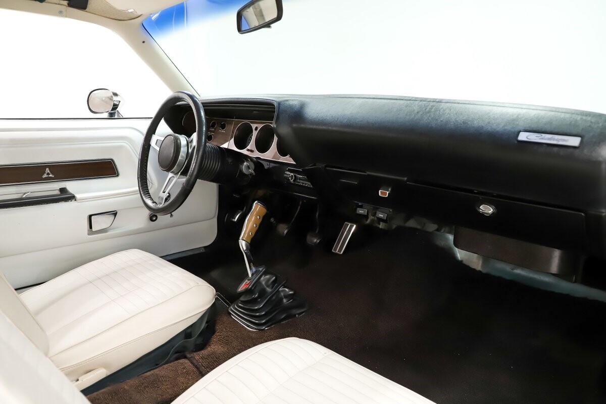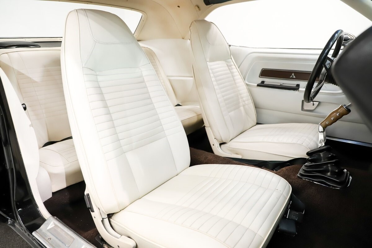 INTERIOR: The interior is good! It's not a brand new restoration but it's nice enough to show off and not be afraid to drive around. Again, the white interior pops so well from the black and really sets this R/T apart from others. The door panels have been dyed white and are in good condition, The white bucket seats are in really good shape with a Hurst 4 speed pistol grip shifter in between them. The carpet fits well, and the headliner is original but still in good shape with minor wear. The woodgrain Rallye dash face is a perfect contrast to the black and white. It appears to be original and still in good shape. It holds working gauges including the tachometer. Last but not least, it's been upgraded with a Sony stereo and custom sound system.